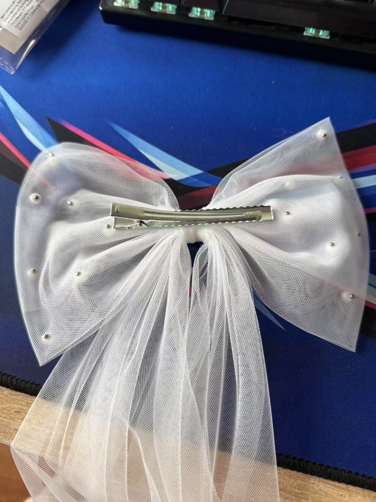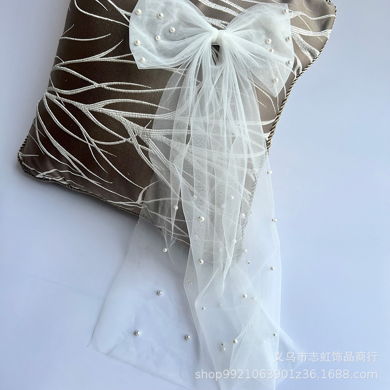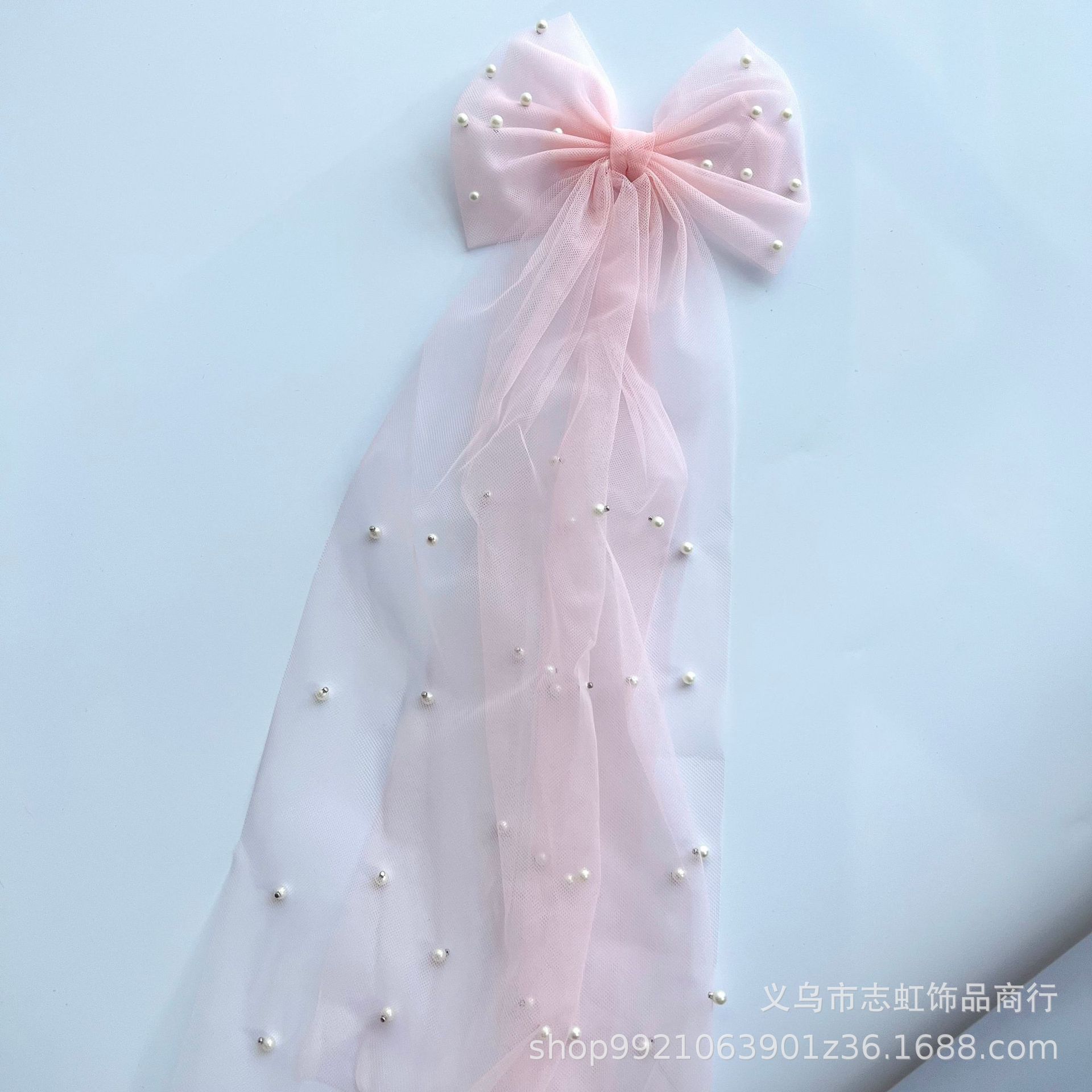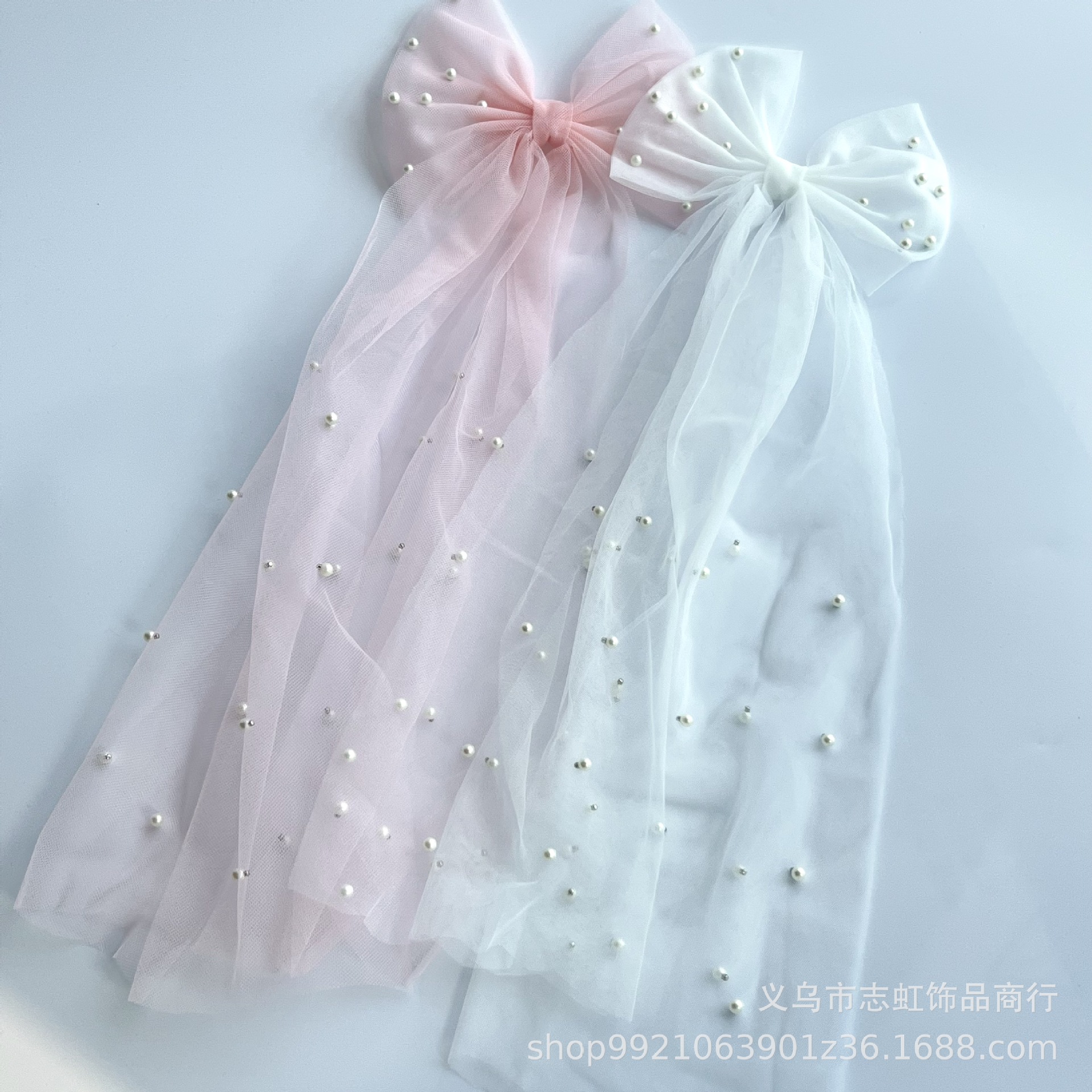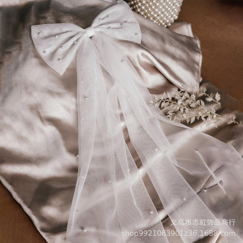 국경 폭발 손톱 진주 활 머리핀 메쉬 리본 헤어 액세서리 웨딩 나비 베일 머리 장식