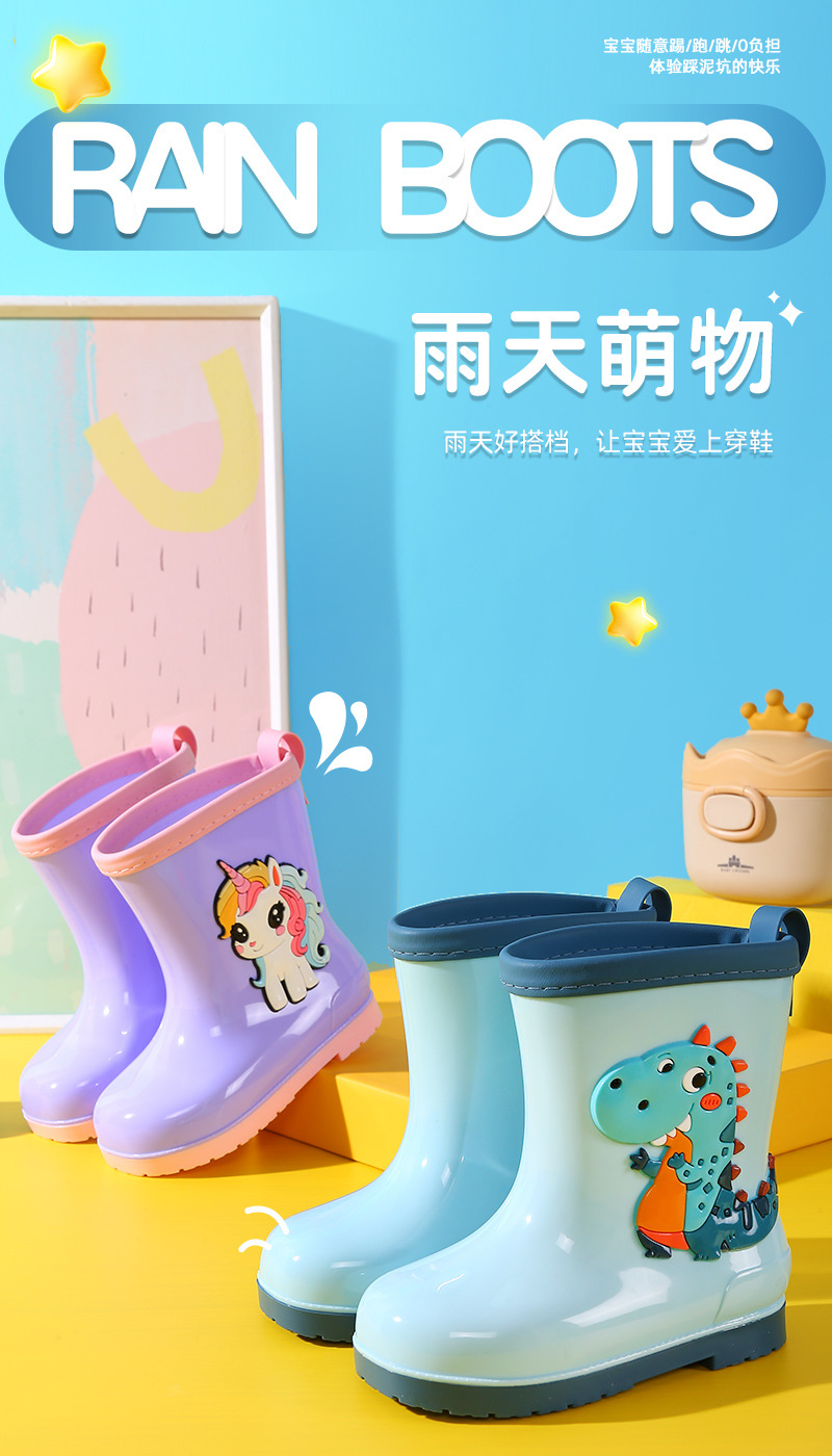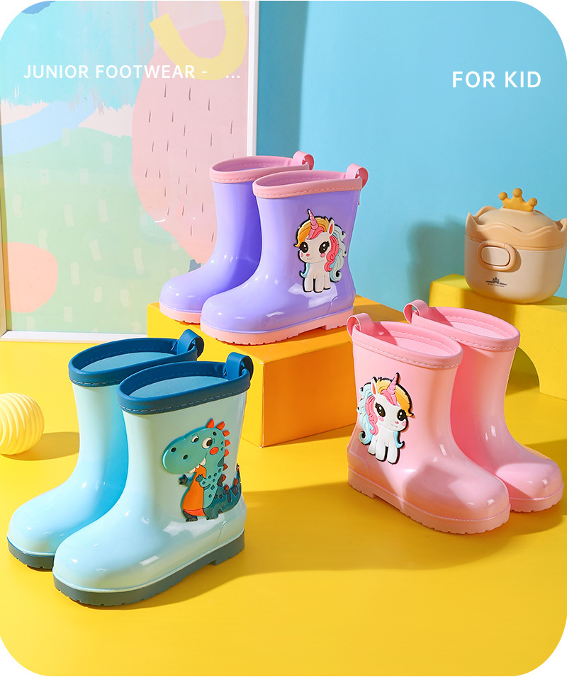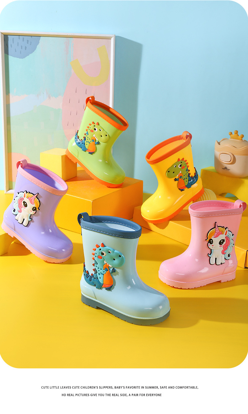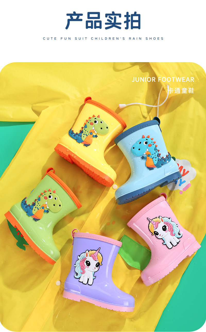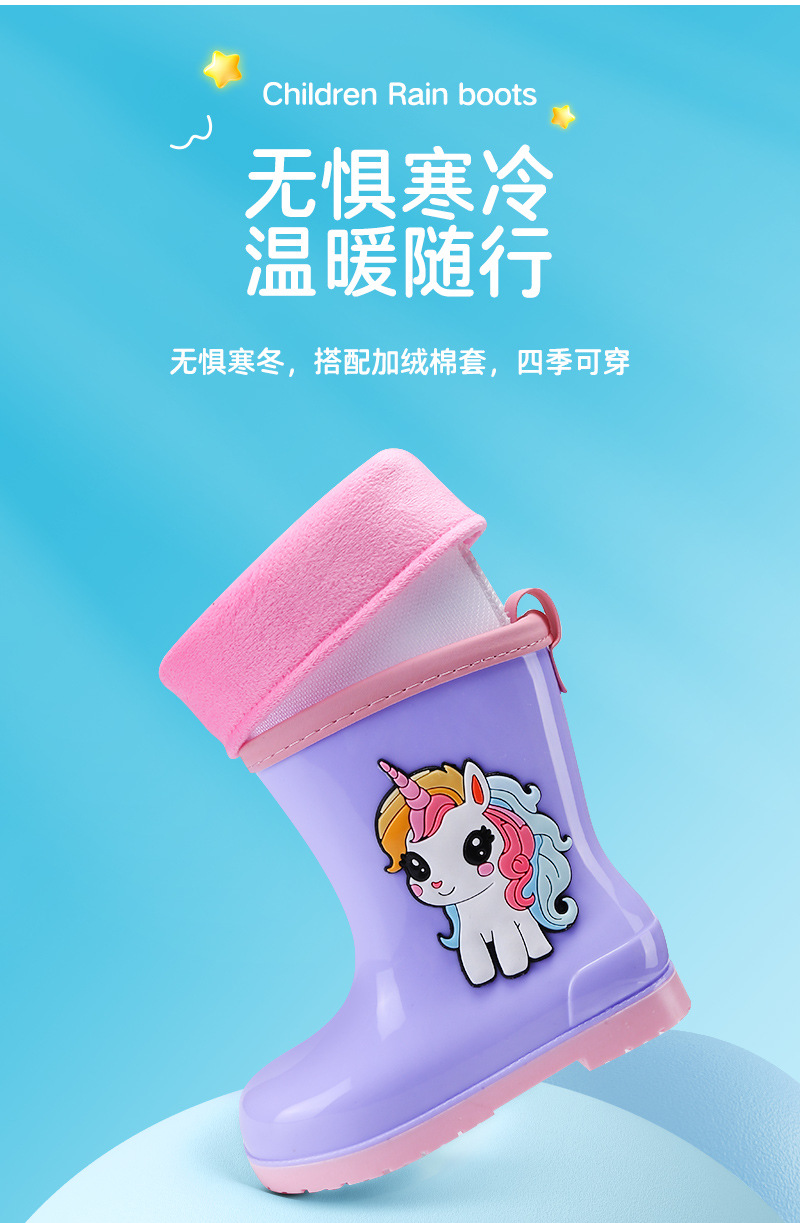 2024 새로운 어린이 장화 패딩 내마모성 장화 만화 방수 미끄럼 방지 소년 소녀 따뜻한 장화 도매