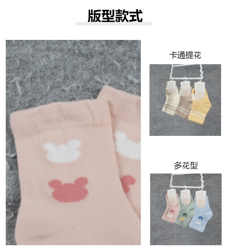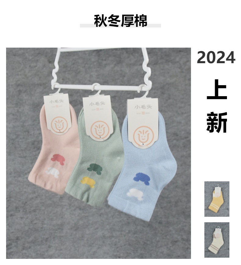 가을 어린이 두꺼운 면 양말 만화 자수 무봉제 배색 박스 포장 두꺼운 아기 양말 도매 0~5세스토어 가기