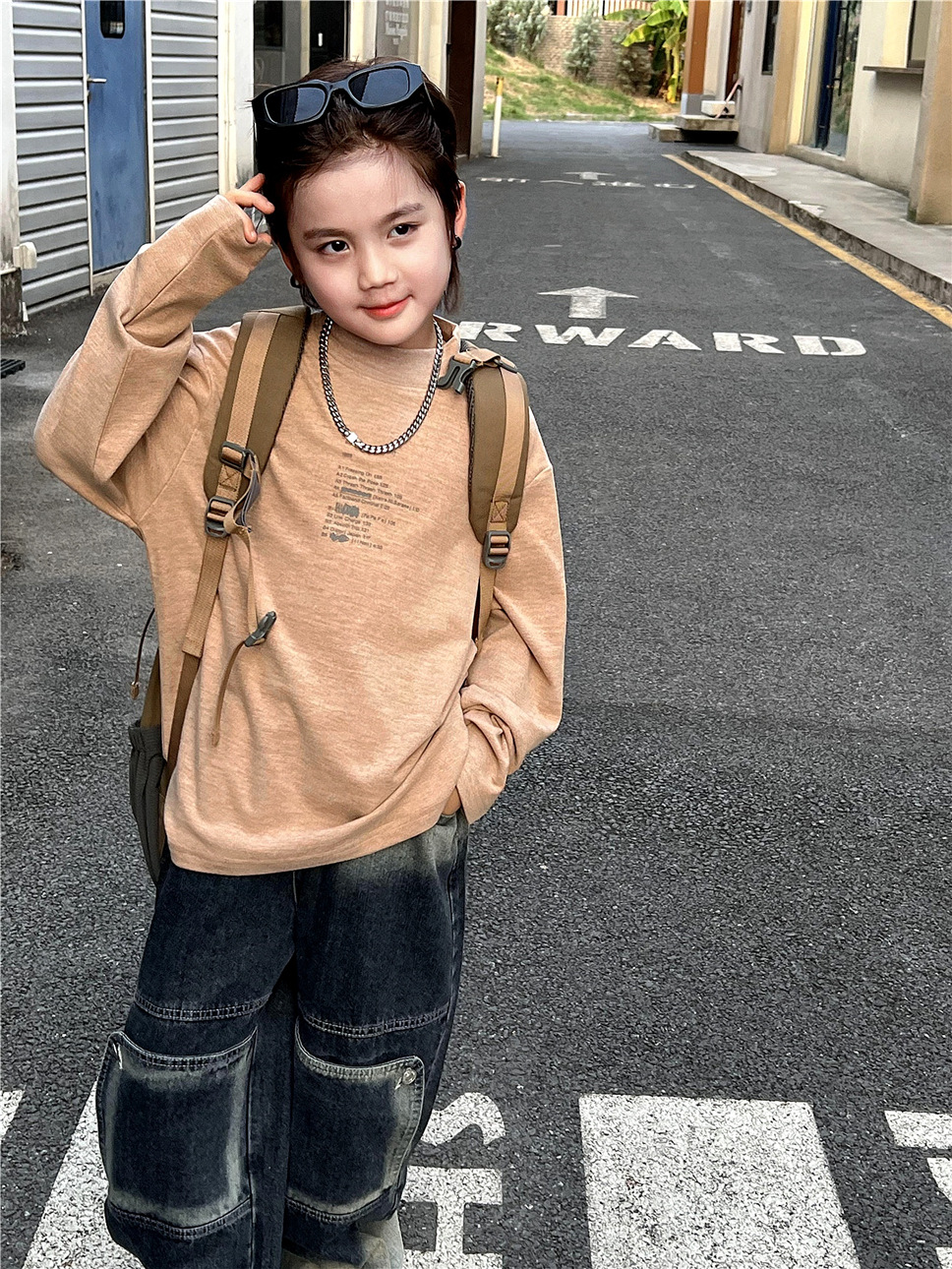 가을 인기 아동용 이너웨어, 트렌디한 디자인의 레터링과 독일산 기모 소재로 제작된 남아 여아용 세련되고 따뜻한 중간 길이의 긴팔 상의