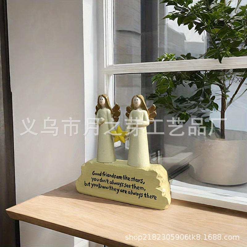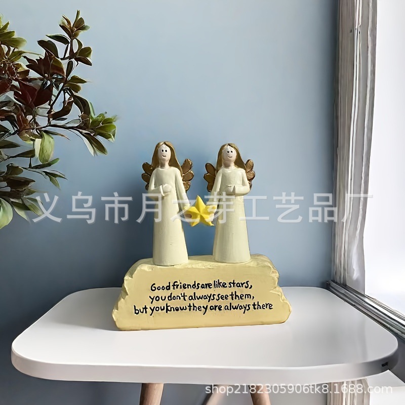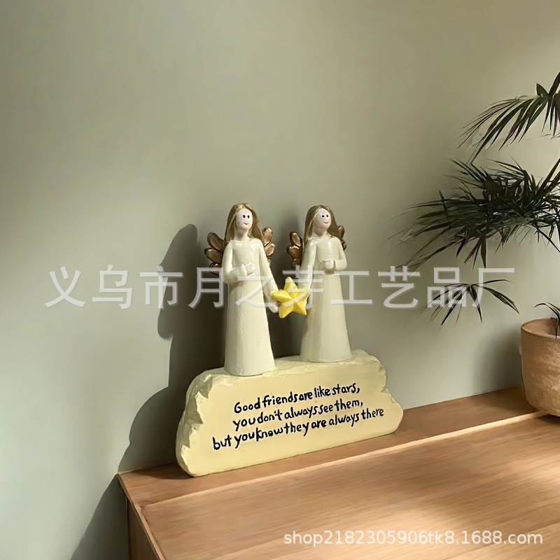 국경 간 우정 천사 그림 동상, 가장 친한 친구 상징 별 같은 친구를 기념하여 홈 바탕 화면 장식에 적합스토어 가기