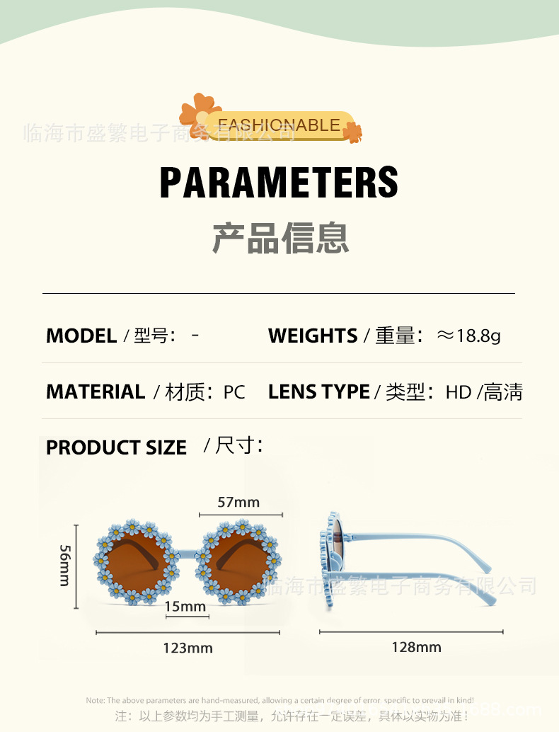 인터넷 연예인 리틀 데이지 어린이 선글라스 부모-어린이 피크닉 성격 거리 사진 선글라스 귀여운 꽃 장식 안경