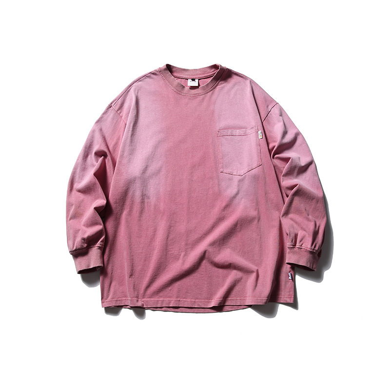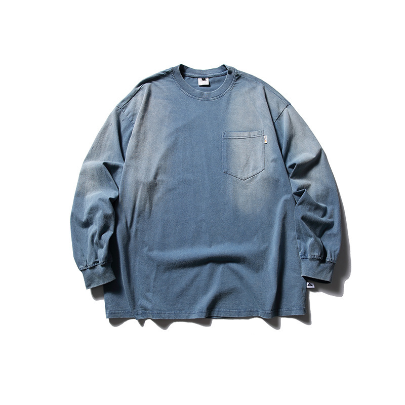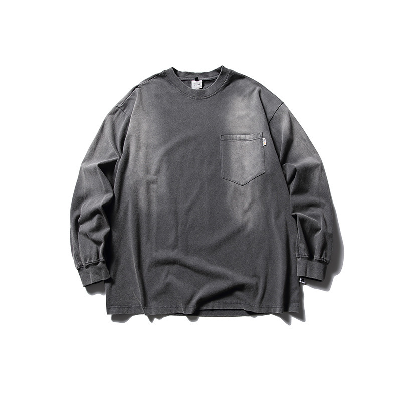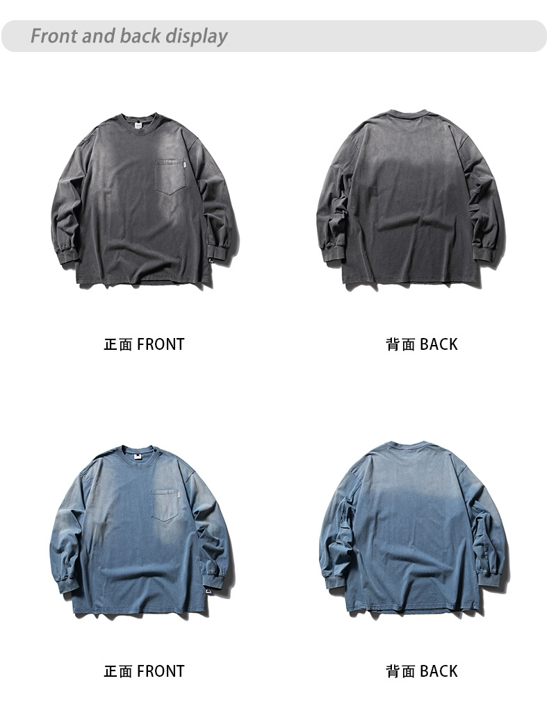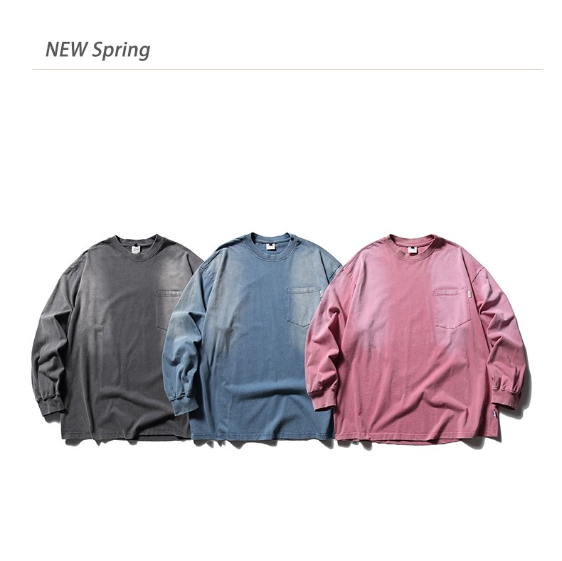 일본 패션 브랜드 2024 가을 새 세척 긴팔 티셔츠 남성 레트로 패치 포켓 캐주얼 베이스 셔츠스토어 가기