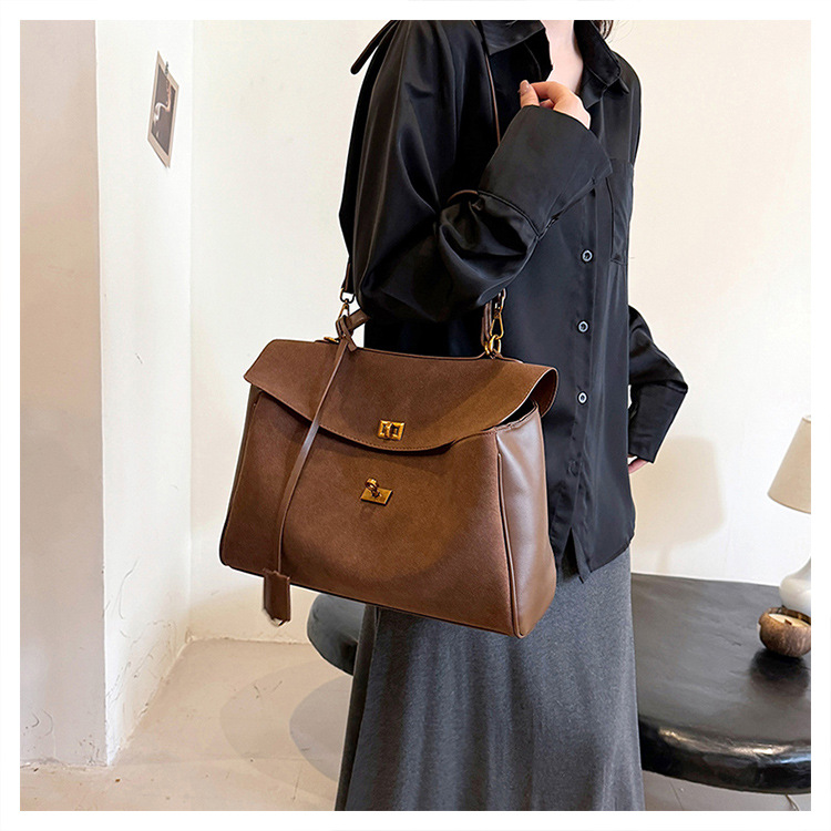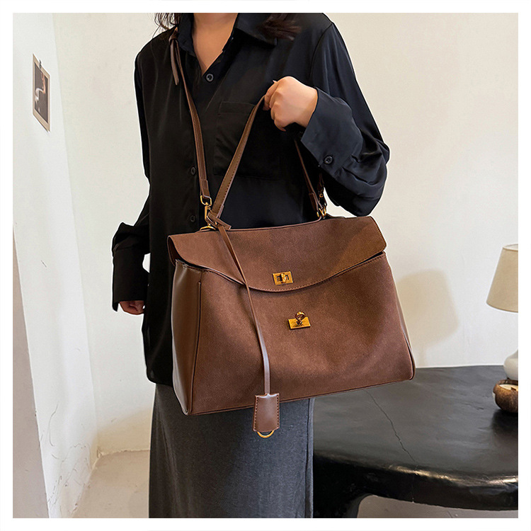 휴대용 토트 백 틈새 게으른 스타일 2025 새로운 스웨이드 가방 여성 대용량 잠금 대외 무역 어깨 가방
