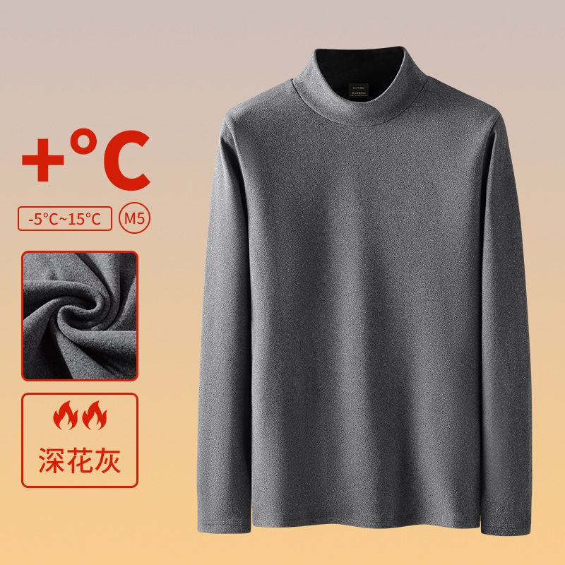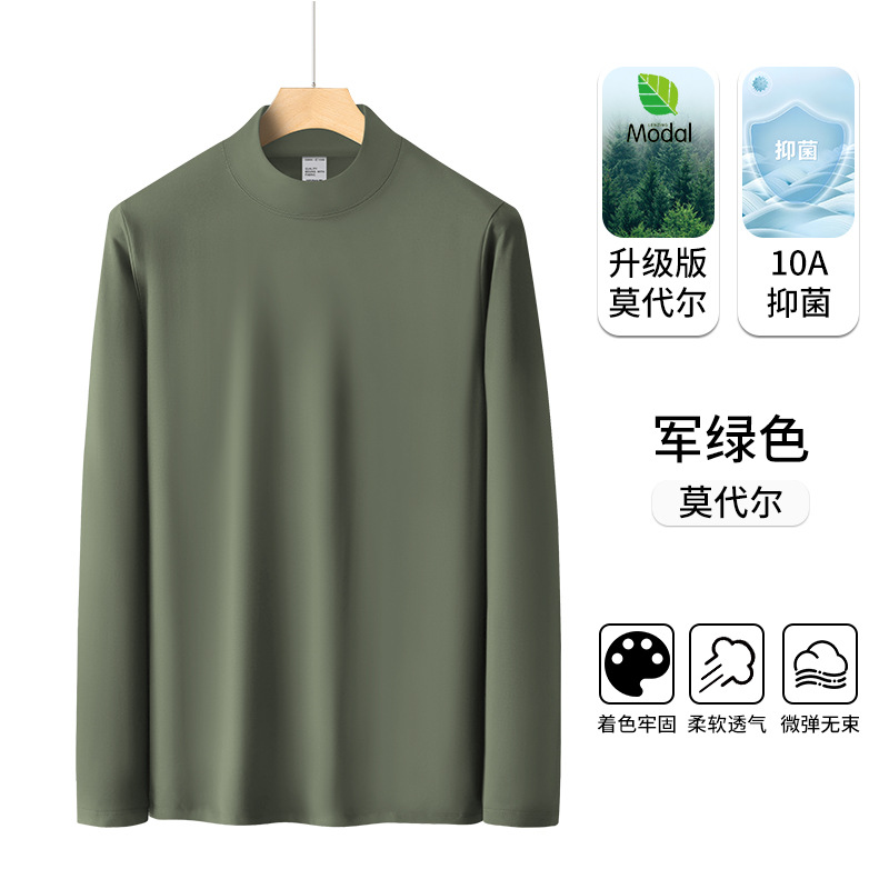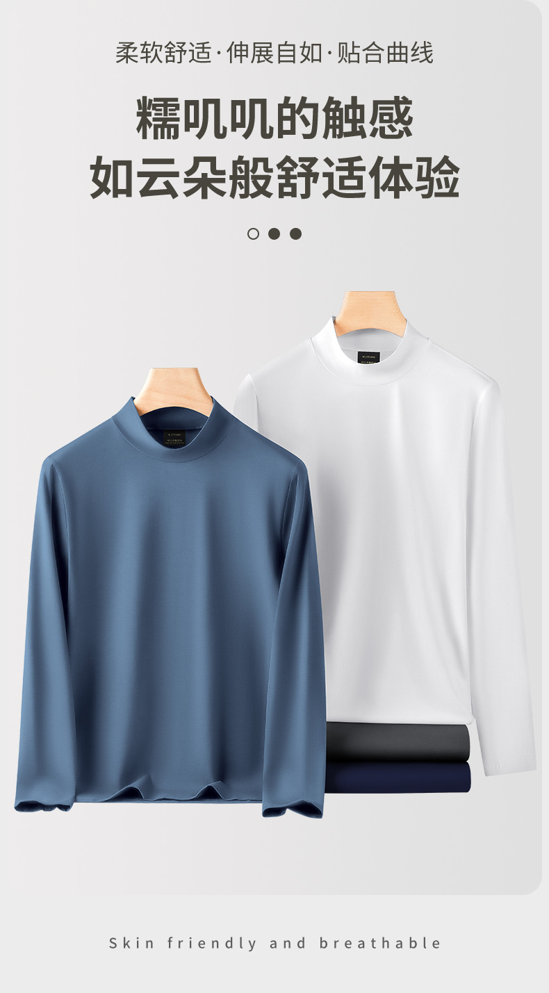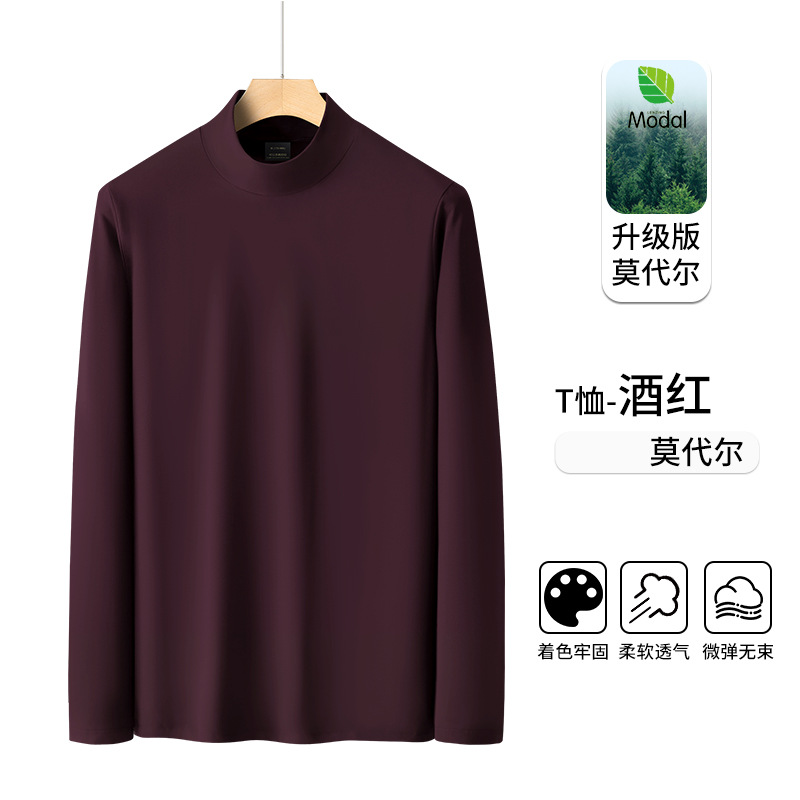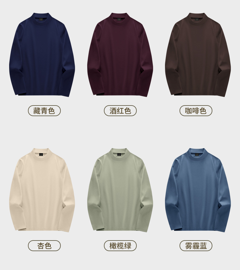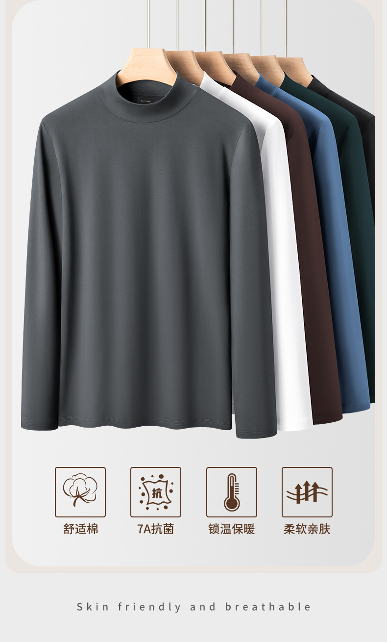 50 년대 모달 긴팔 티셔츠 남성용 양털 탑 봄과 가을 내포 중간 칼라 반 높이 목 두꺼운 베이스 셔츠