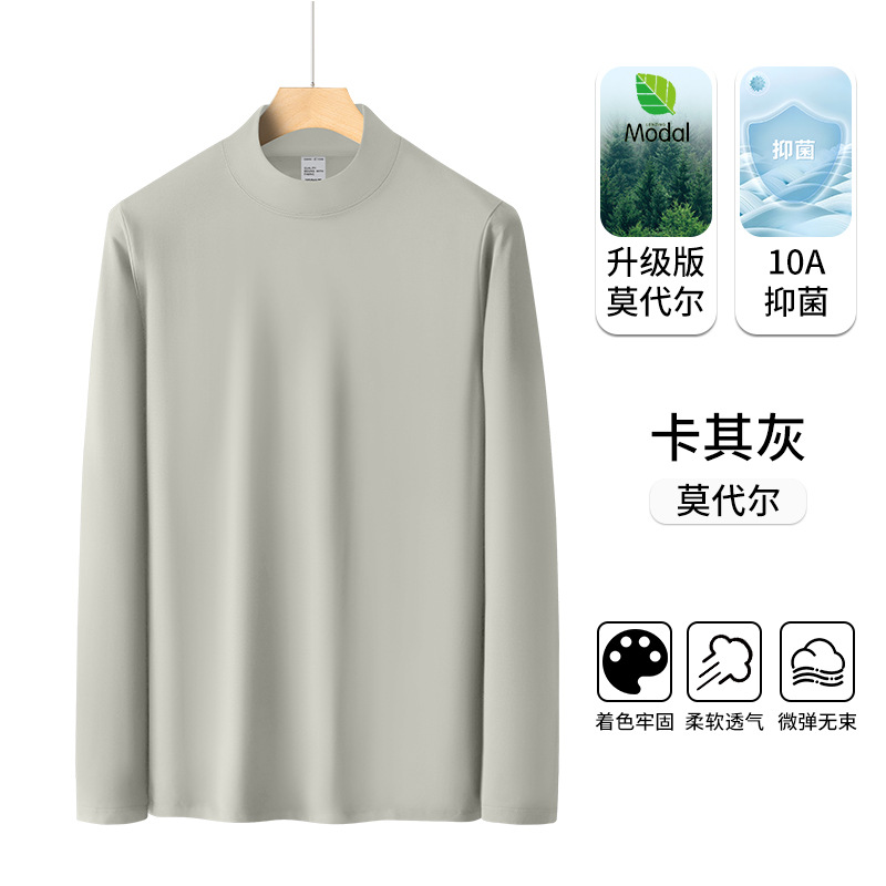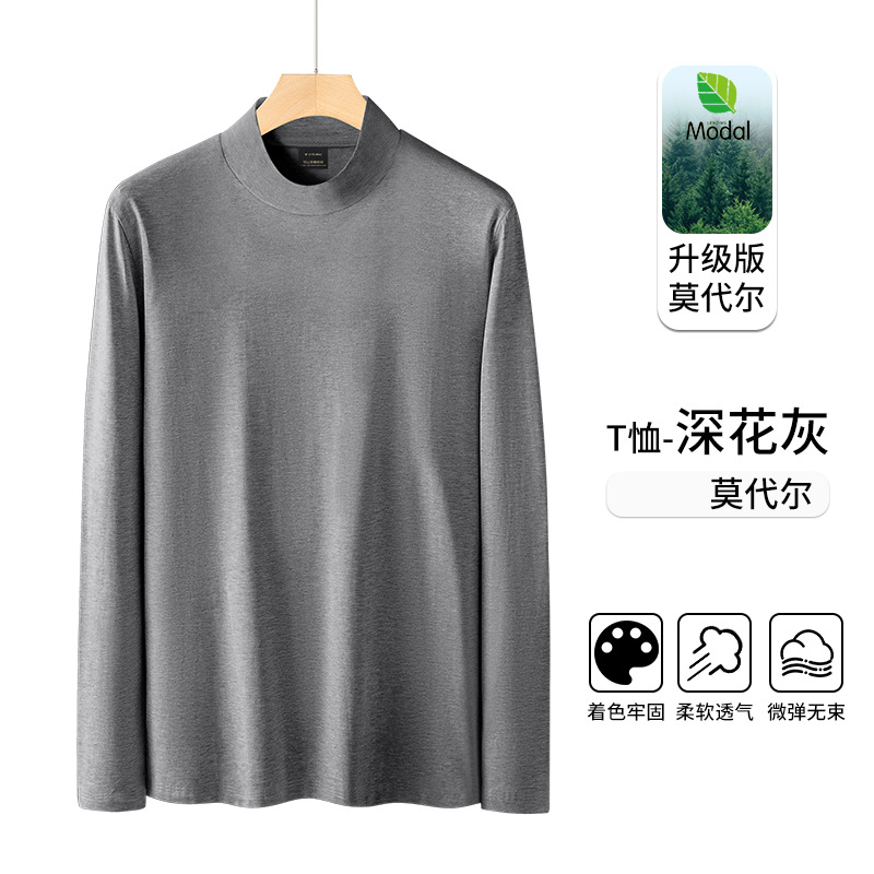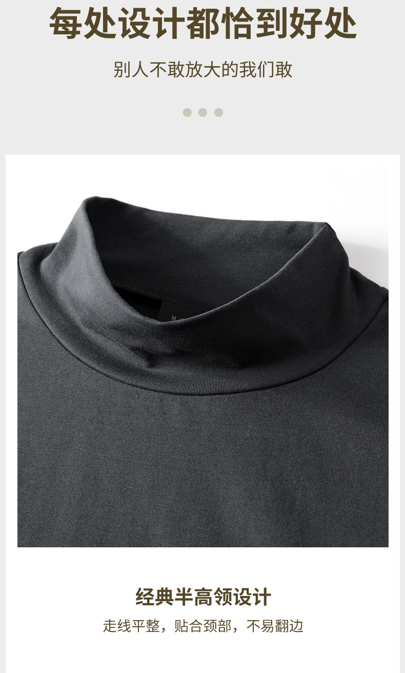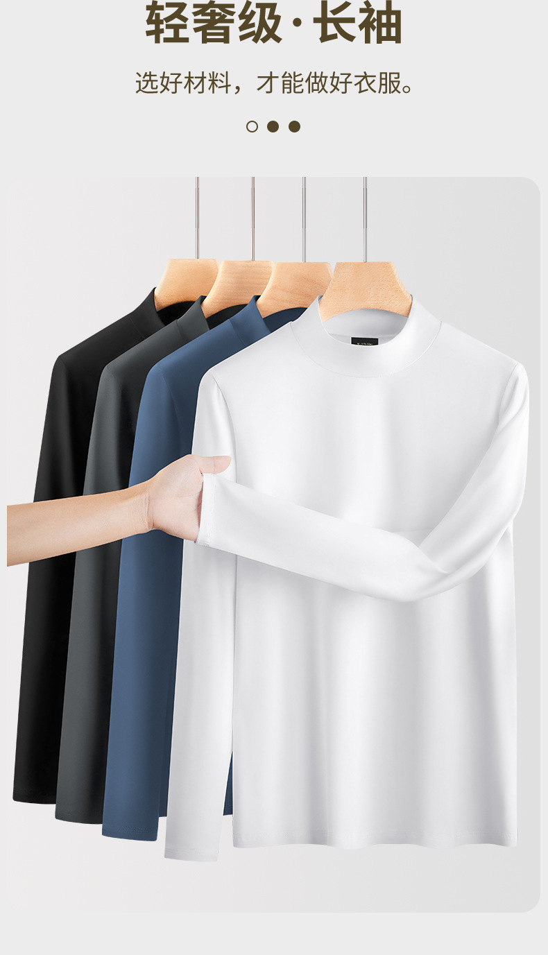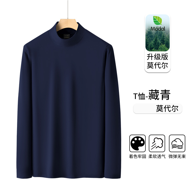 50 년대 모달 긴팔 티셔츠 남성용 양털 탑 봄과 가을 내포 중간 칼라 반 높이 목 두꺼운 베이스 셔츠스토어 가기