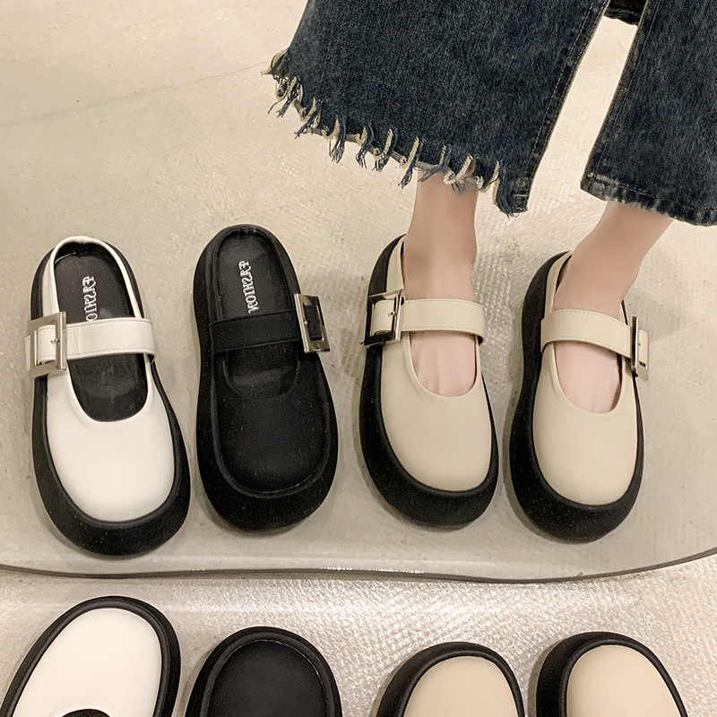 니치 디자인 하프 슬리퍼 여성용 여름 아우터 2024 새로운 스타일 바오터 벨트 버클 통기성 강화 두꺼운 샌들