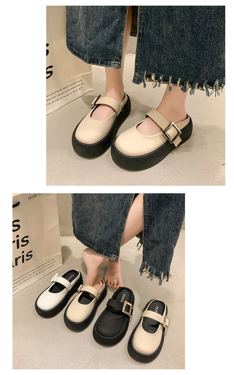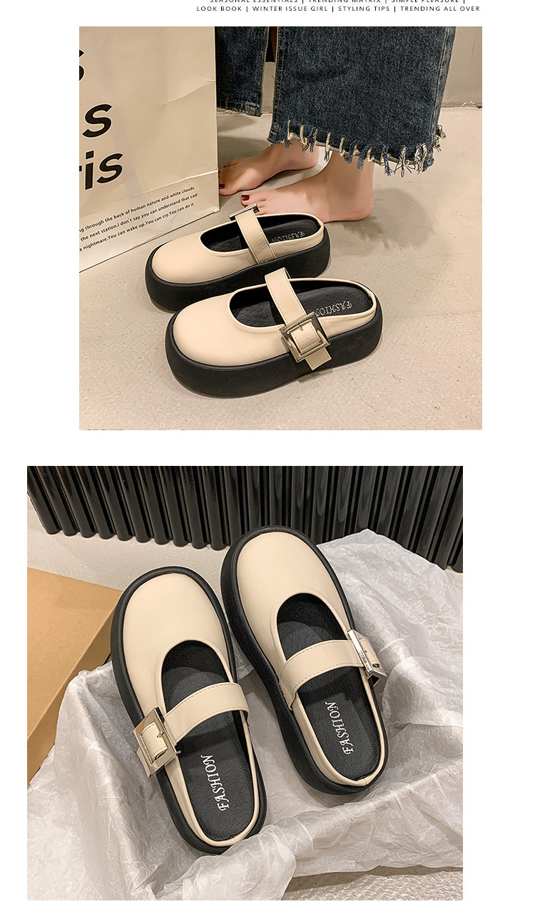 니치 디자인 하프 슬리퍼 여성용 여름 아우터 2024 새로운 스타일 바오터 벨트 버클 통기성 강화 두꺼운 샌들스토어 가기