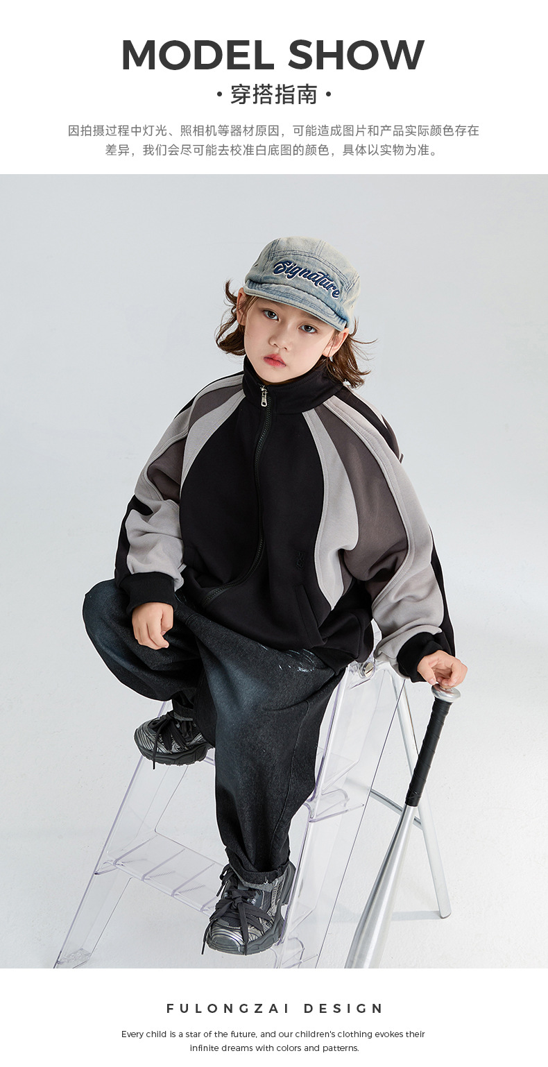 FULONGZAI 부모-자녀 의류 2024 가을 신상 남녀 아동용 루즈핏 카디건 숏 재킷스토어 가기