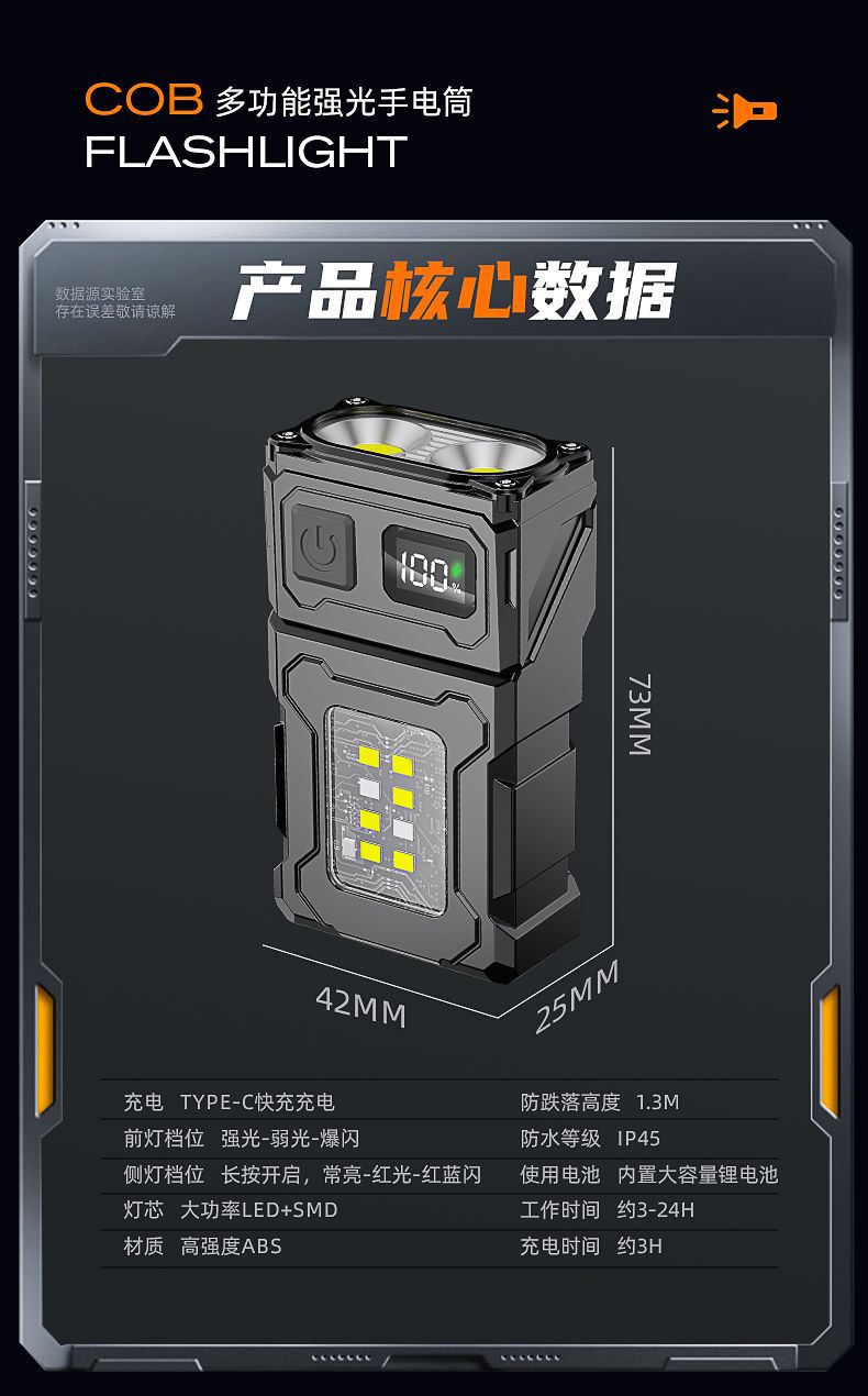 LED 손전등 강한 빛 슈퍼 밝은 충전식 휴대용 긴 내구성 클립 캡 램프 야외 다기능 COB 작업 조명