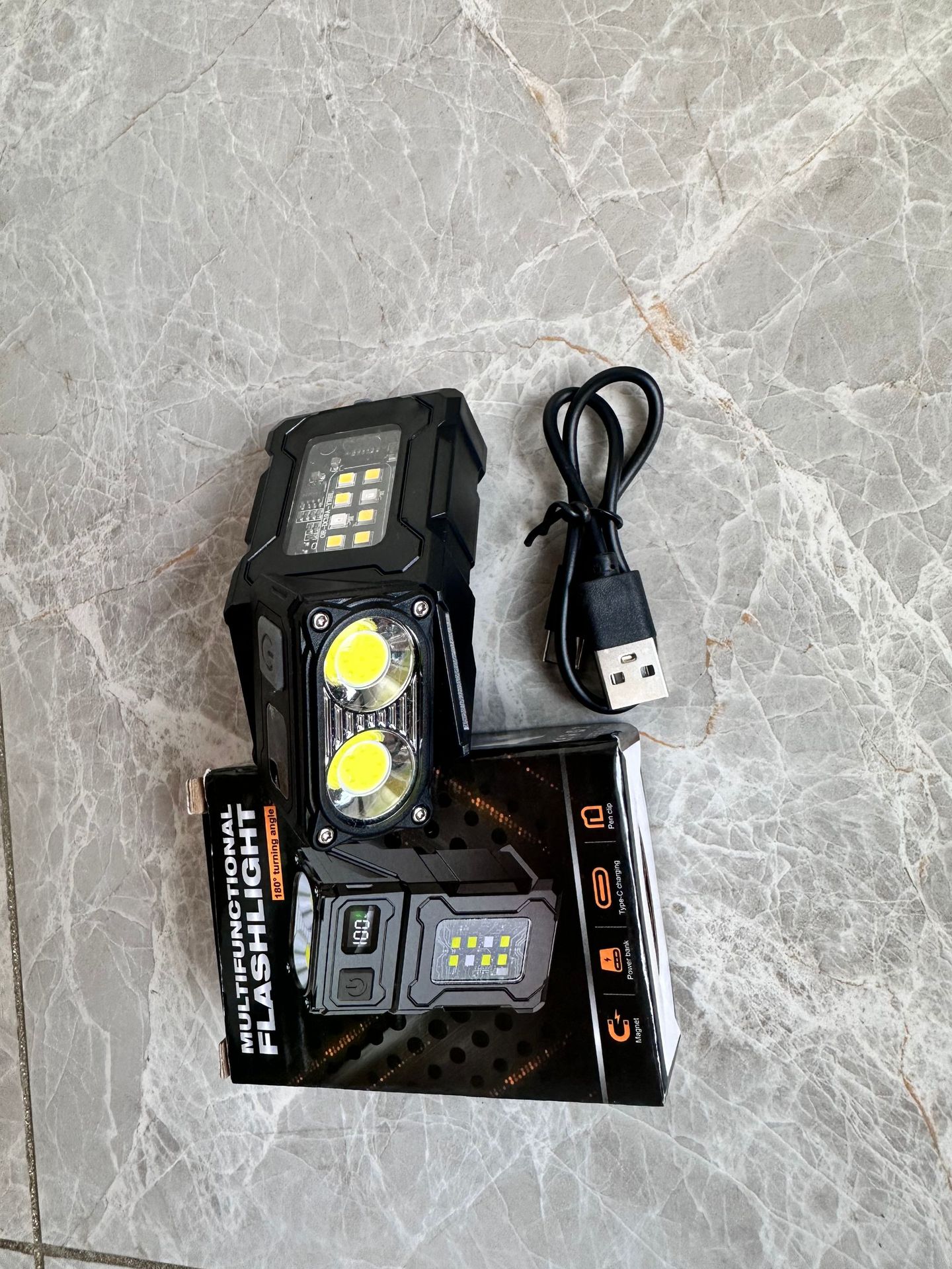 • 듀얼 광원 손전등 [자석 부착 + 스틸 클립 + 휴대폰 충전 기능]
