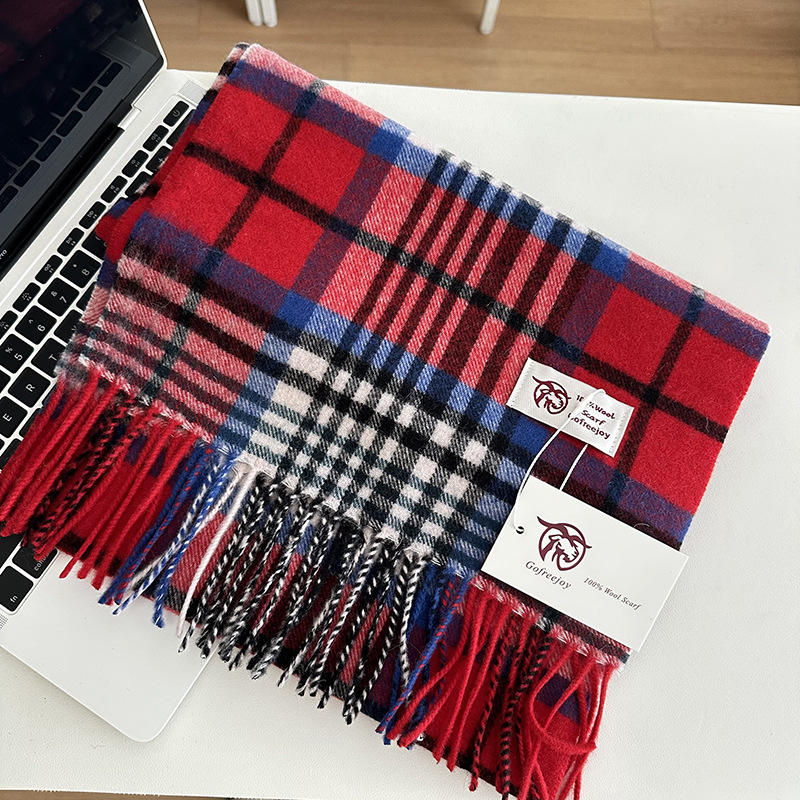 새해 레드 오스트레일리아 100% 울 영국 올 매치 체크 무늬 스카프 여자와 남자 캐시미어 따뜻한 목 고급 목도리