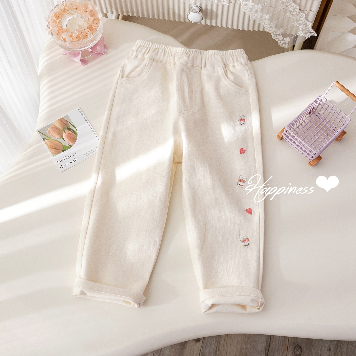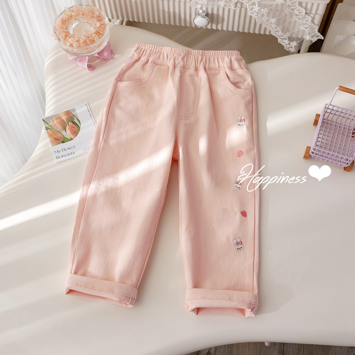 소녀 봄과 가을 새로운 귀여운 토끼 자수 캐주얼 바지 세련된 올 매치 할란 바지 아기 한국 스타일 유행 바지스토어 가기