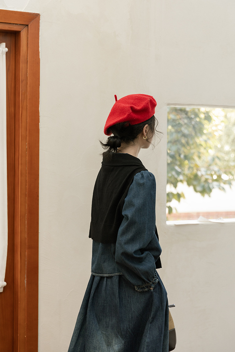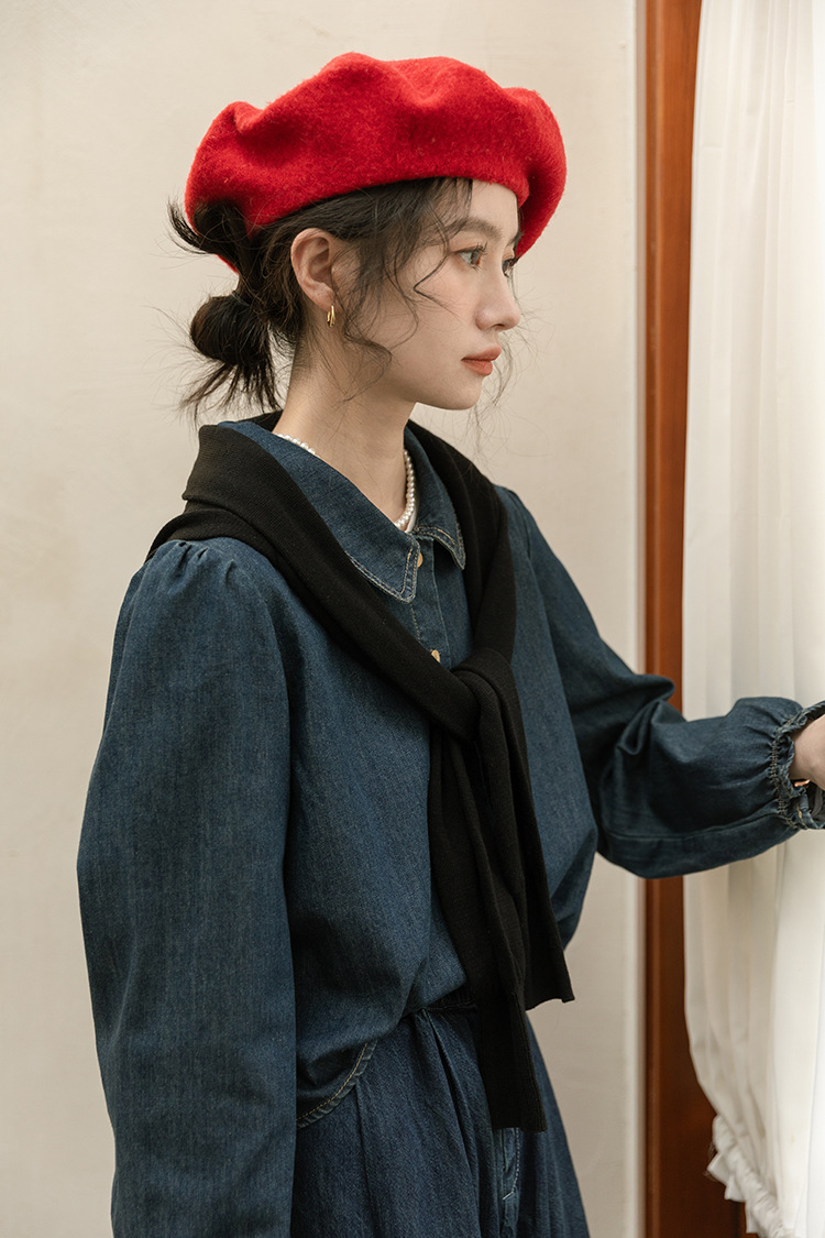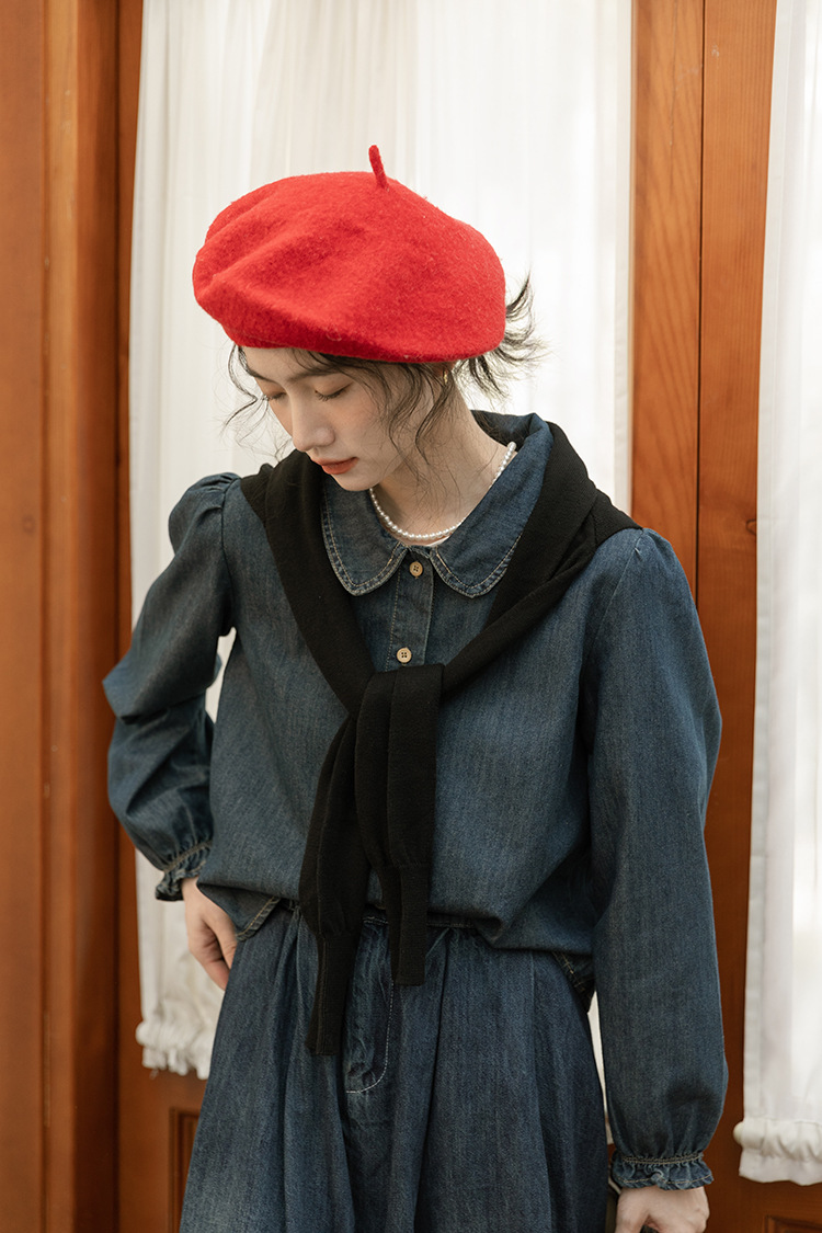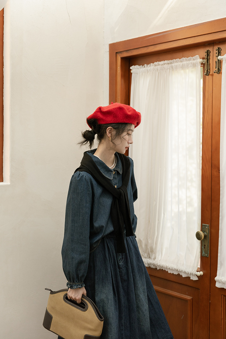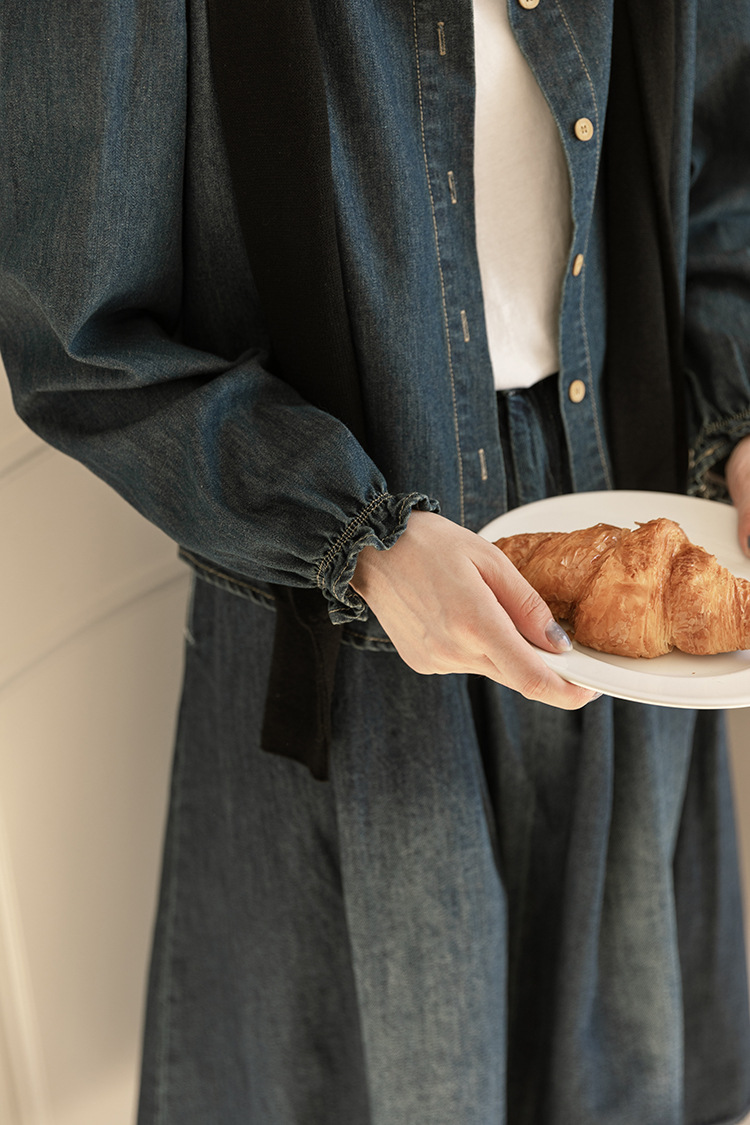 데님 치마 세트 여성 2024 가을 새로운 빈티지 인형 칼라 꽃잎 소매 긴 소매 데님 재킷 스커트스토어 가기