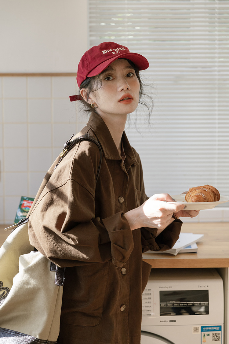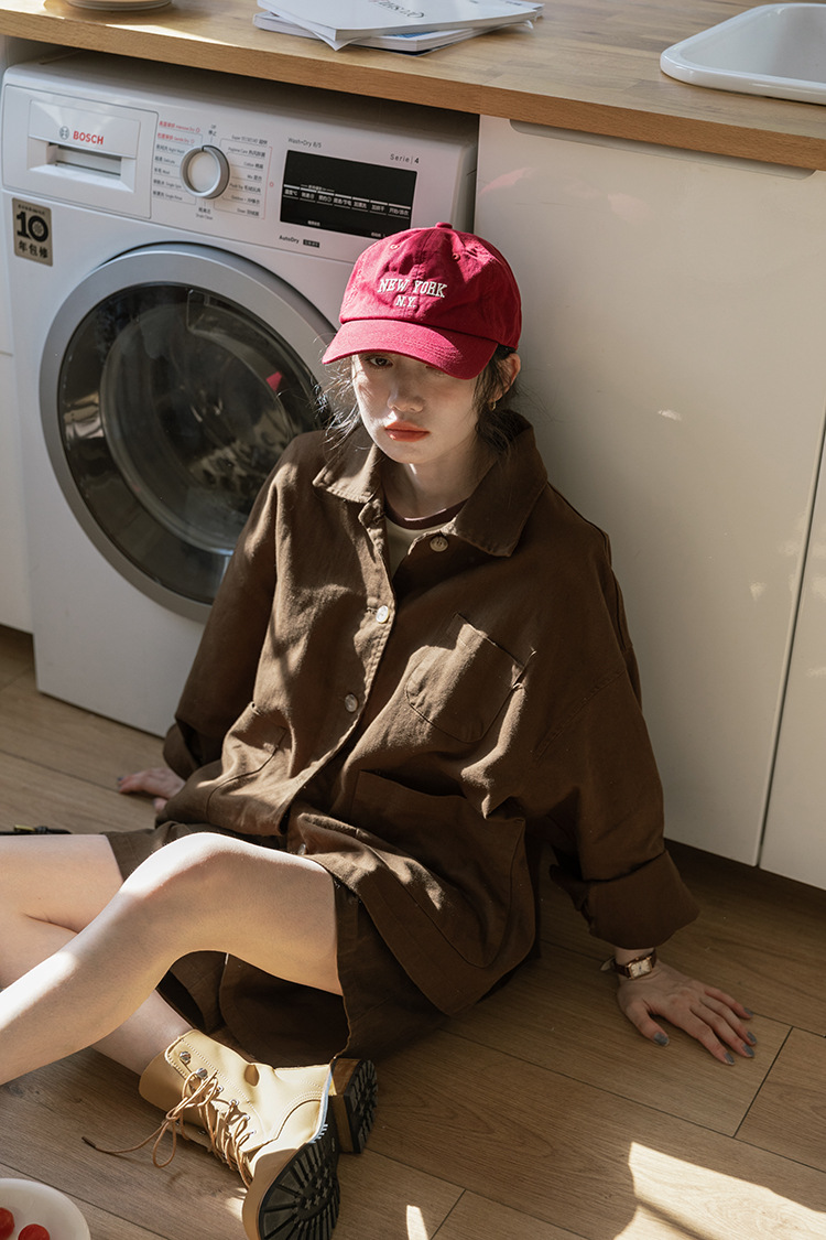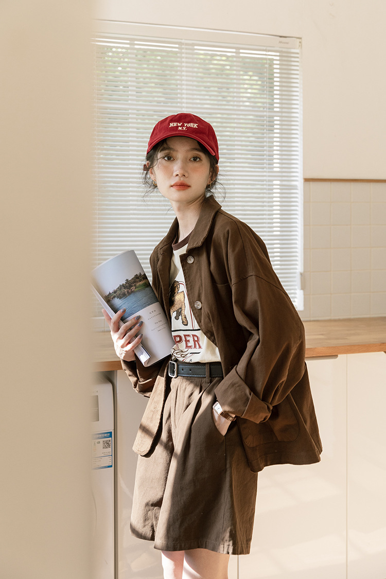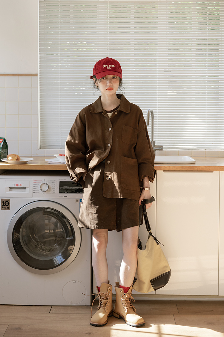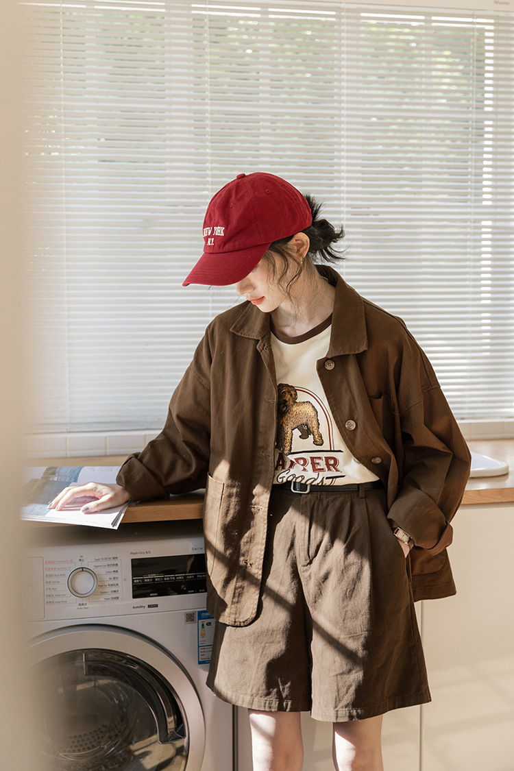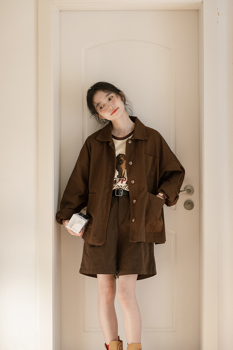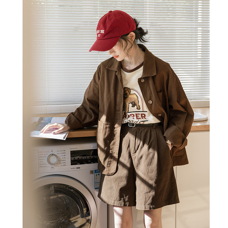가을 2024 새로운 한국 스타일 레트로 홍콩 스타일 세탁 가능한 코튼 커피 컬러 툴링 대형 포켓 옷깃 캐주얼 재킷스토어 가기