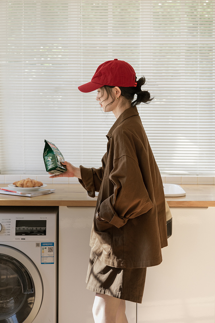 가을 2024 새로운 한국 스타일 레트로 홍콩 스타일 세탁 가능한 코튼 커피 컬러 툴링 대형 포켓 옷깃 캐주얼 재킷