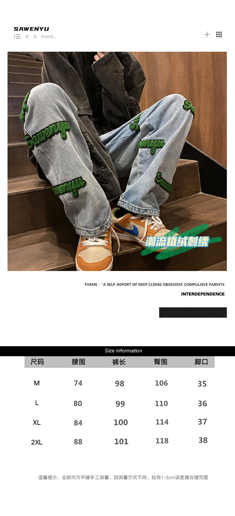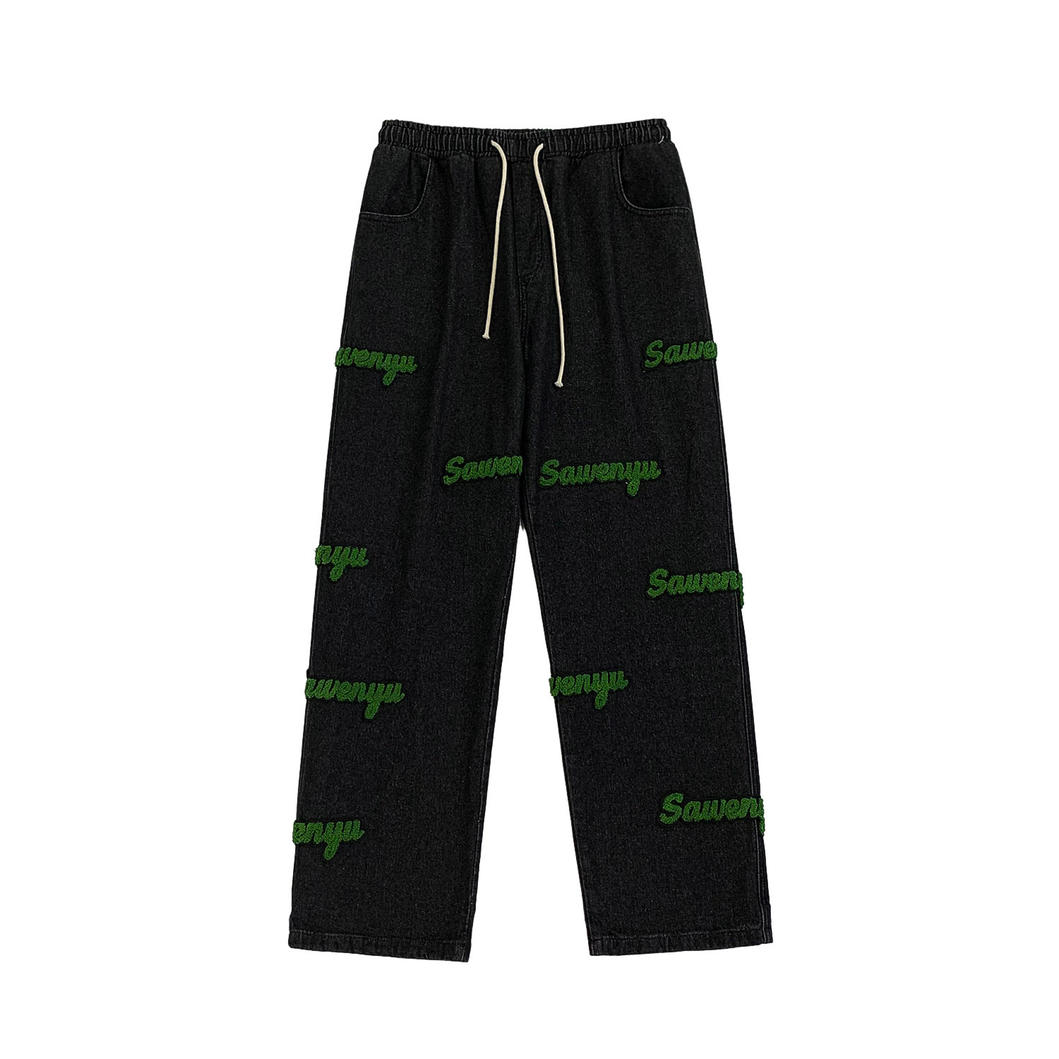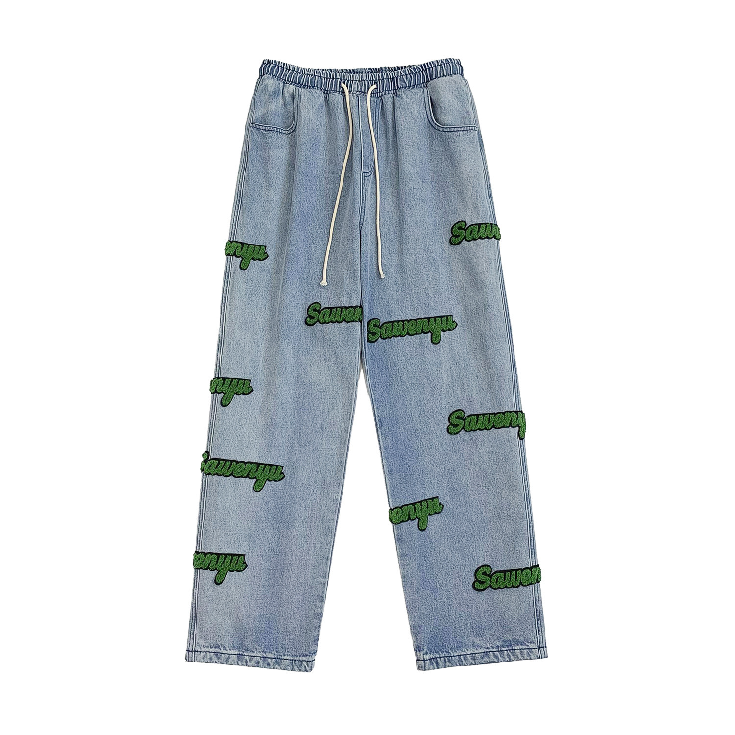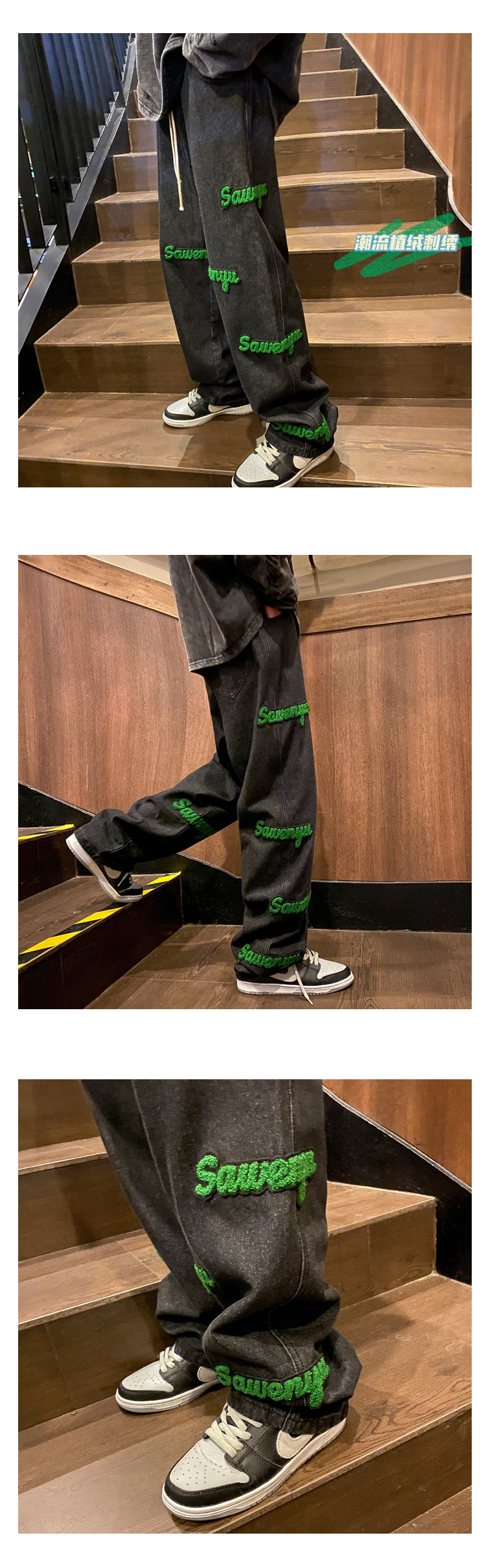 고정 자수 청바지 남성 봄 트렌디 브랜드 하이 스트리트 인 홍콩 스타일 바지 봄과 가을 느슨한 스트레이트 와이드 다리 바지스토어 가기