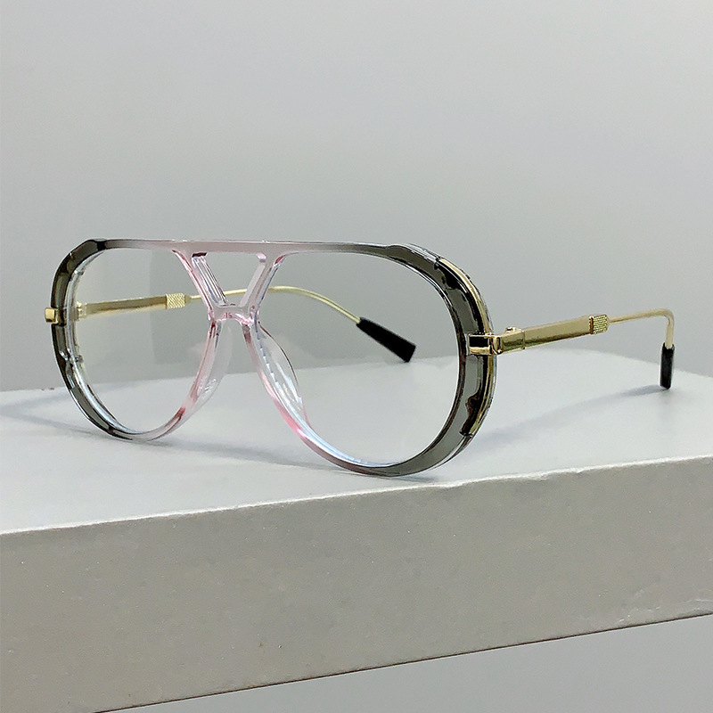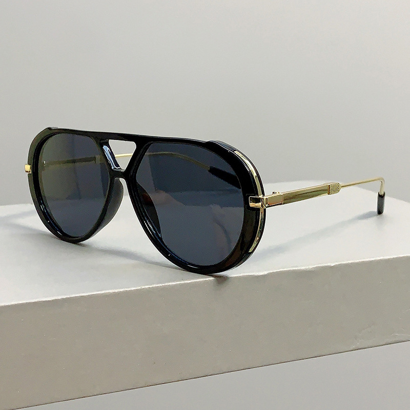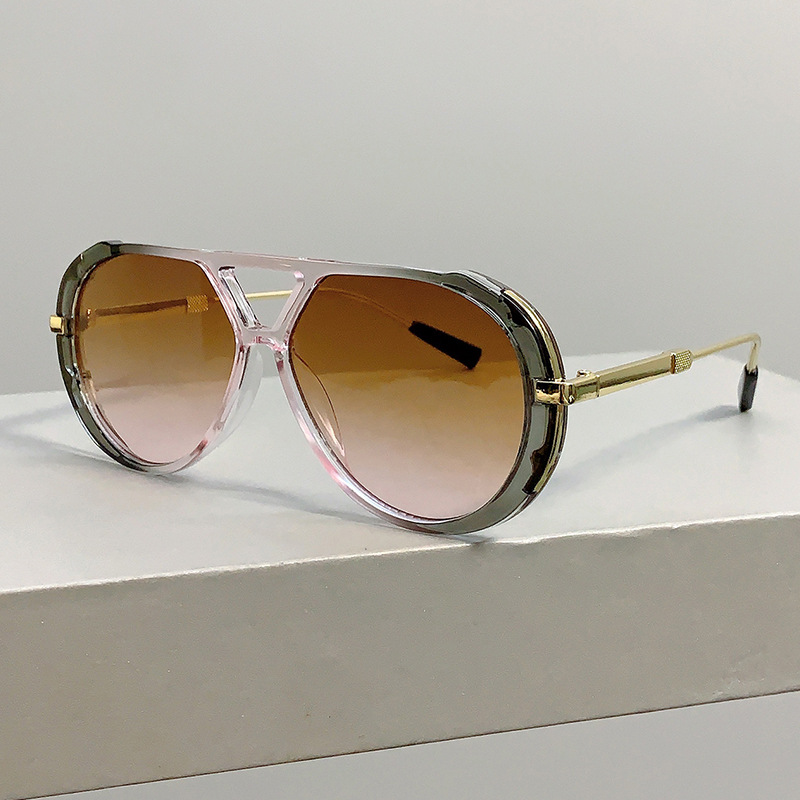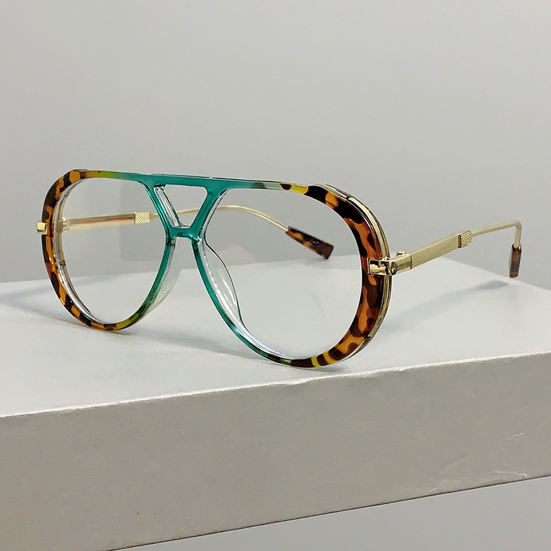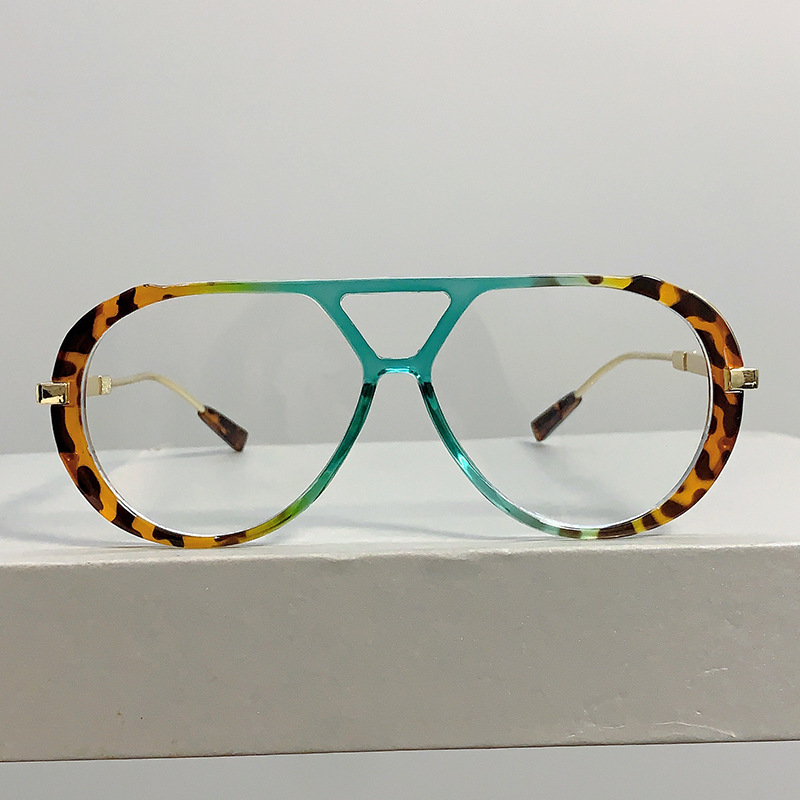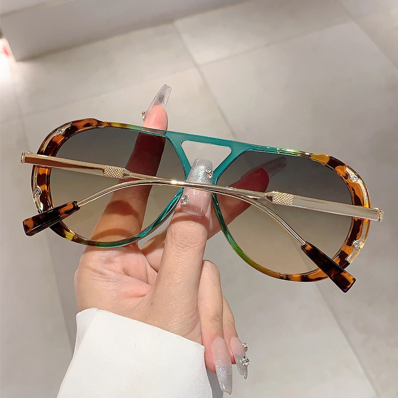 국경 간 새로운 레트로 패션 하이 엔드 라운드 페이스 슬리밍 선글라스 레오파드 프레임 더블 빔 디자인 플랫 미러