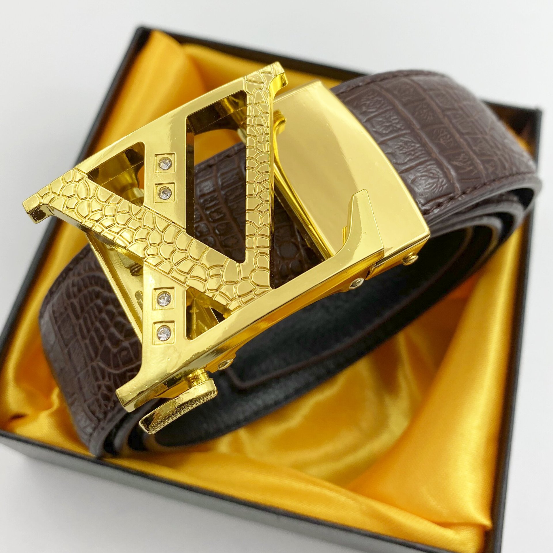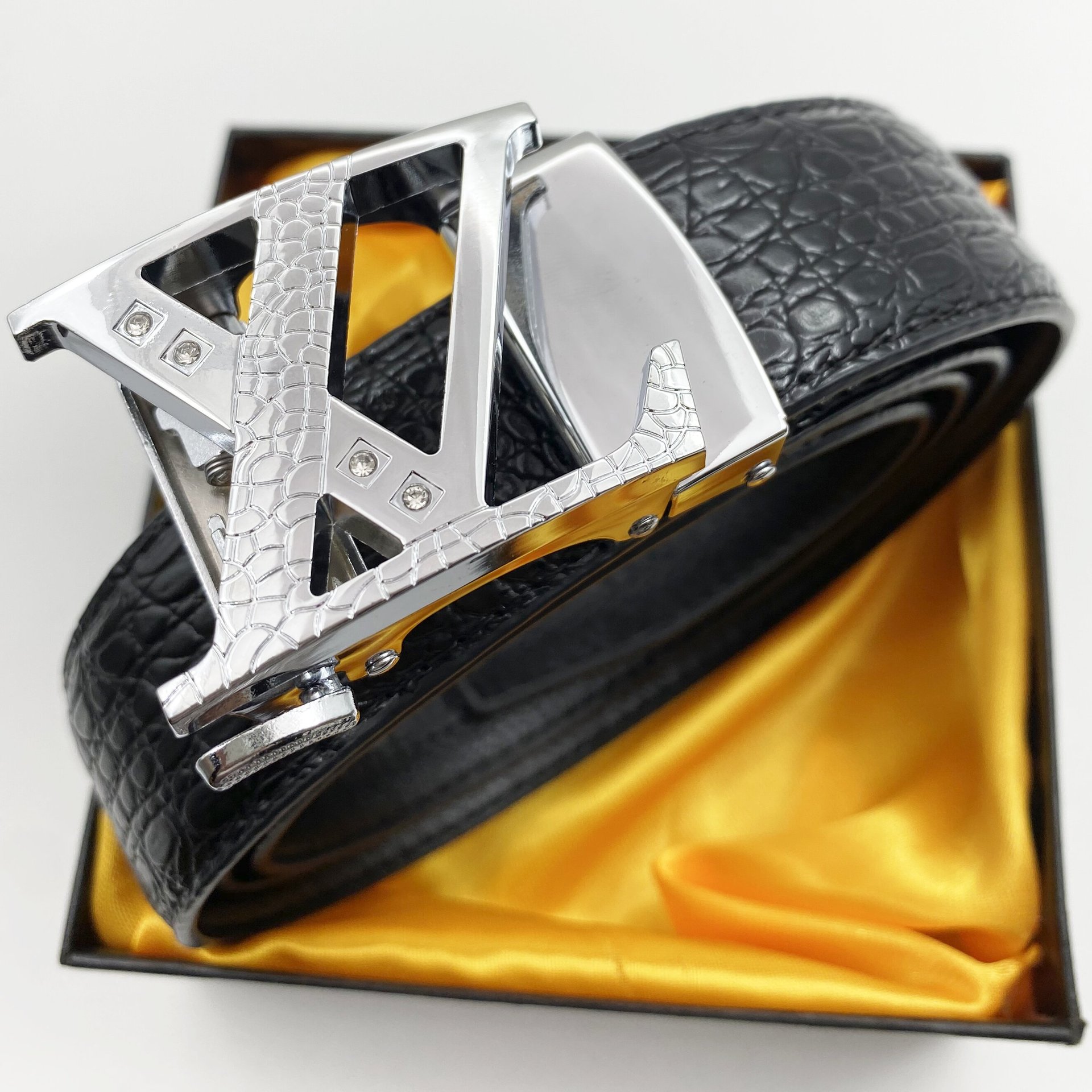• 금장 버클 + 블랙 악어 가죽 벨트