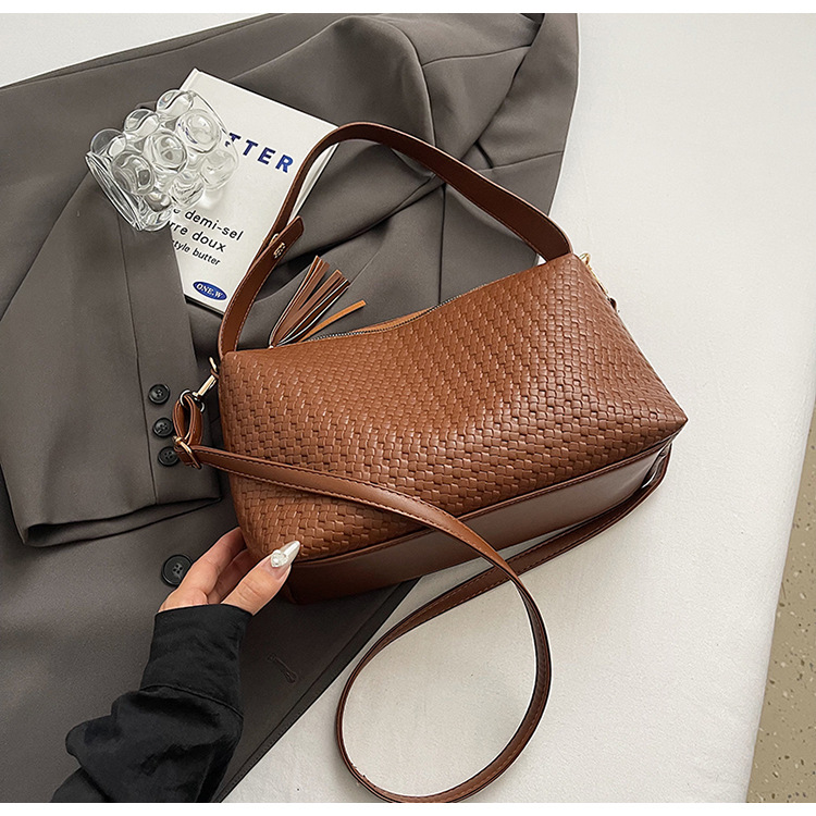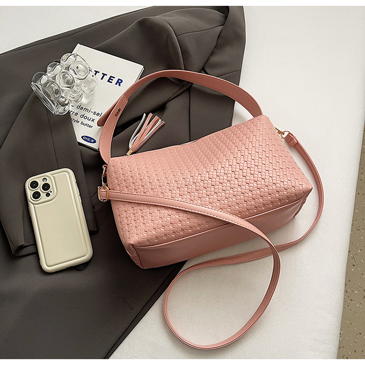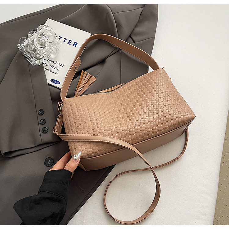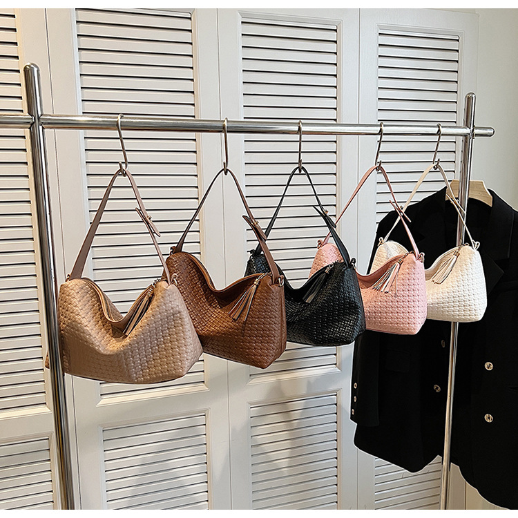 새로운 틈새 짠 패턴 가방 여성 가방 2024 올 매치 대용량 통근 크로스 바디 백 고급 언더암 숄더 백
