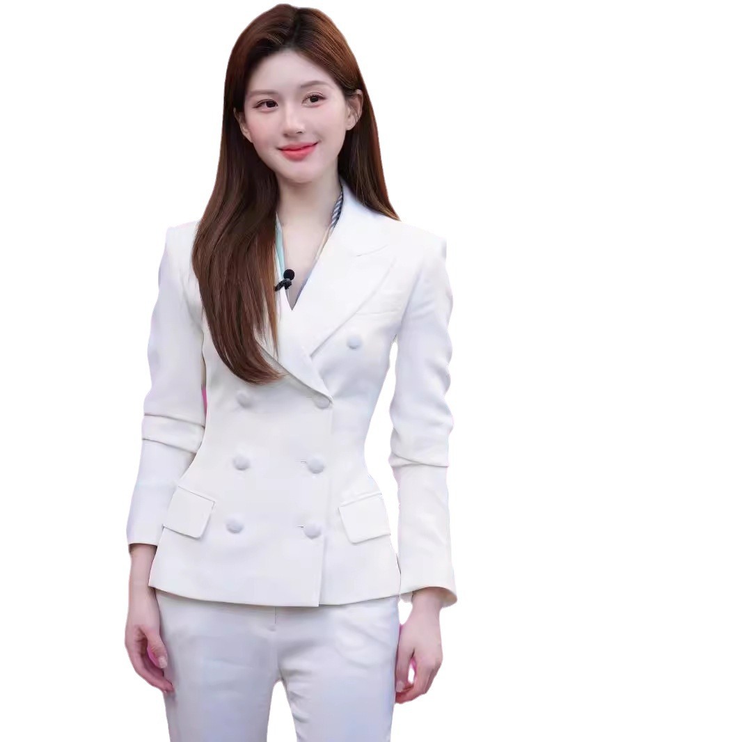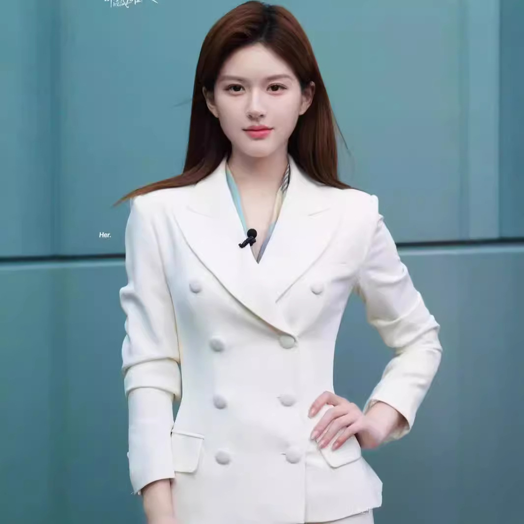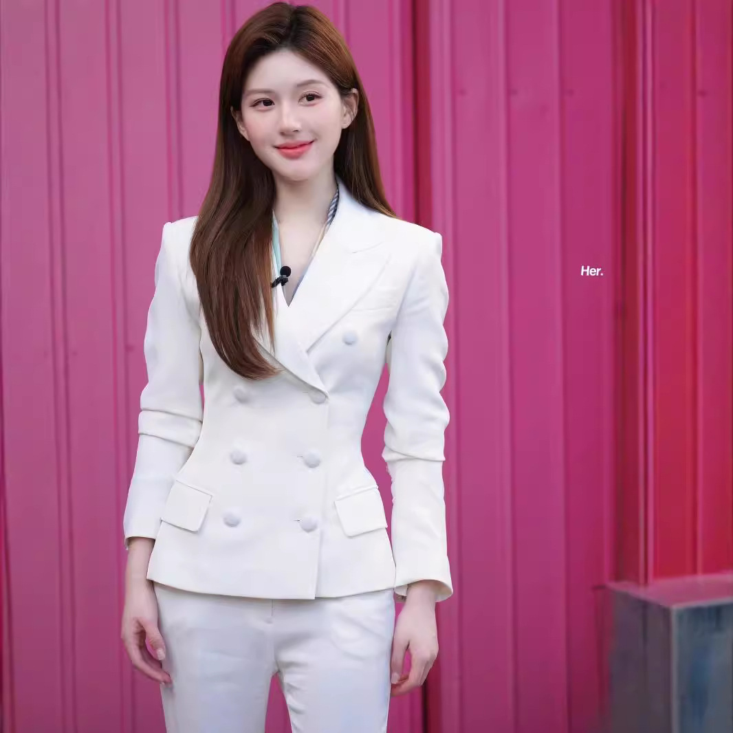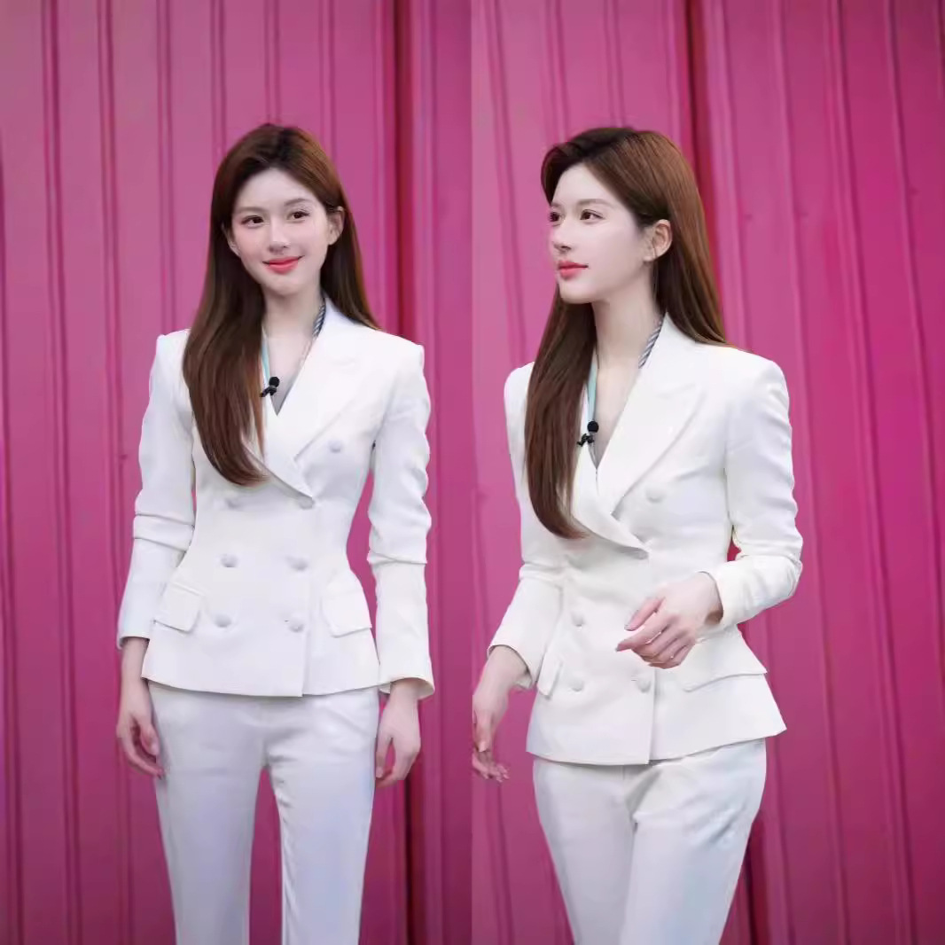 스타 같은 스타일 화이트 우아한 세트 세트 여성의 봄과 가을 전문 바지 세트 투피스 새로운 스타일스토어 가기