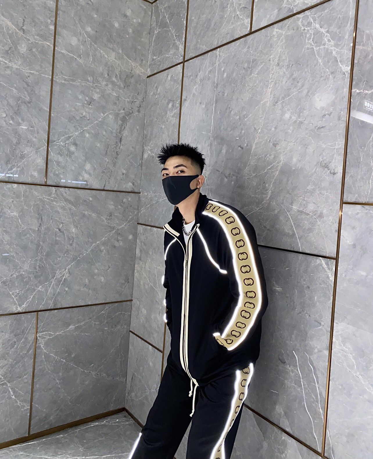 하이 버전 조수 브랜드 GU 홈 22ss 사이드 더블 G 반사 웨빙 코트 남성과 여성의 느슨한 재킷 대외 무역 국경스토어 가기