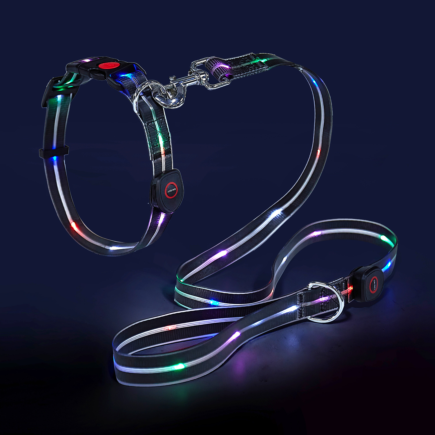 아마존 LED 빛나는 개 로프 애완 동물 용품 소형 및 중형 개 PVC 캡슐화 된 국경 간 플래시 칼라 용 견인 로프스토어 가기