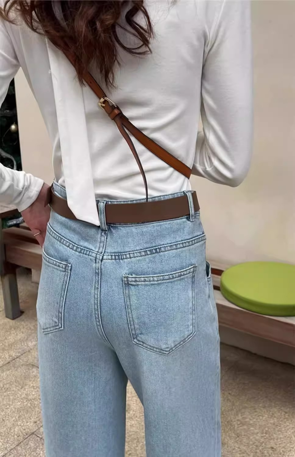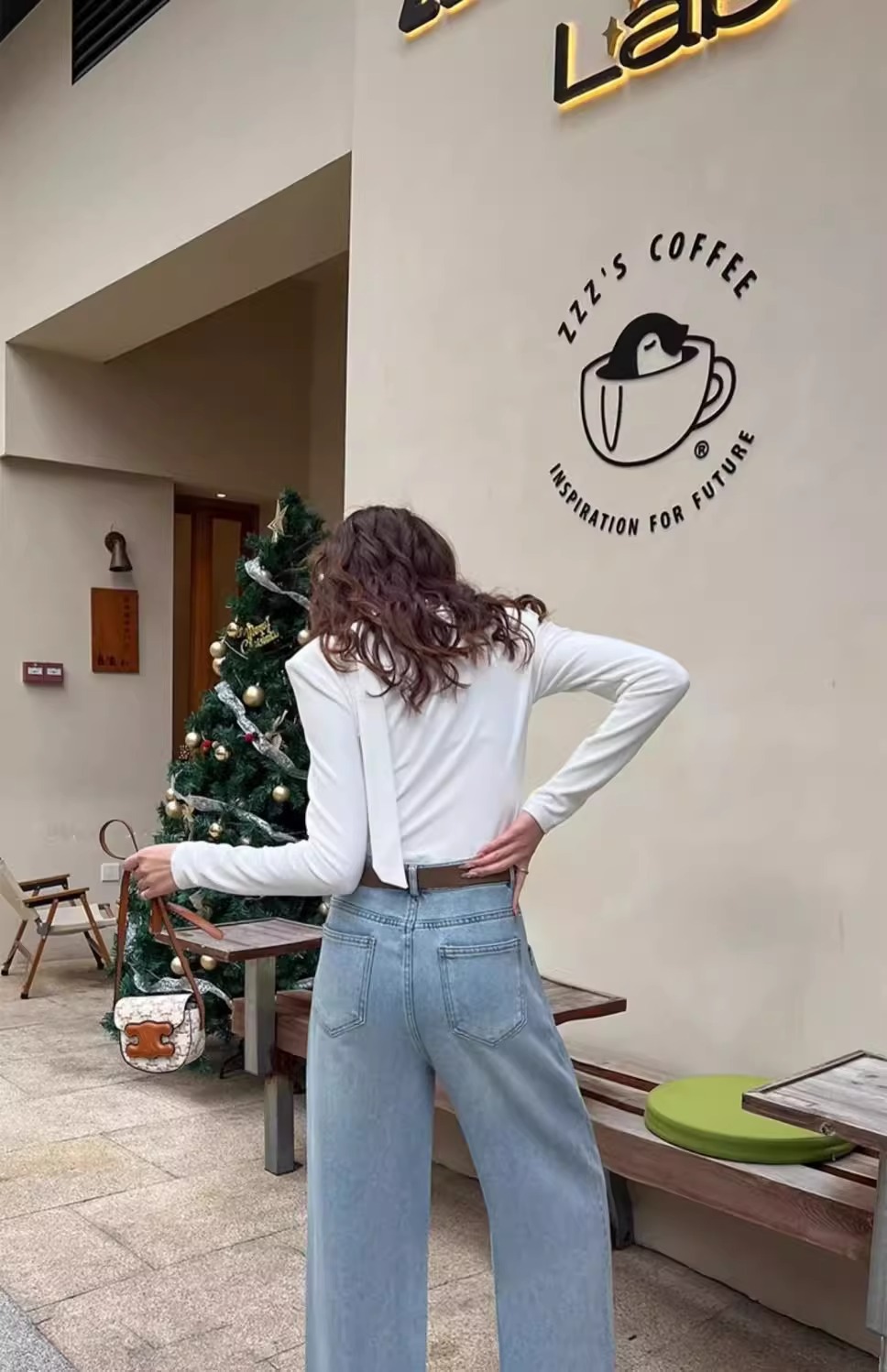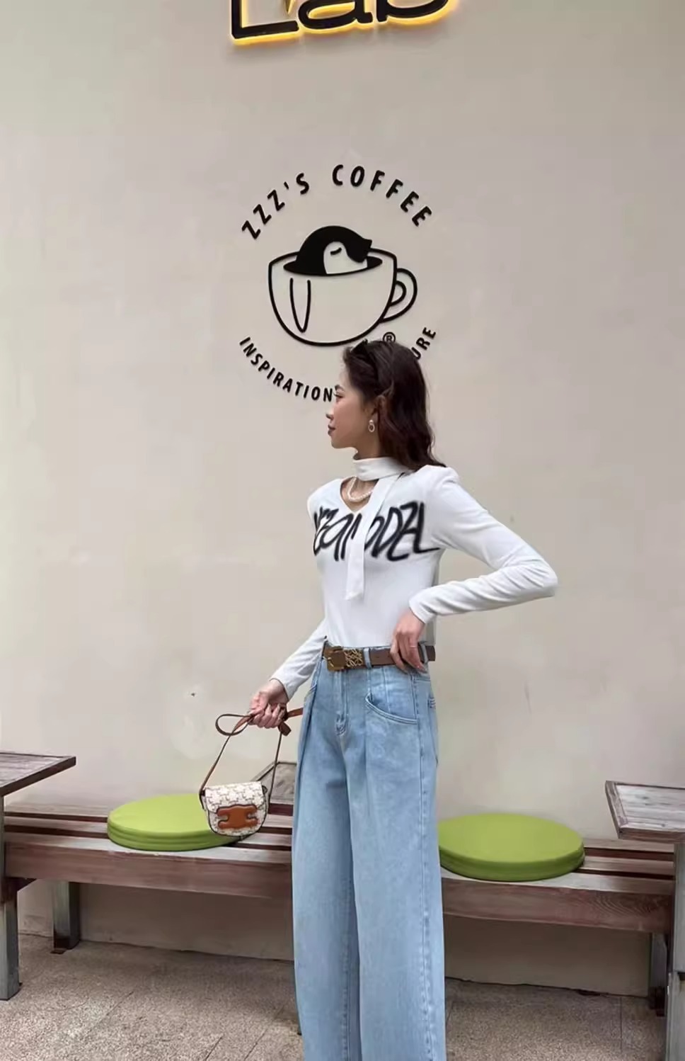 빈티지 홍콩 스타일 와이드 레그 청바지 여성 2024 봄과 가을 새로운 높은 허리 슬리밍 작은 남성 스트레이트 루즈 걸레 바지스토어 가기