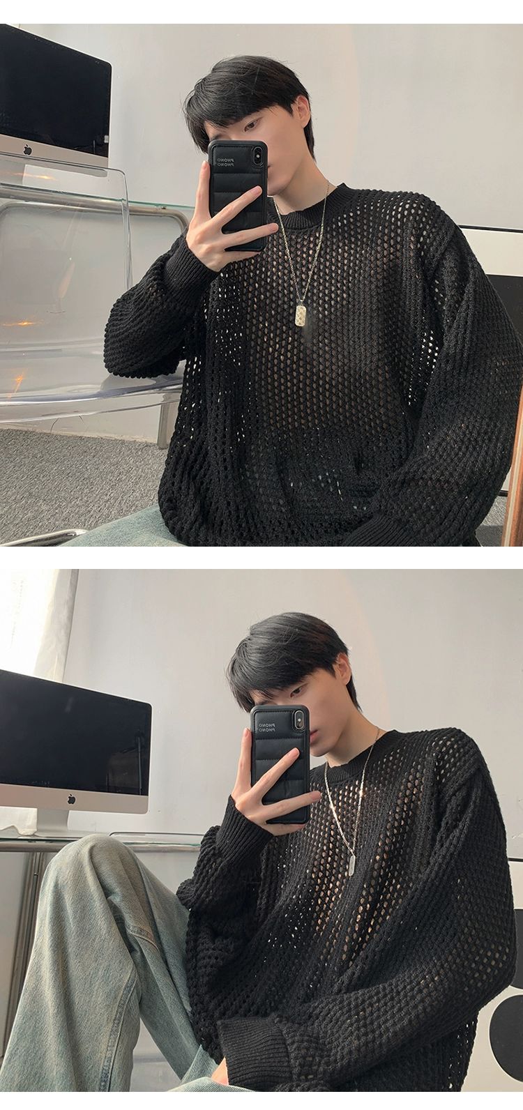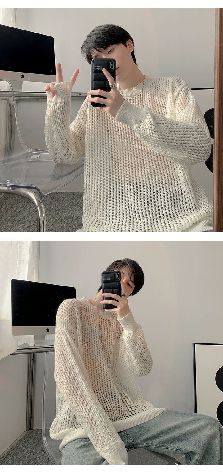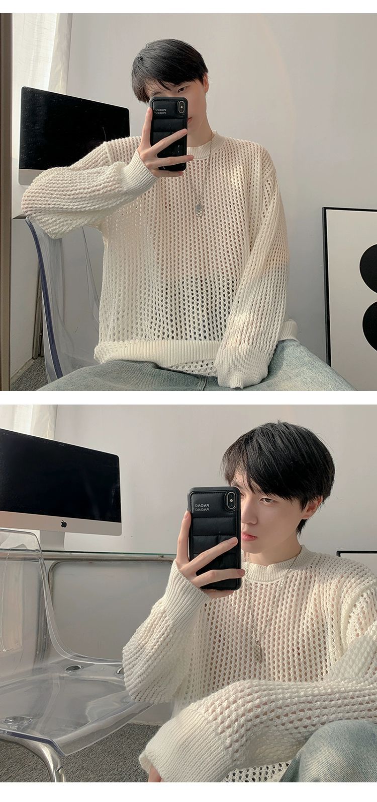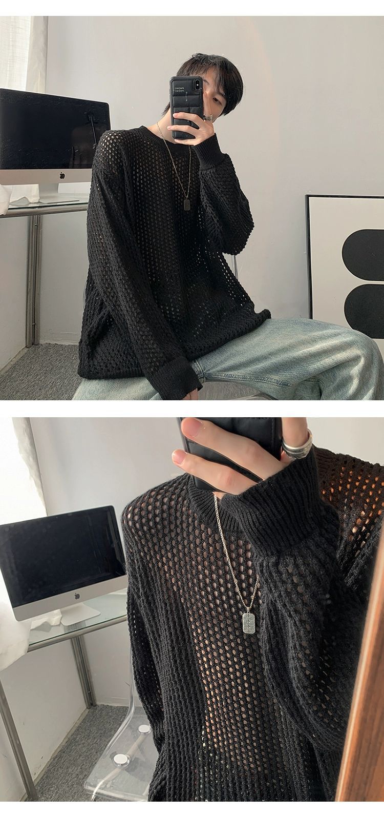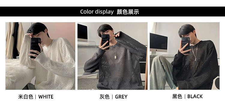 중공 니트 스웨터 남자의 가을과 여름 Ins 얇은 한국 스타일 틈새 디자인 센스 게으른 스타일 루즈 탑 트렌디스토어 가기