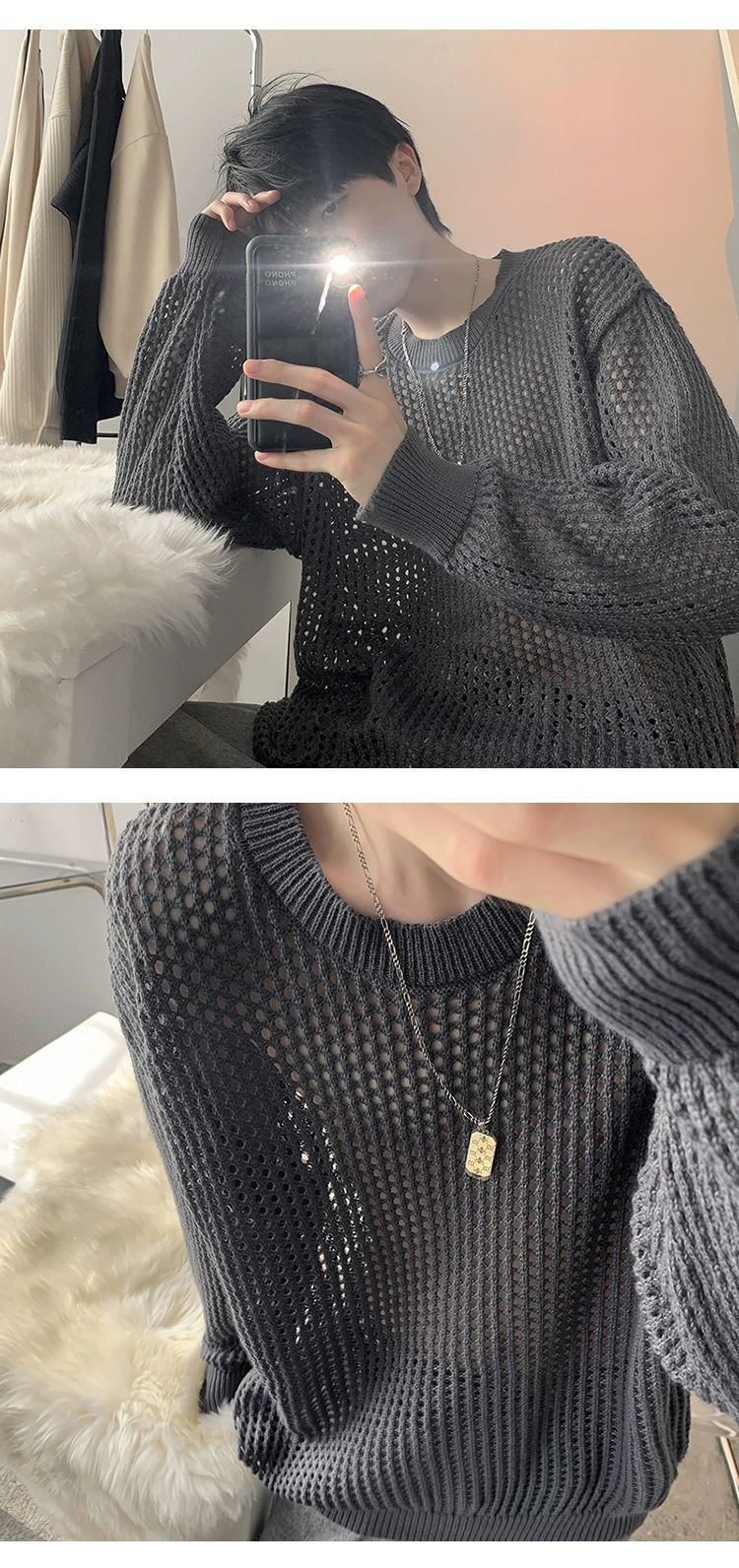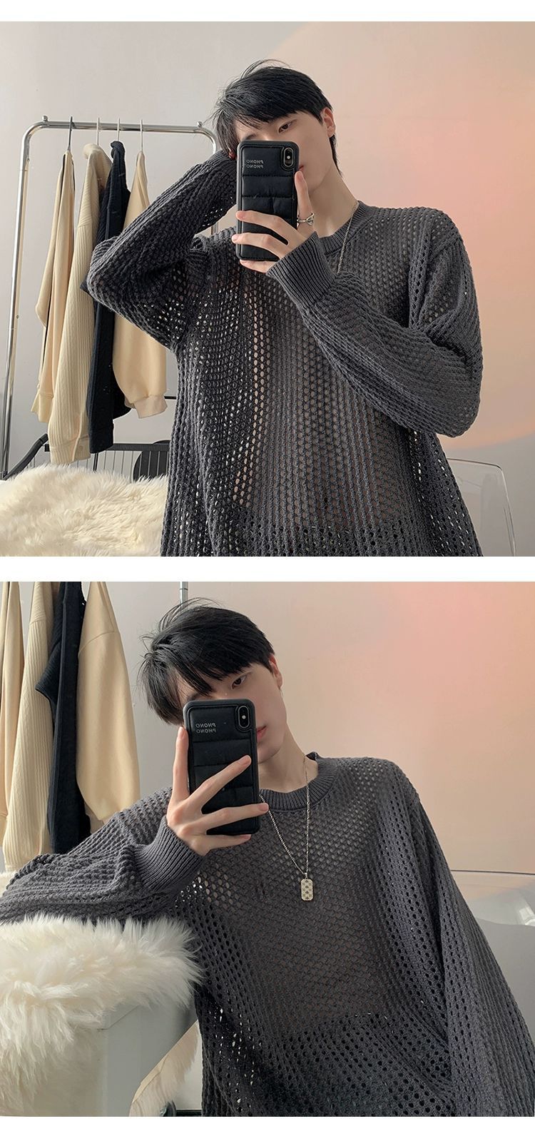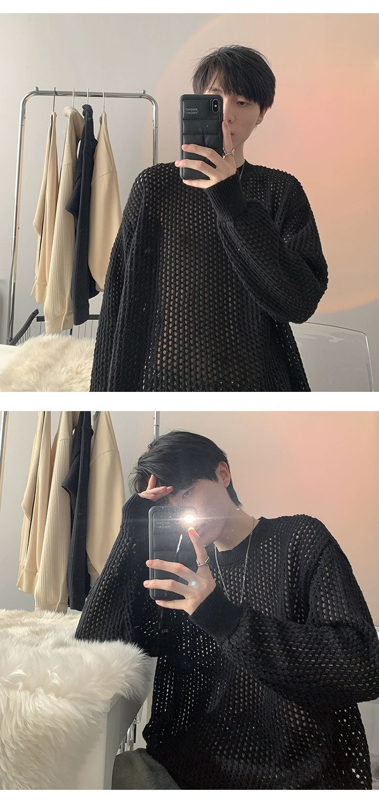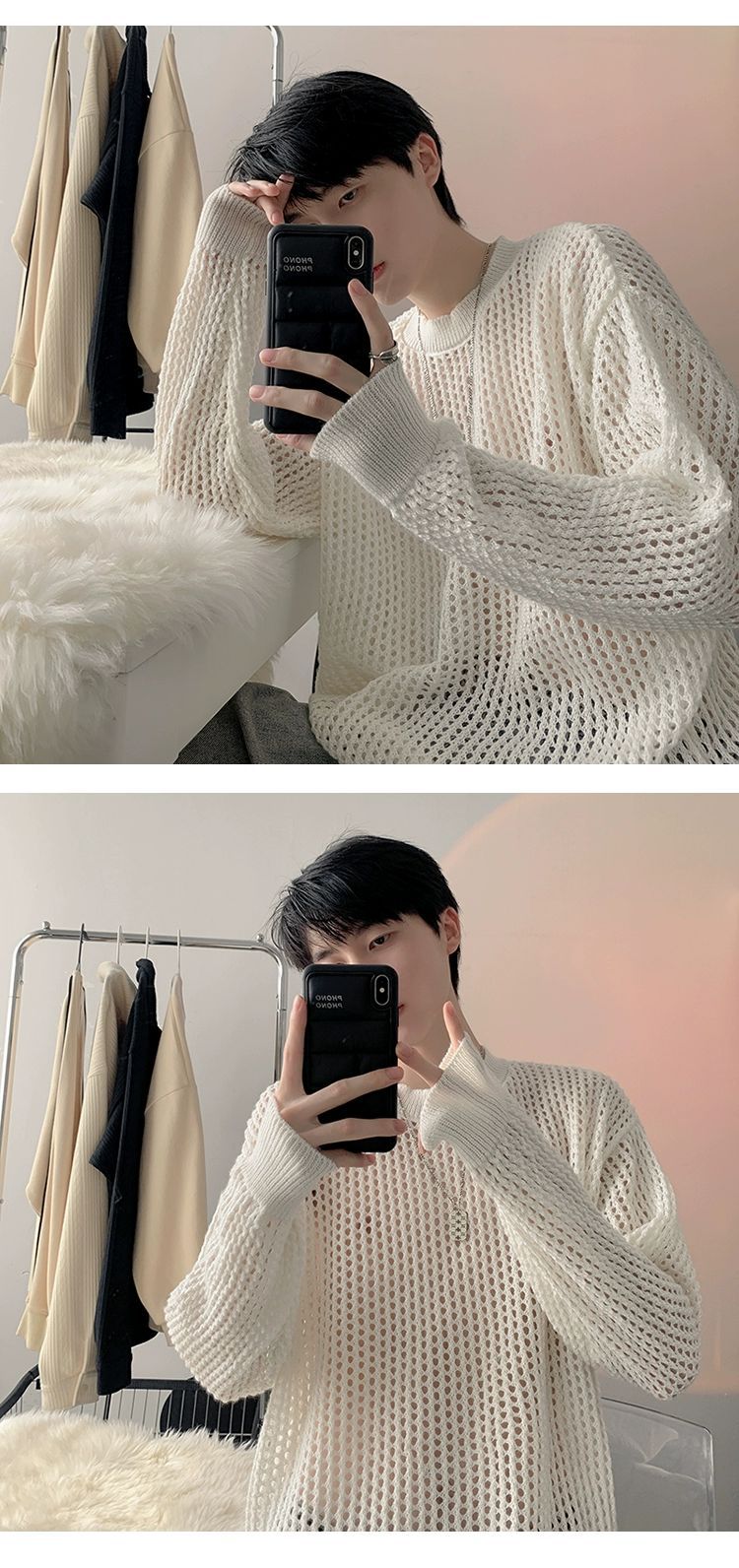 중공 니트 스웨터 남자의 가을과 여름 Ins 얇은 한국 스타일 틈새 디자인 센스 게으른 스타일 루즈 탑 트렌디스토어 가기