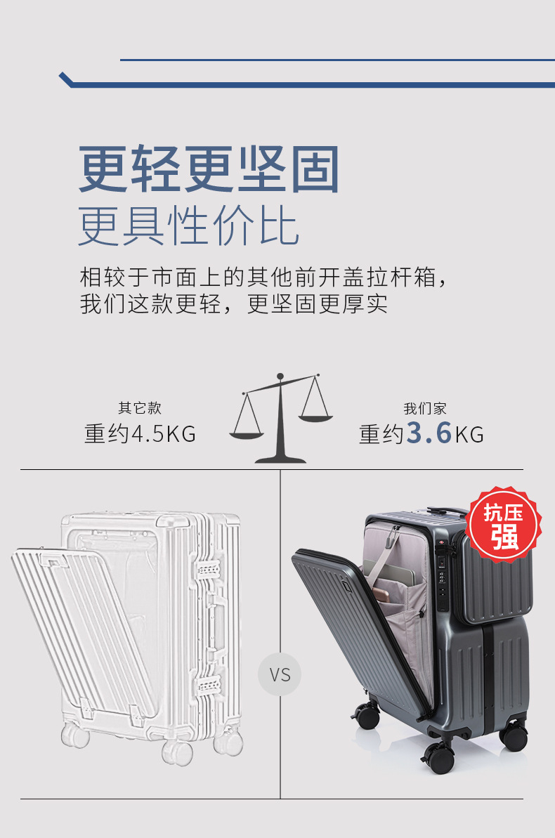 크라운 다기능 여행 가방 전면 개방형 컴퓨터 케이스 알루미늄 프레임 트롤리 케이스 20inch 탑승 케이스 24inch 낙하 방지 비밀번호 케이스스토어 가기