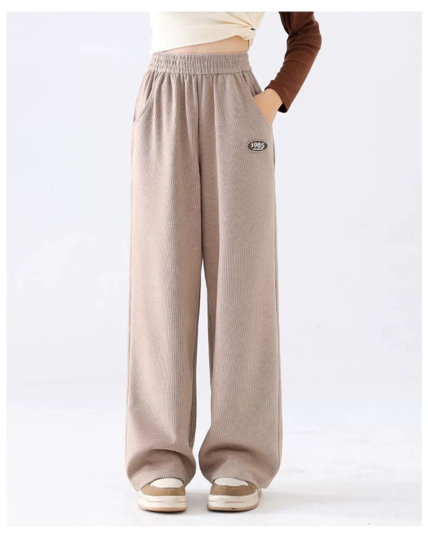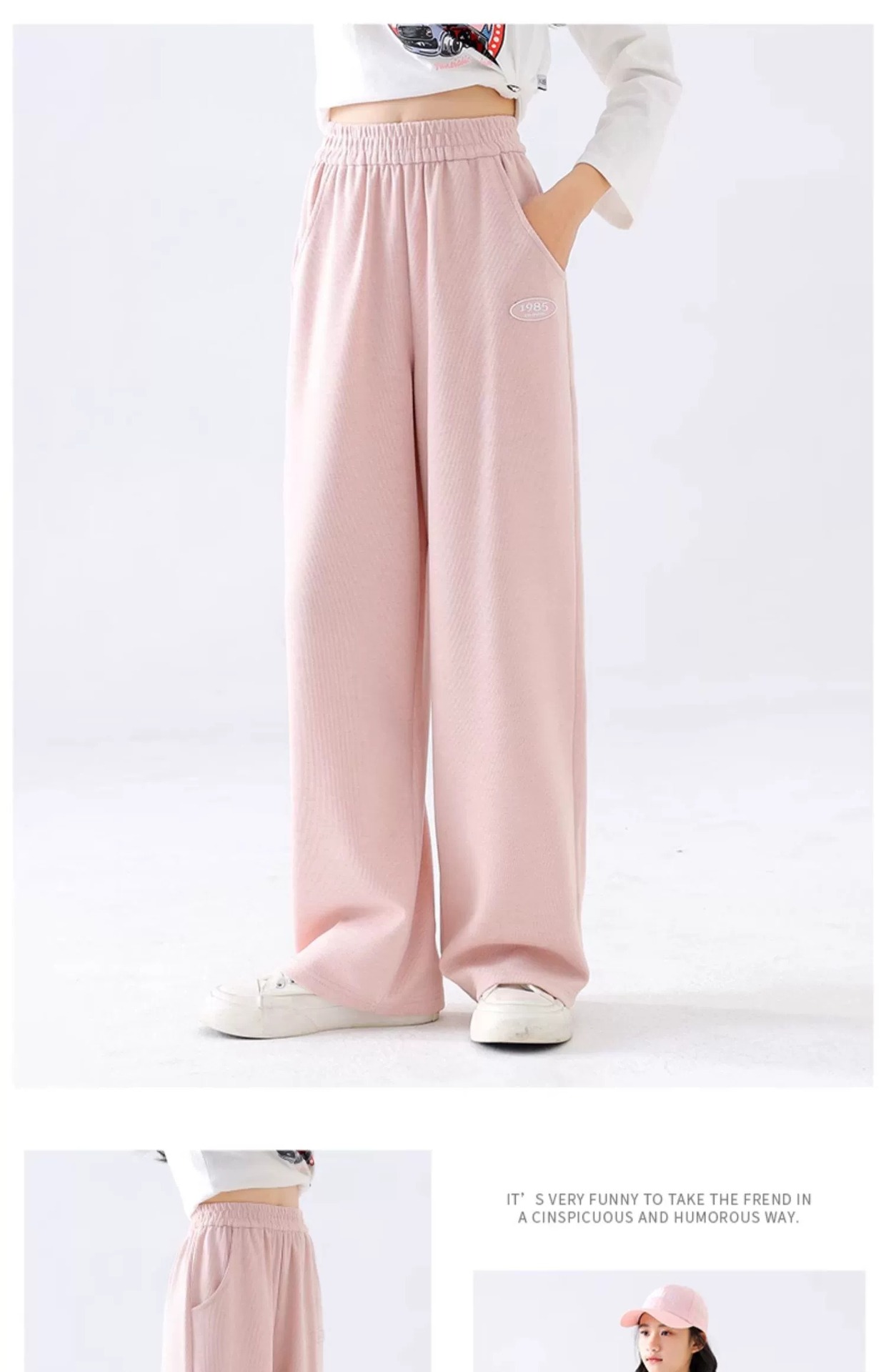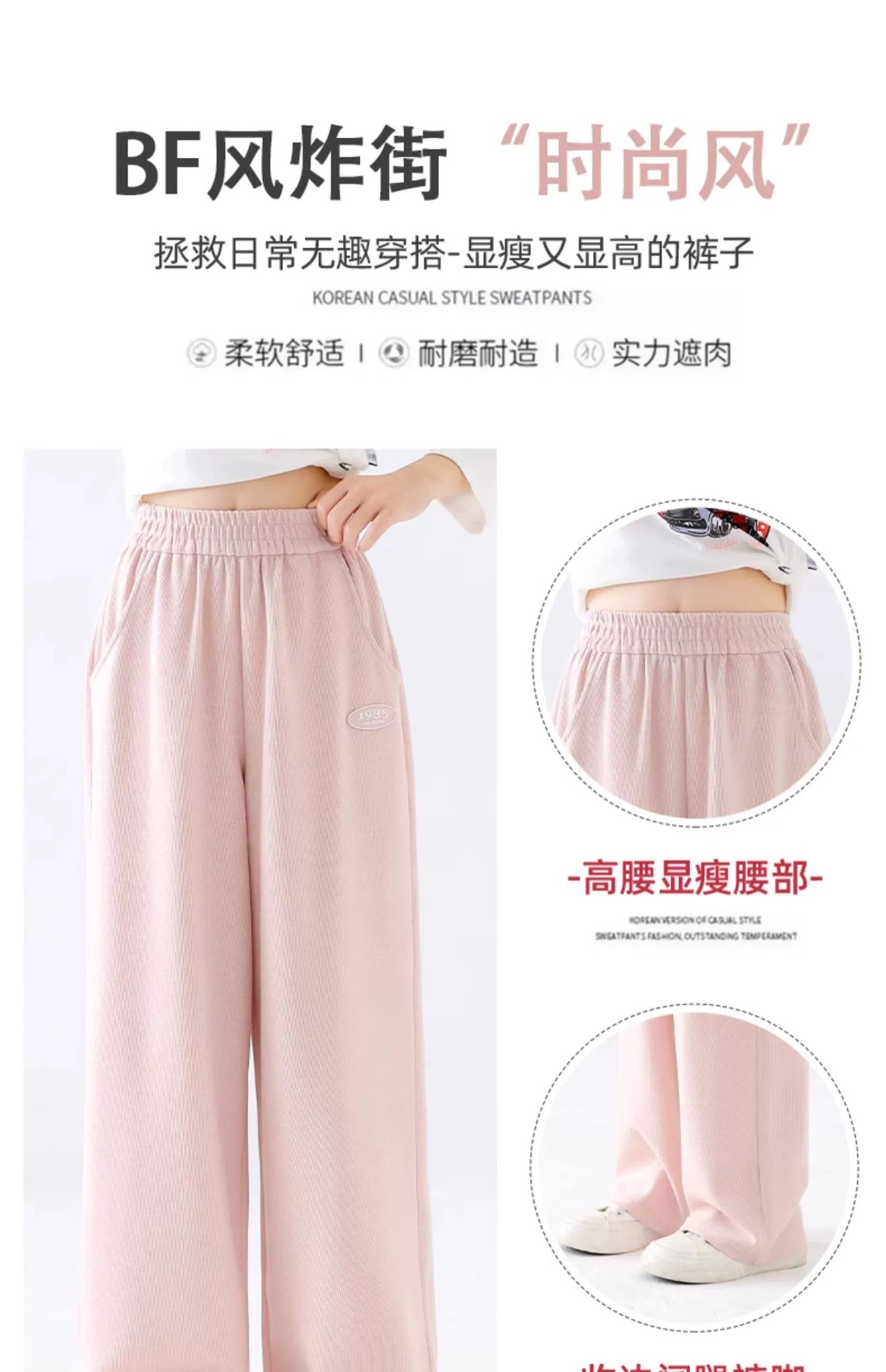 여아 바지 2025 가을 새로운 스타일 중대형 아동 봄 가을 겨울 찹쌀 스트레이트 와이드 팬츠 면 플러스 벨벳 스웨트 팬츠