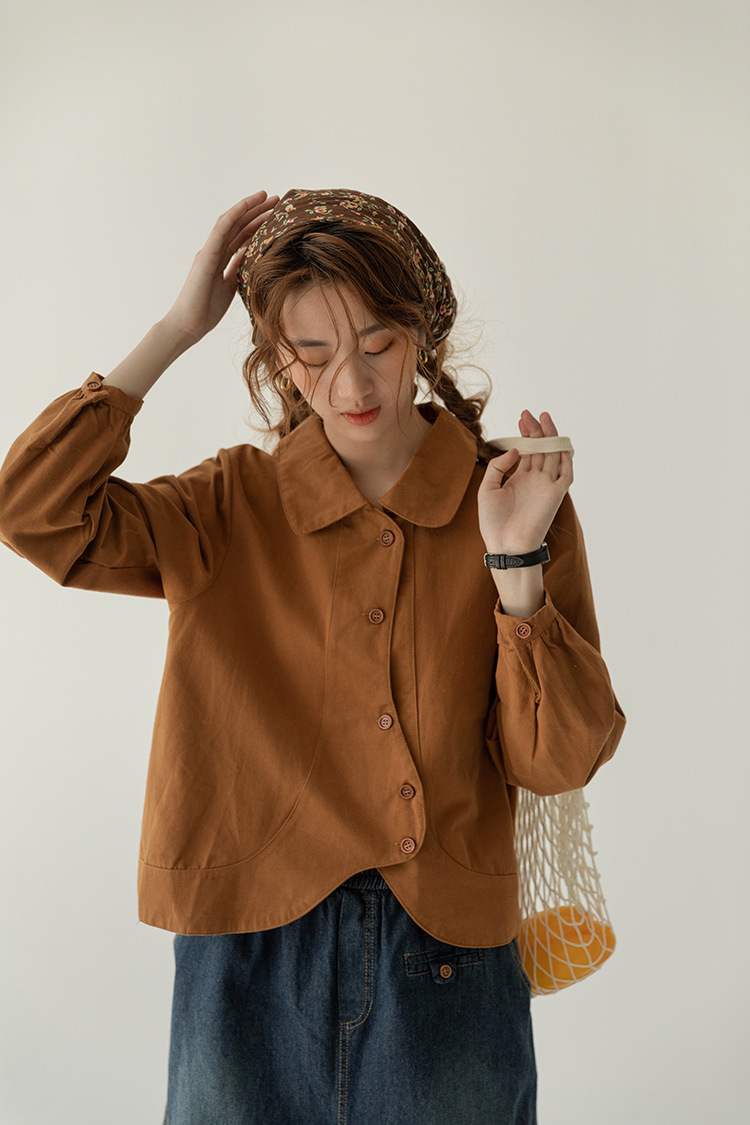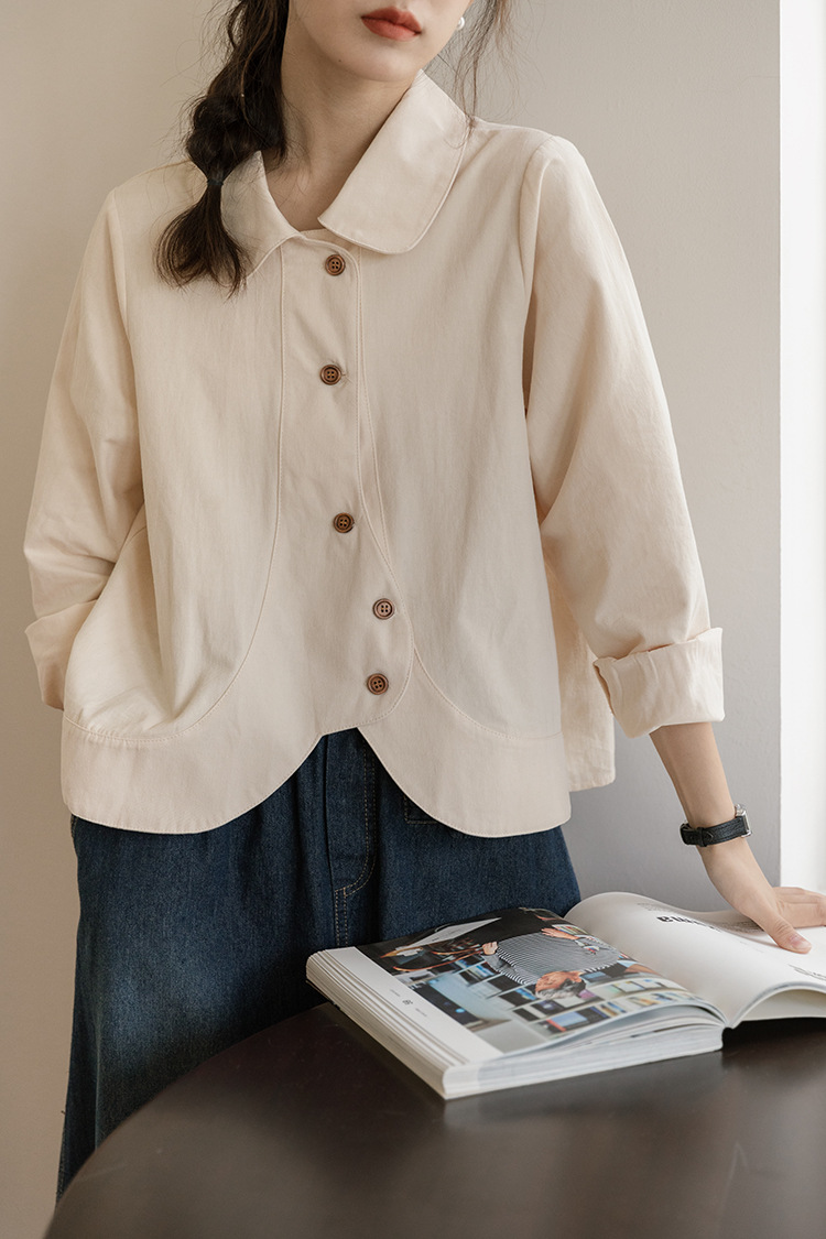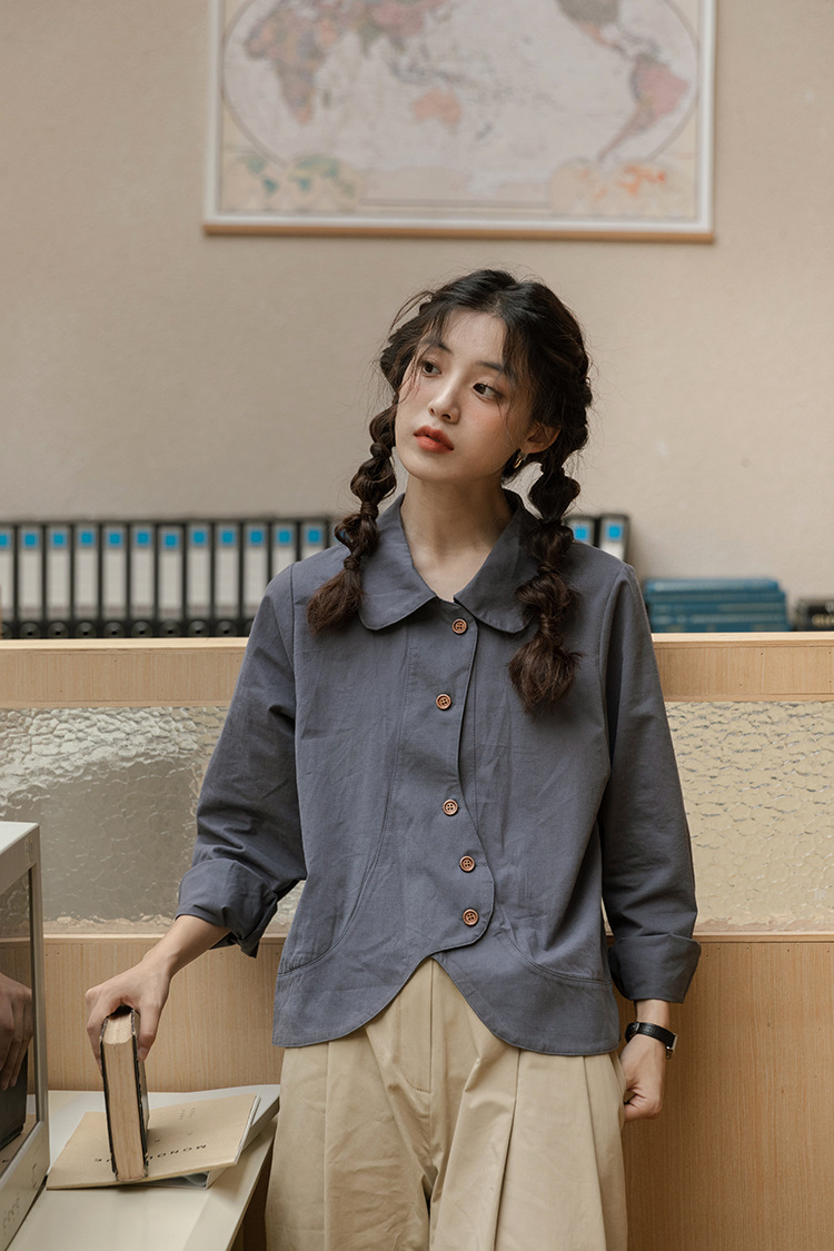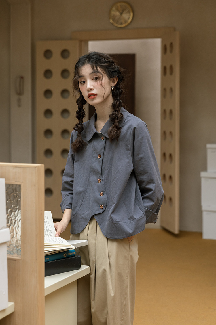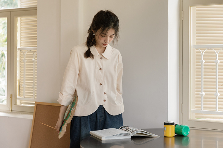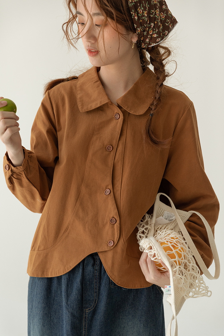 2024 년 가을과 겨울 새로운 일본 스타일 매우 간단한 스타일 불규칙한 디자인 감각 느슨한 슬리밍 짧은 긴 소매 셔츠스토어 가기