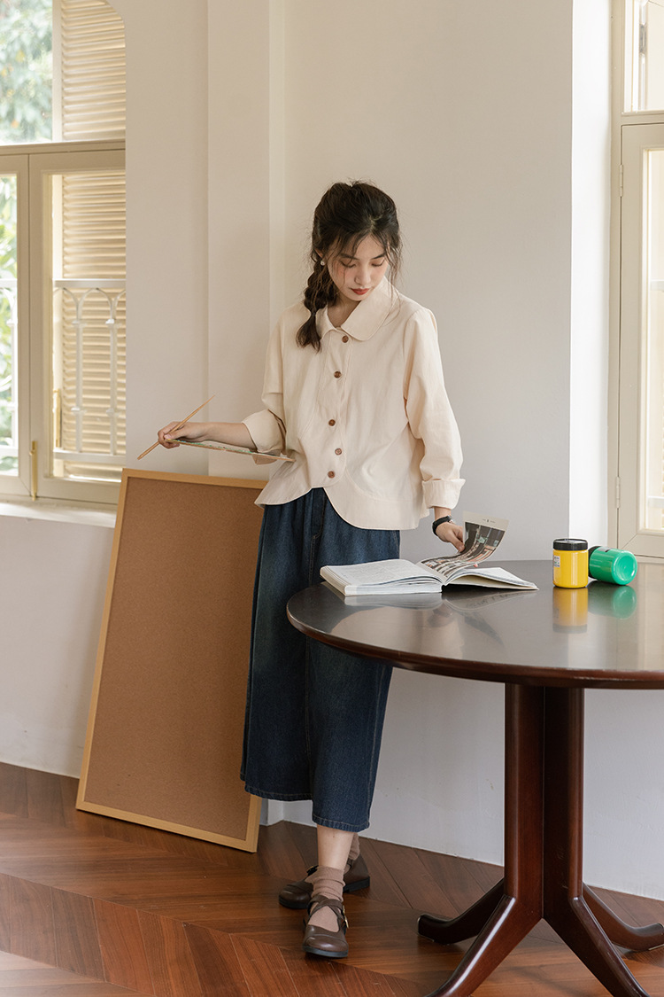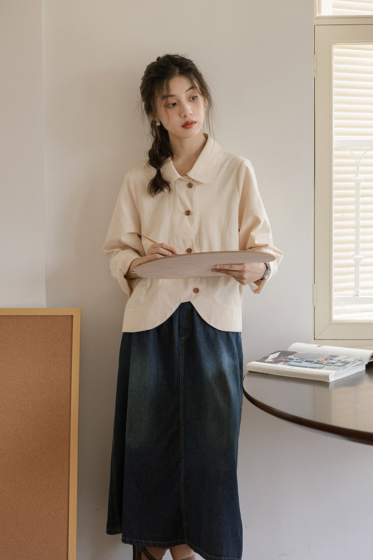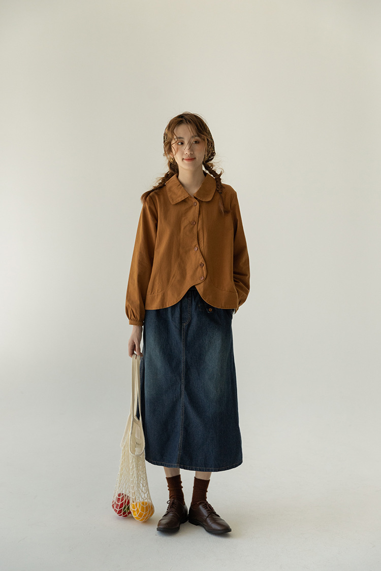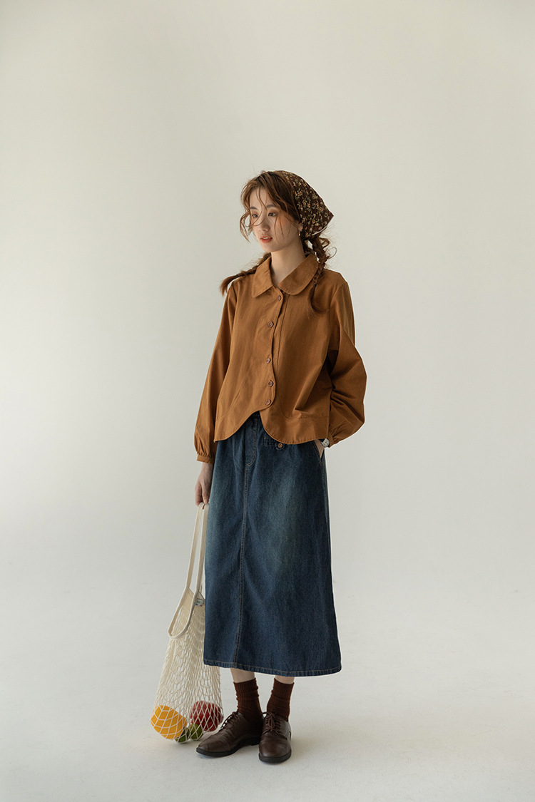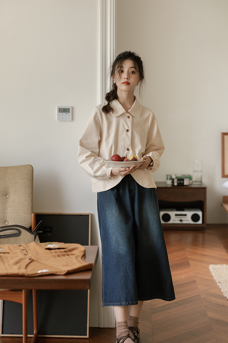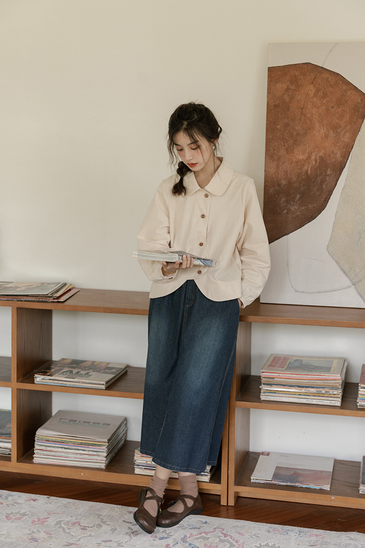 2024 년 가을과 겨울 새로운 일본 스타일 매우 간단한 스타일 불규칙한 디자인 감각 느슨한 슬리밍 짧은 긴 소매 셔츠스토어 가기