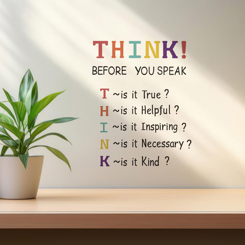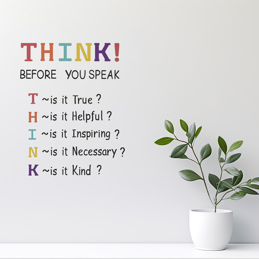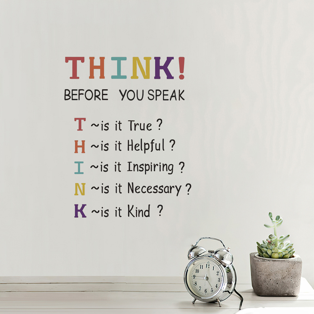 1 조각 수화 벽 스티커, 말하기 전에 생각, 사무실에 적합한 이동식 방수 비닐 스티커스토어 가기