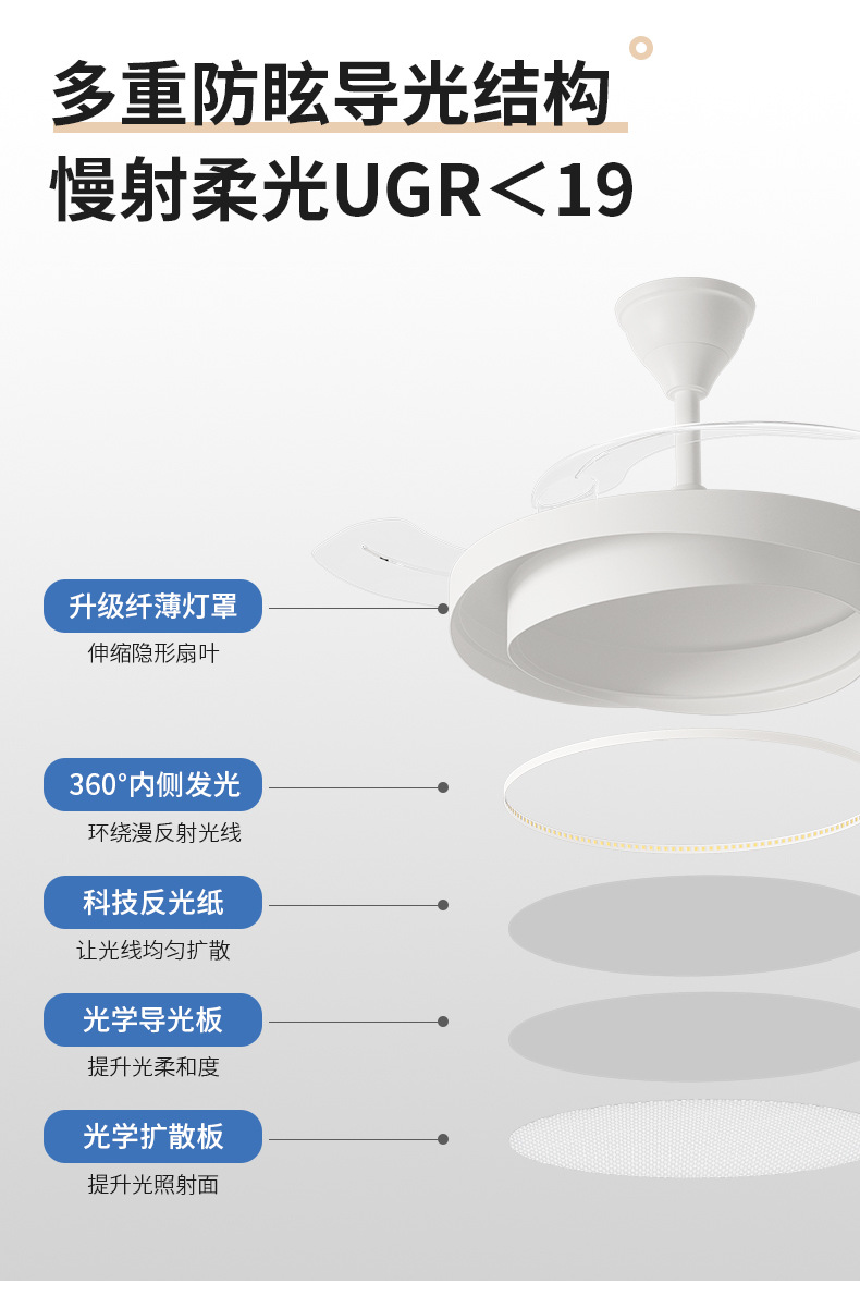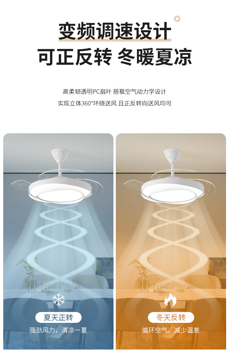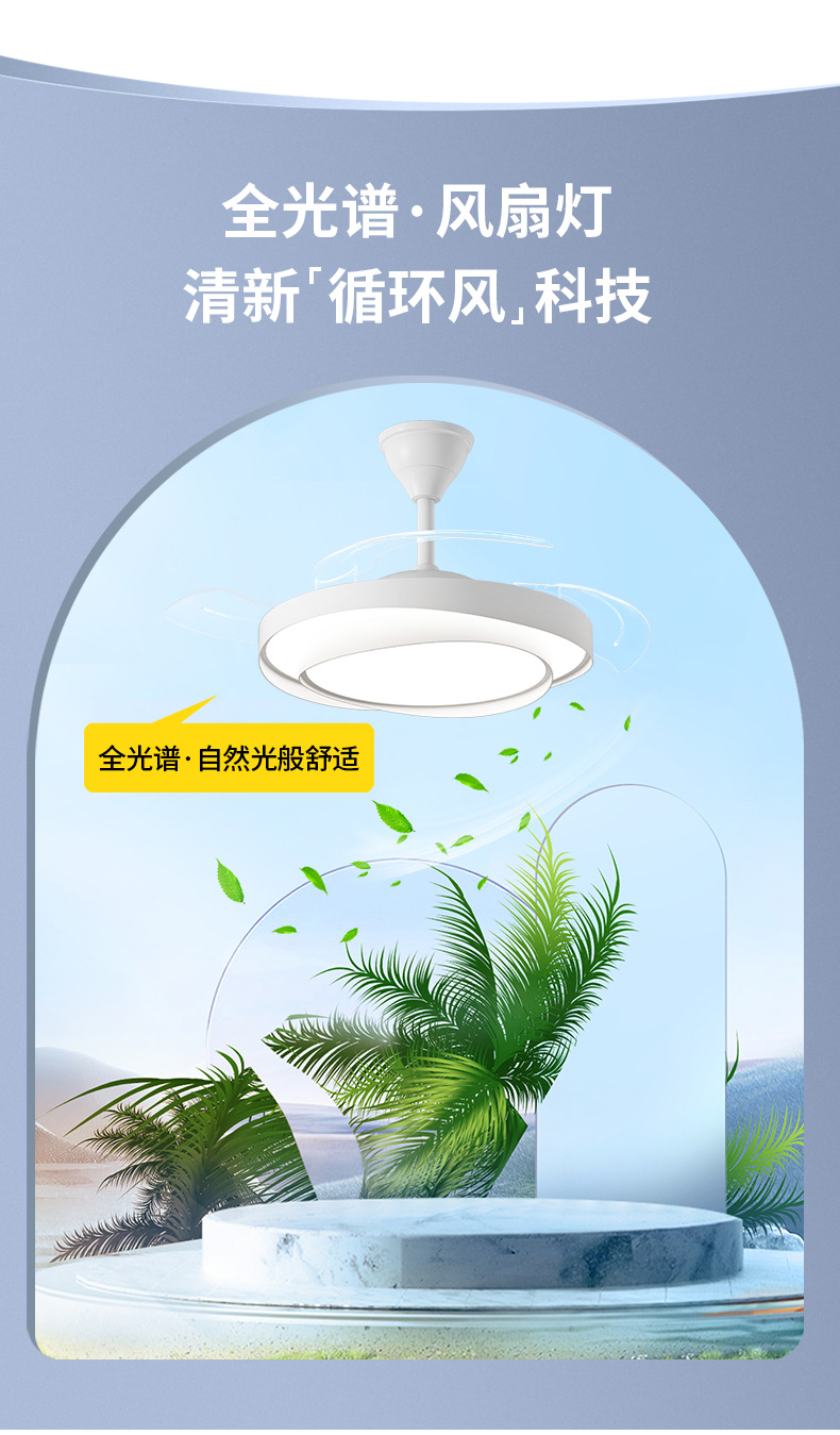 식당 팬 램프 침실 크림 스타일 보이지 않는 조용한 천장 팬 램프 전체 스펙트럼 눈 보호 거실 램프 천장 팬