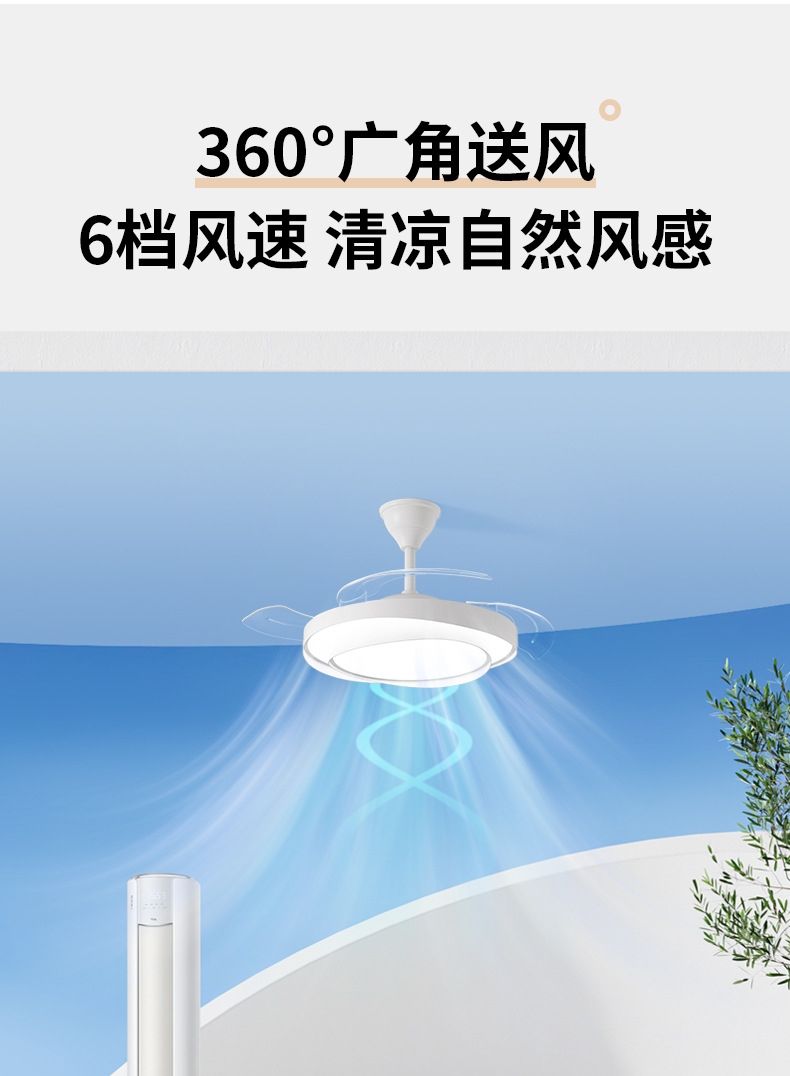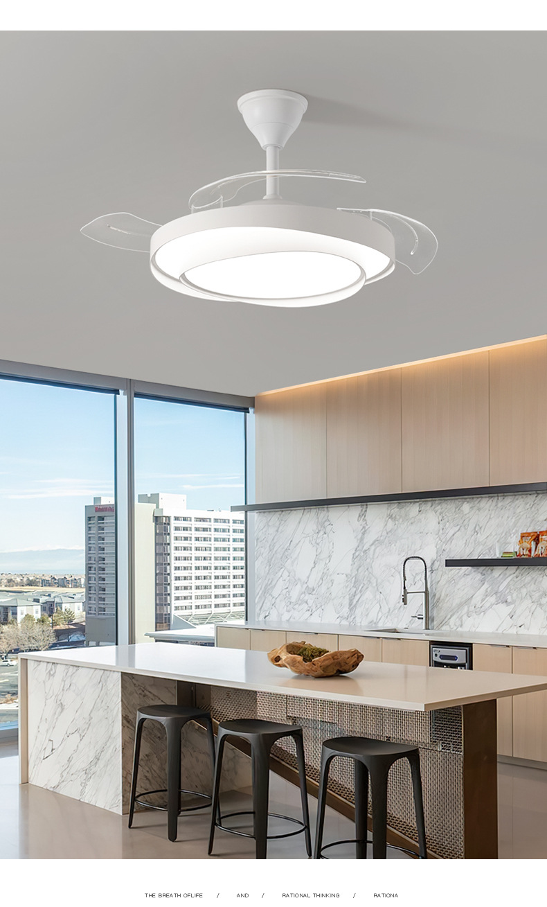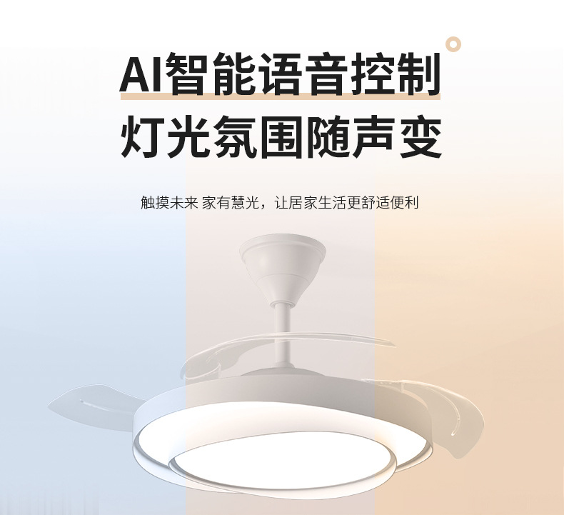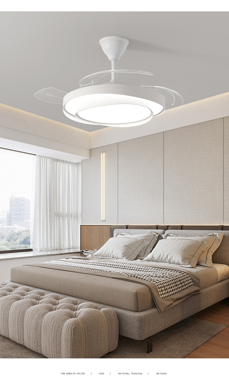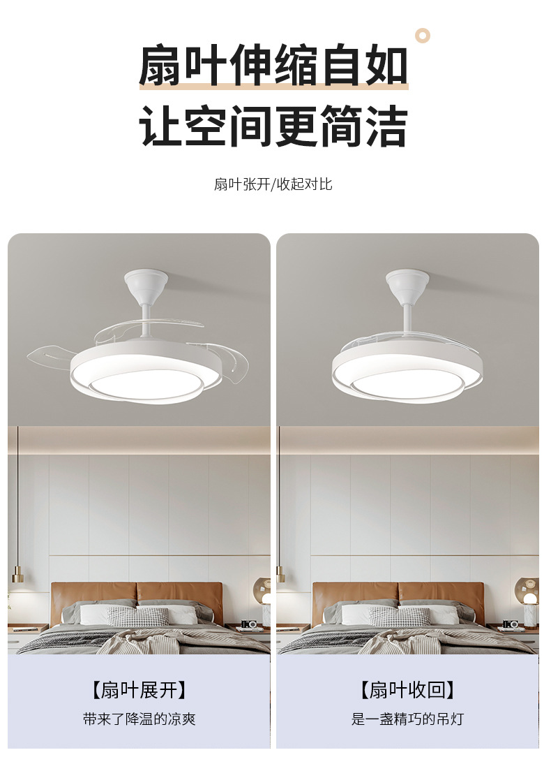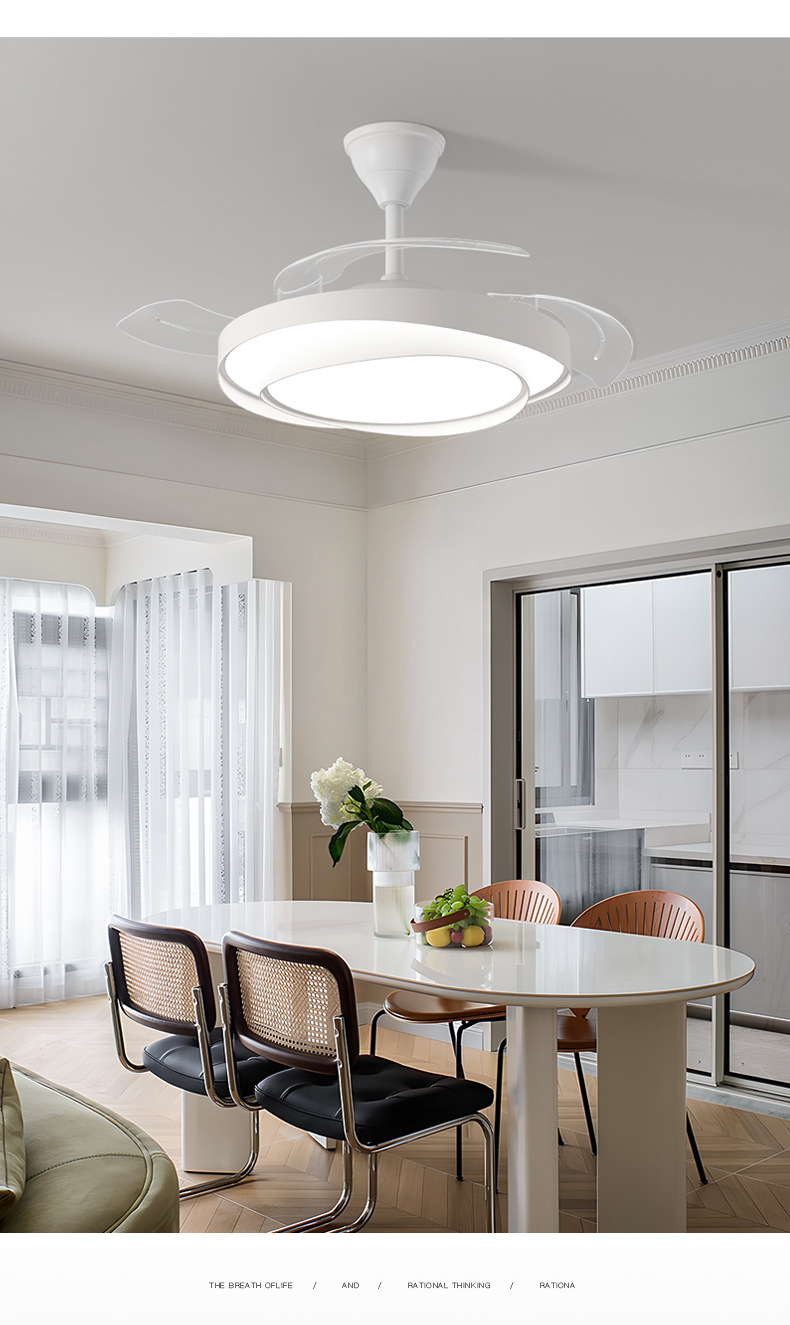 식당 팬 램프 침실 크림 스타일 보이지 않는 조용한 천장 팬 램프 전체 스펙트럼 눈 보호 거실 램프 천장 팬스토어 가기