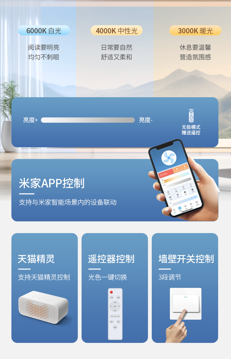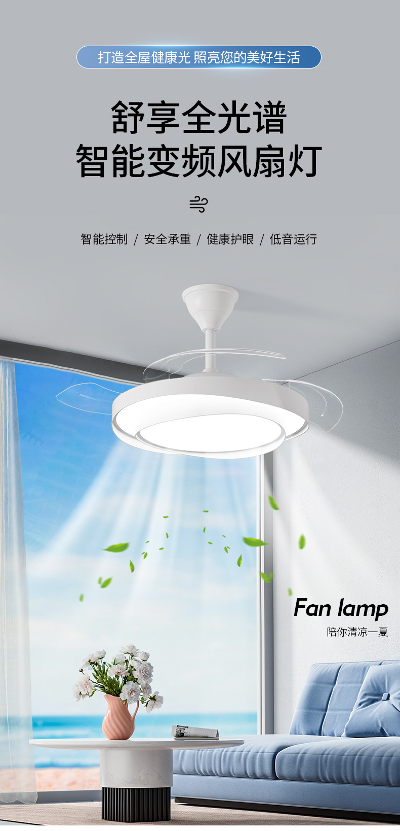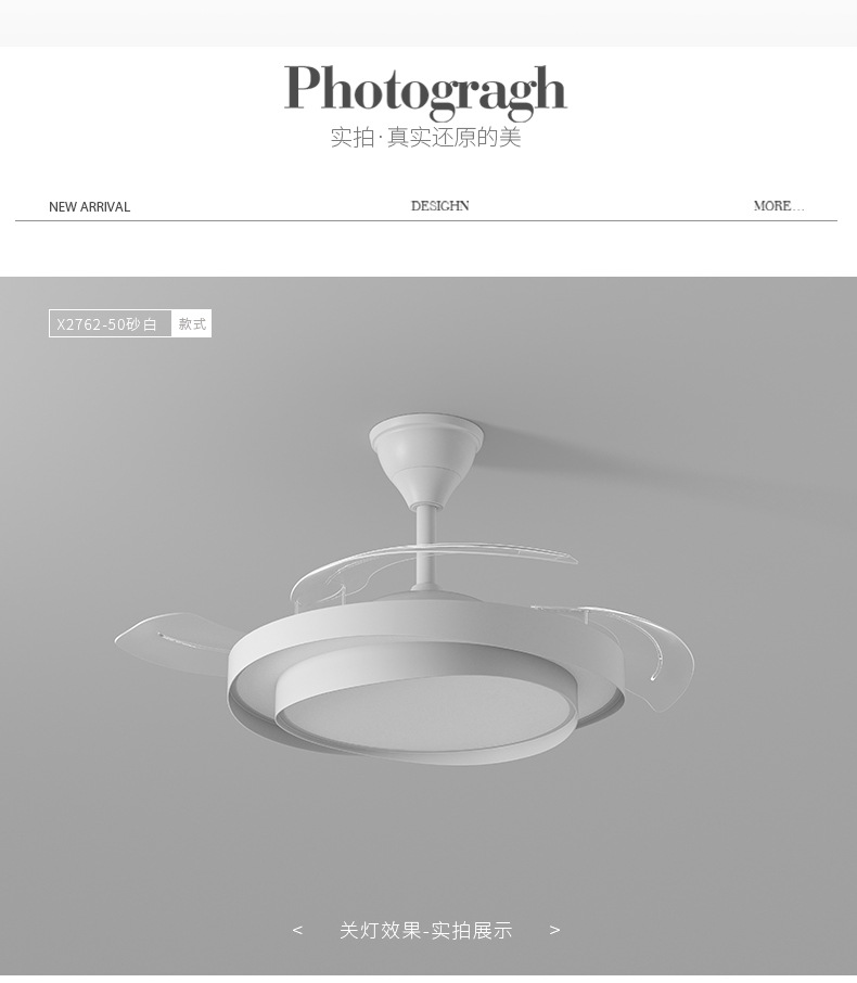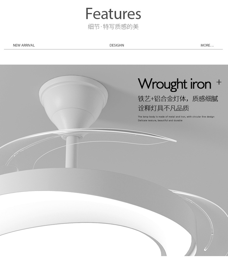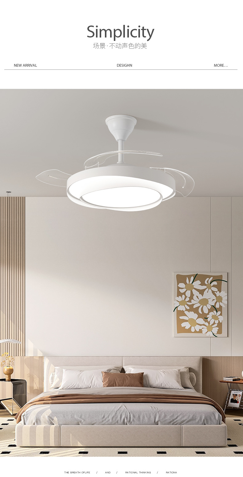 식당 팬 램프 침실 크림 스타일 보이지 않는 조용한 천장 팬 램프 전체 스펙트럼 눈 보호 거실 램프 천장 팬스토어 가기
