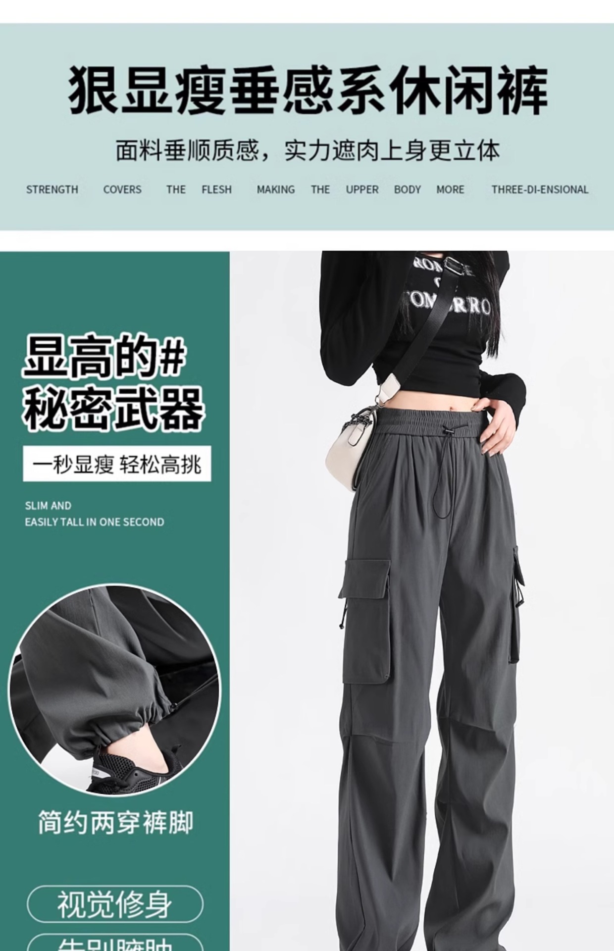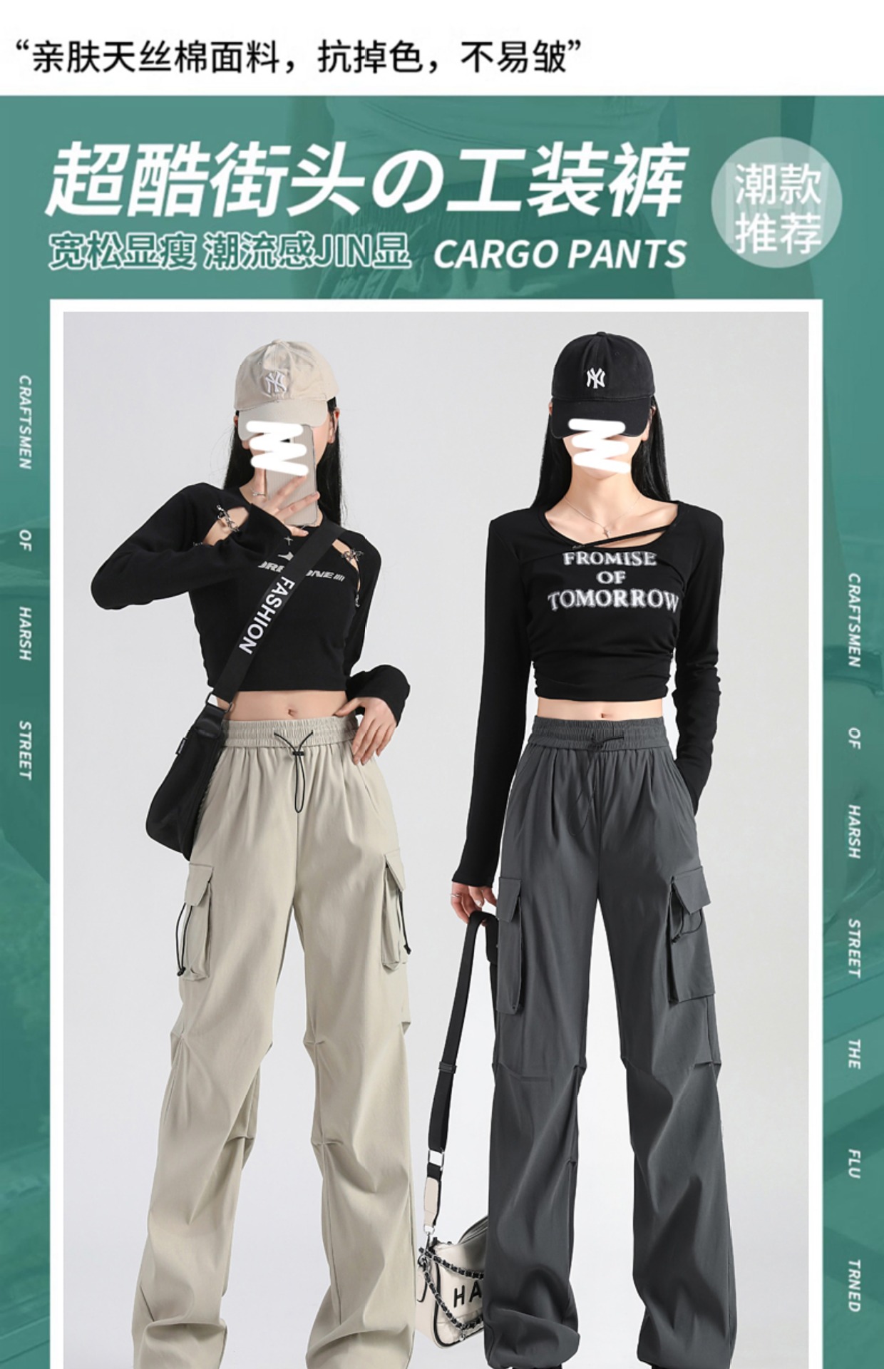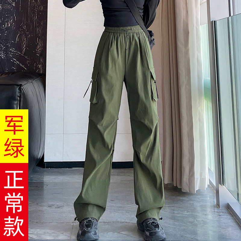 여성용 미국 작업복 2025 새로운 여름 작은 다리 좁은 버전 넓은 다리 스포츠 등산 캐주얼 스트레이트 바지스토어 가기