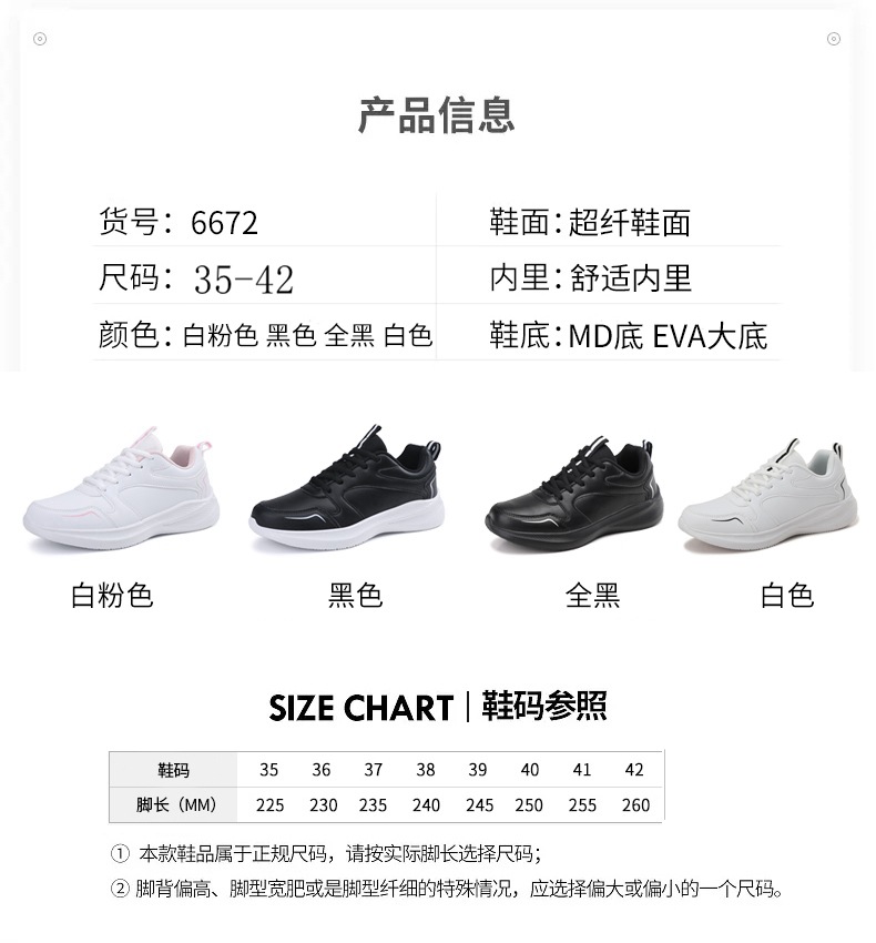 천주 새로운 숙녀 패션 스포츠 캐주얼 신발 야외 경량 미끄럼 방지 소프트 바텀 학생 러닝 슈즈 화이트 슈즈 여성