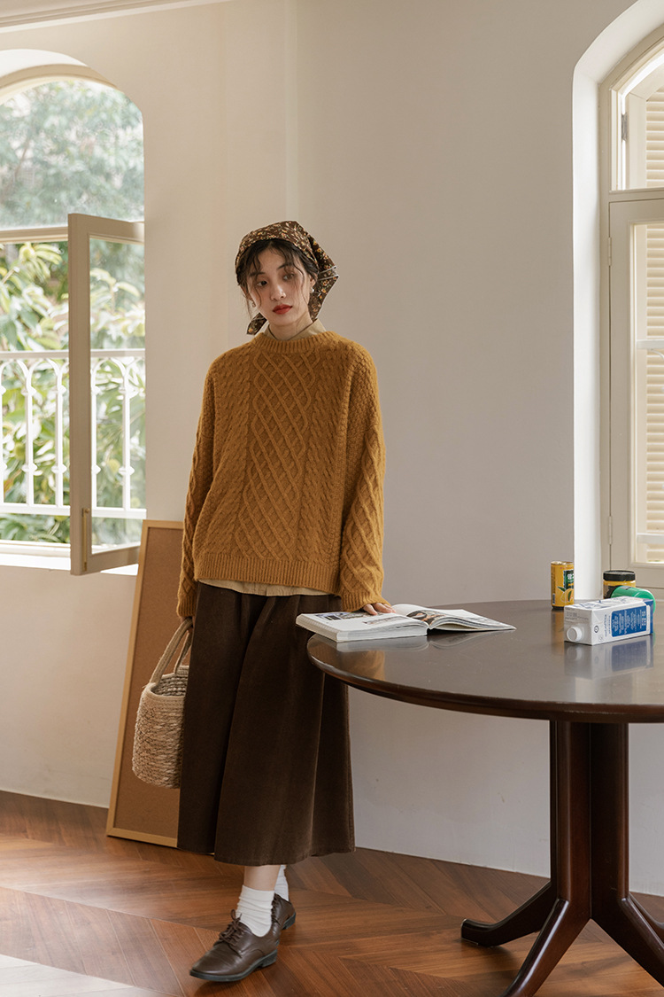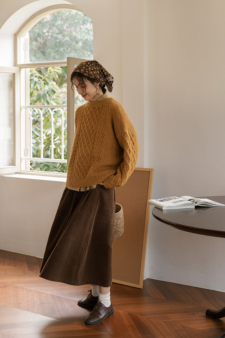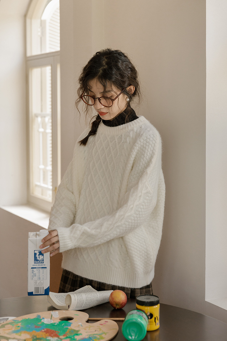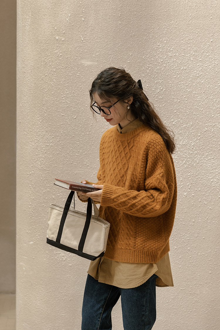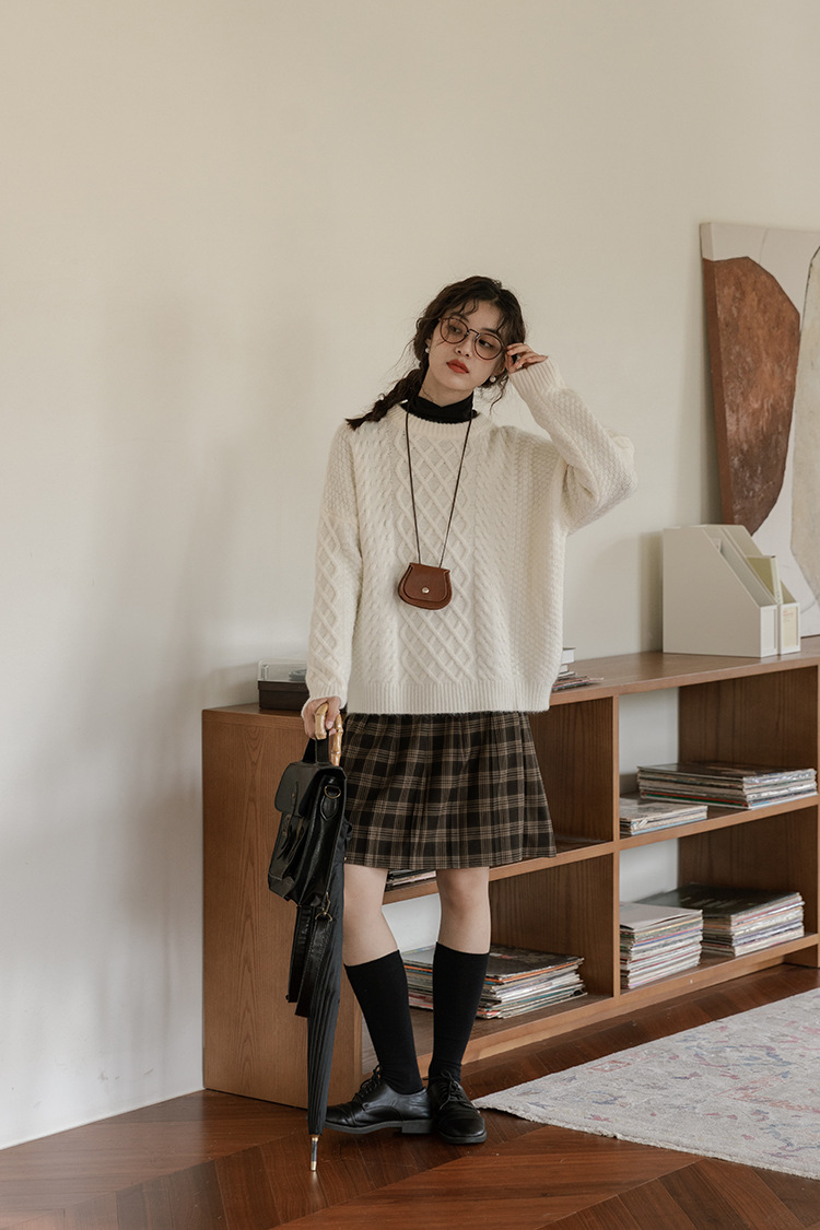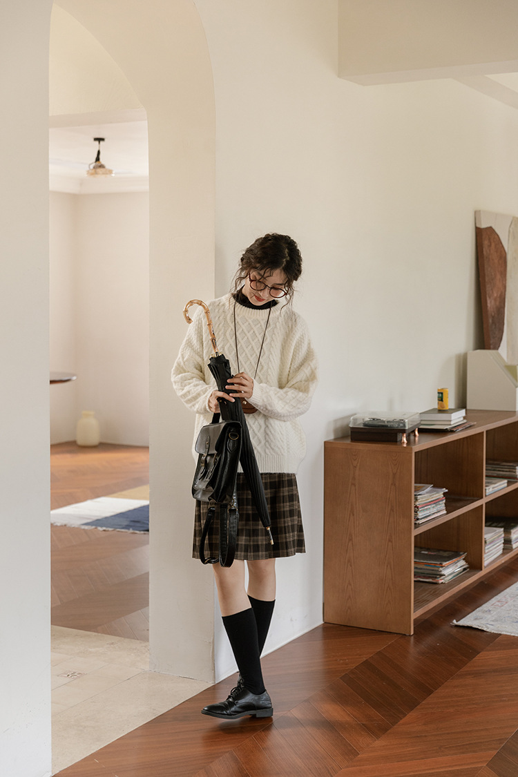 2024 가을과 겨울 새로운 한국 스타일 복고풍 둥근 목 꼬인 다이아몬드 격자 디자인 두꺼운 따뜻한 풀오버 라운드 넥 스웨터 여성용스토어 가기