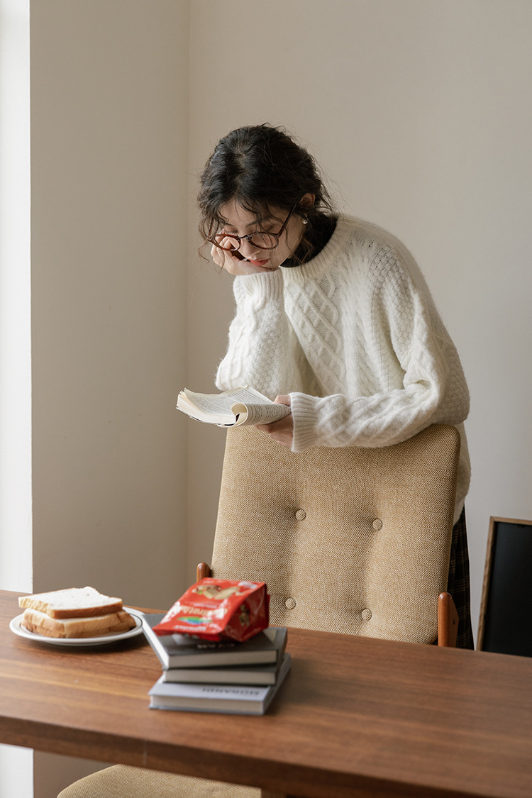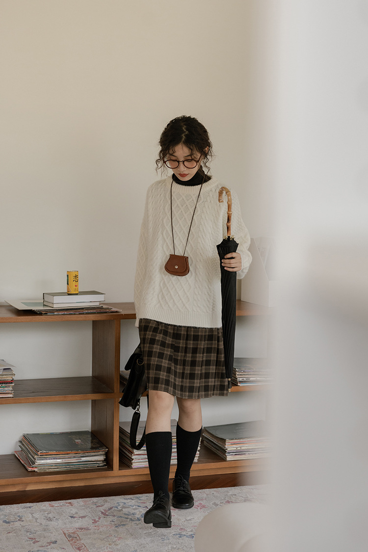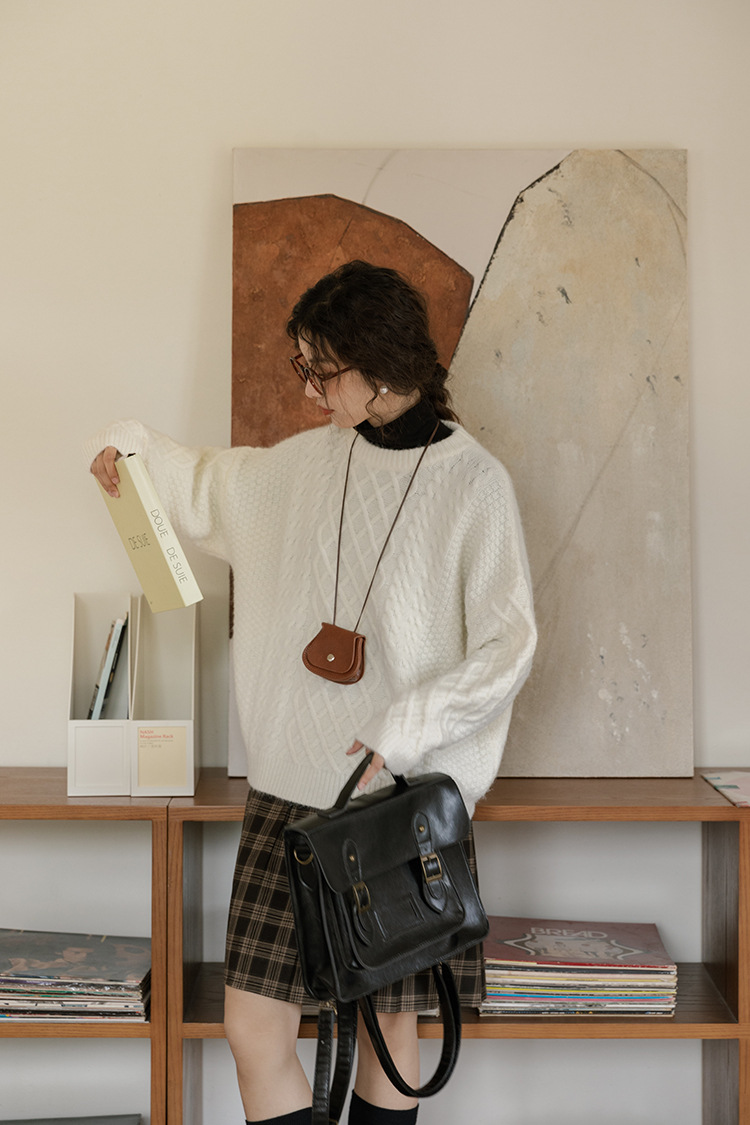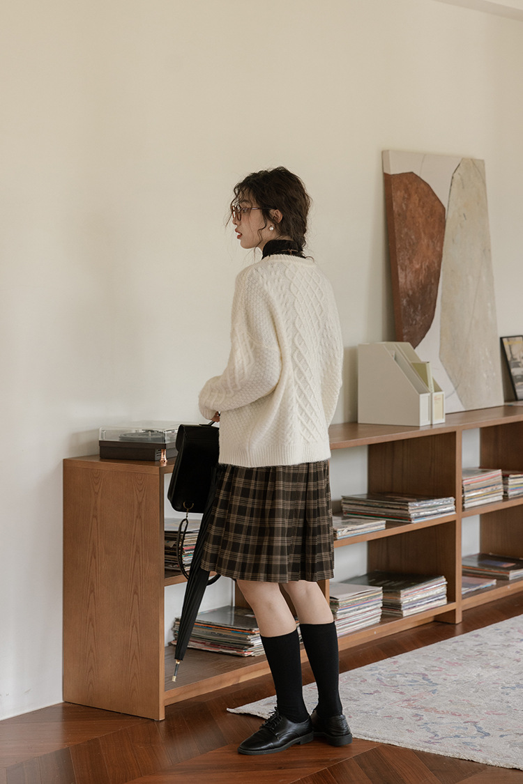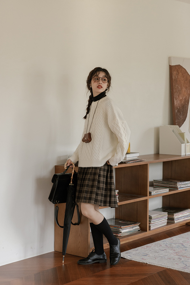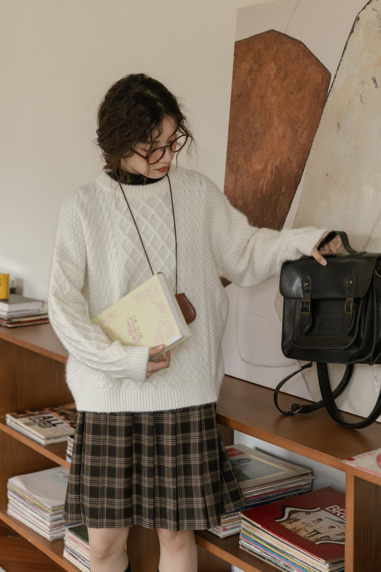 2024 가을과 겨울 새로운 한국 스타일 복고풍 둥근 목 꼬인 다이아몬드 격자 디자인 두꺼운 따뜻한 풀오버 라운드 넥 스웨터 여성용스토어 가기