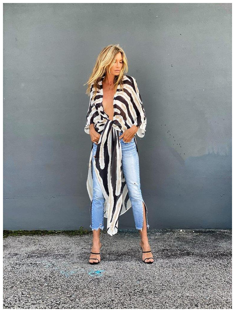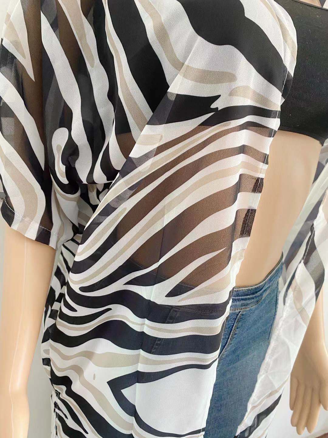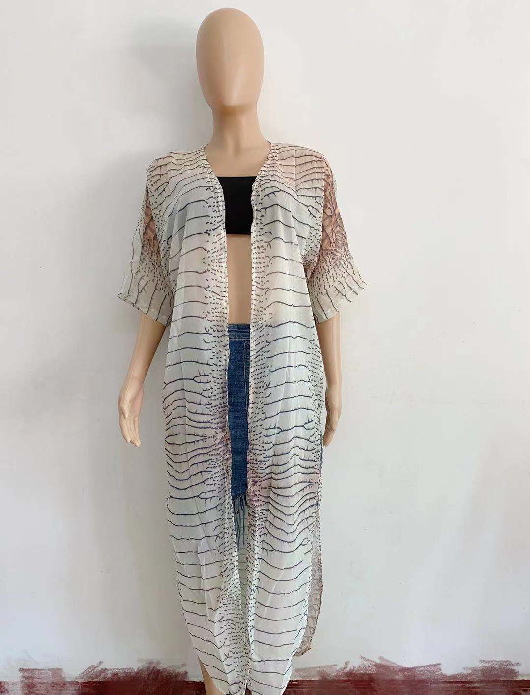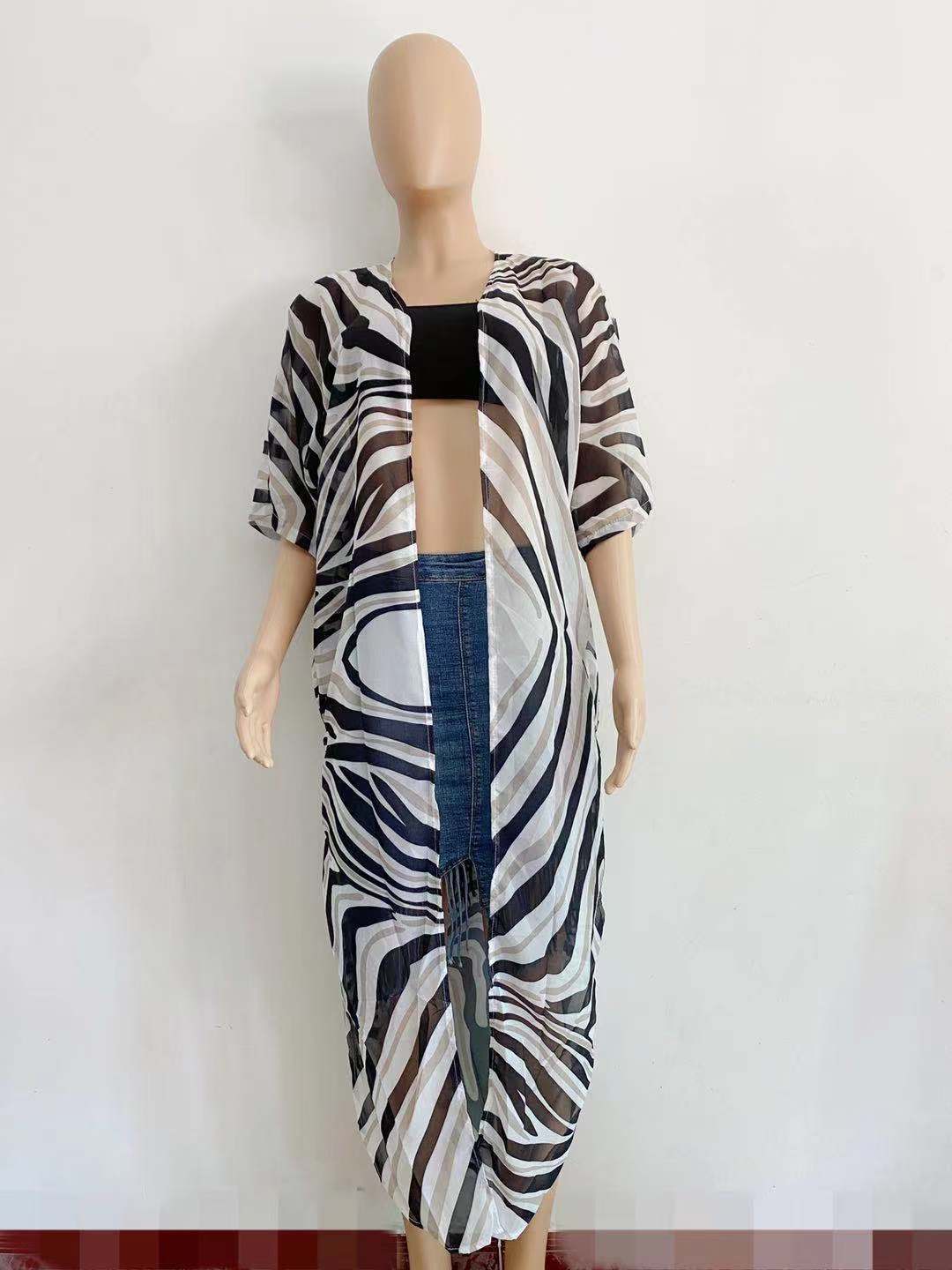 2024 새로운 국경 대외 무역 아마존 여름 인쇄 플러스 사이즈 선 스크린 비치 느슨한 휴가 시폰 카디건 여성