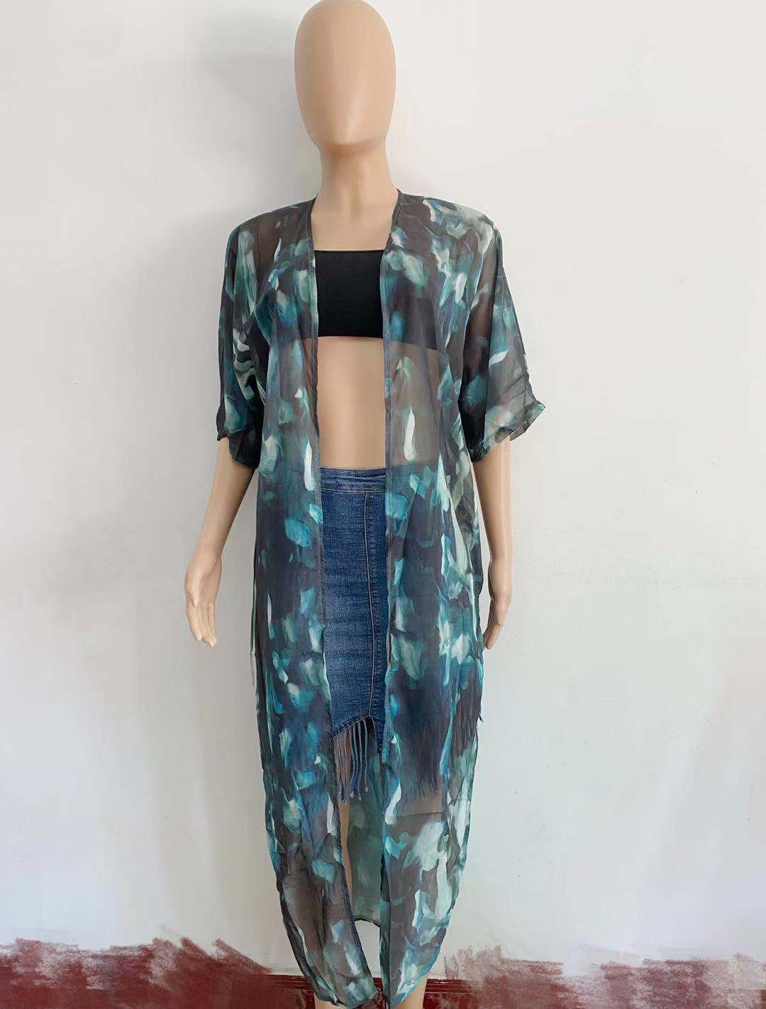 2024 새로운 국경 대외 무역 아마존 여름 인쇄 플러스 사이즈 선 스크린 비치 느슨한 휴가 시폰 카디건 여성스토어 가기