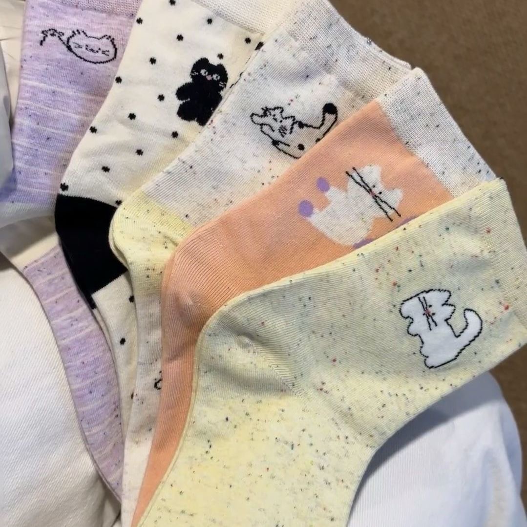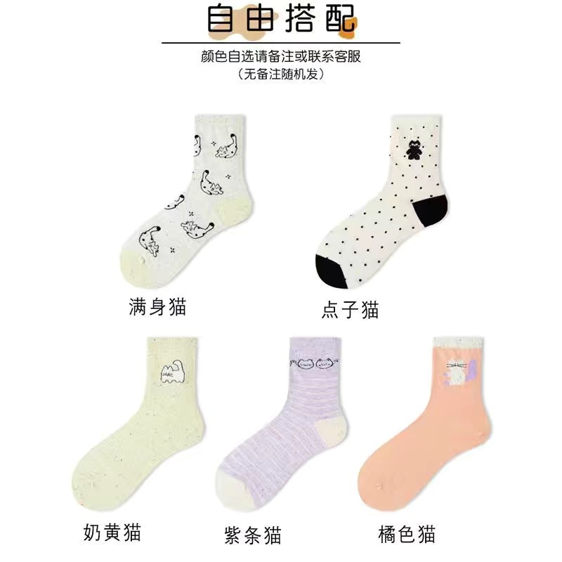 여성을위한 양말 봄과 여름 새로운 귀여운 고양이 포인트 원사 양말 Ins 캐주얼 미드 양말 어린이 스택 양말스토어 가기