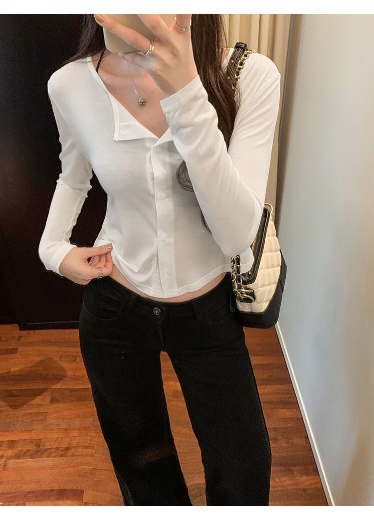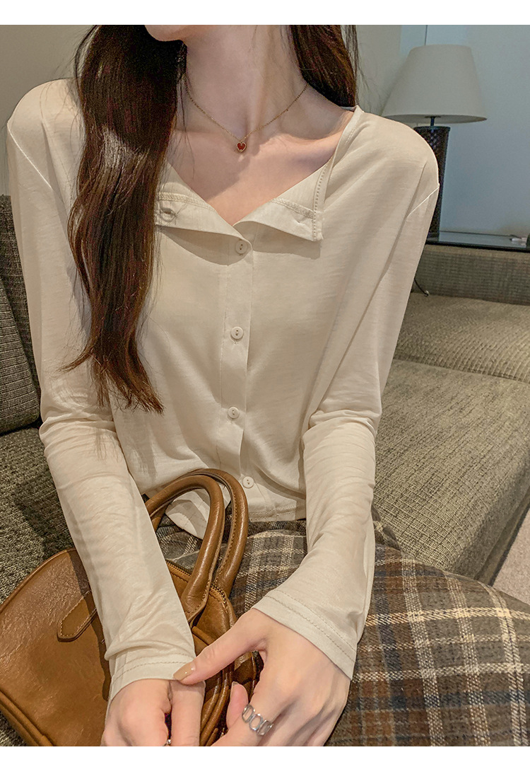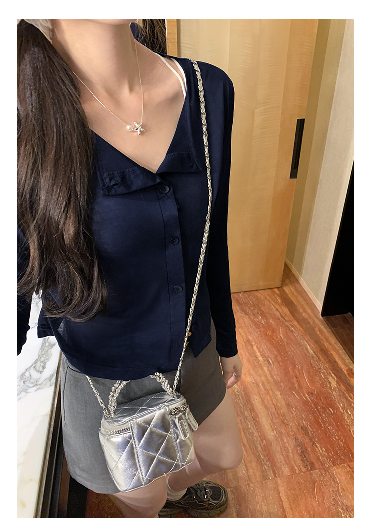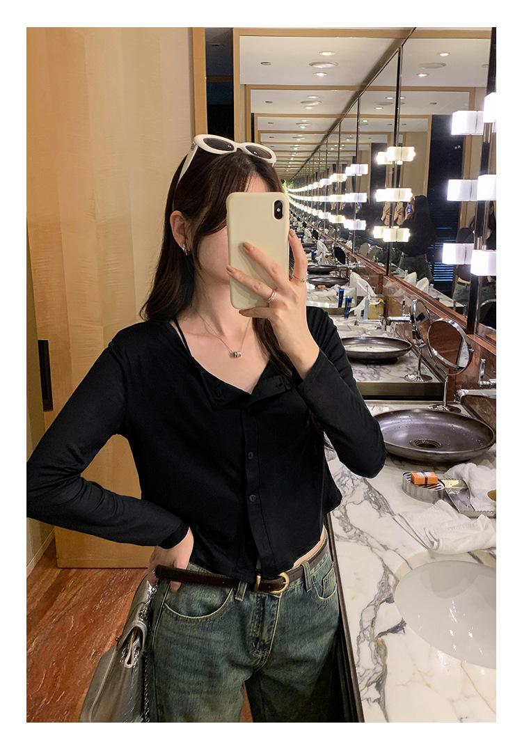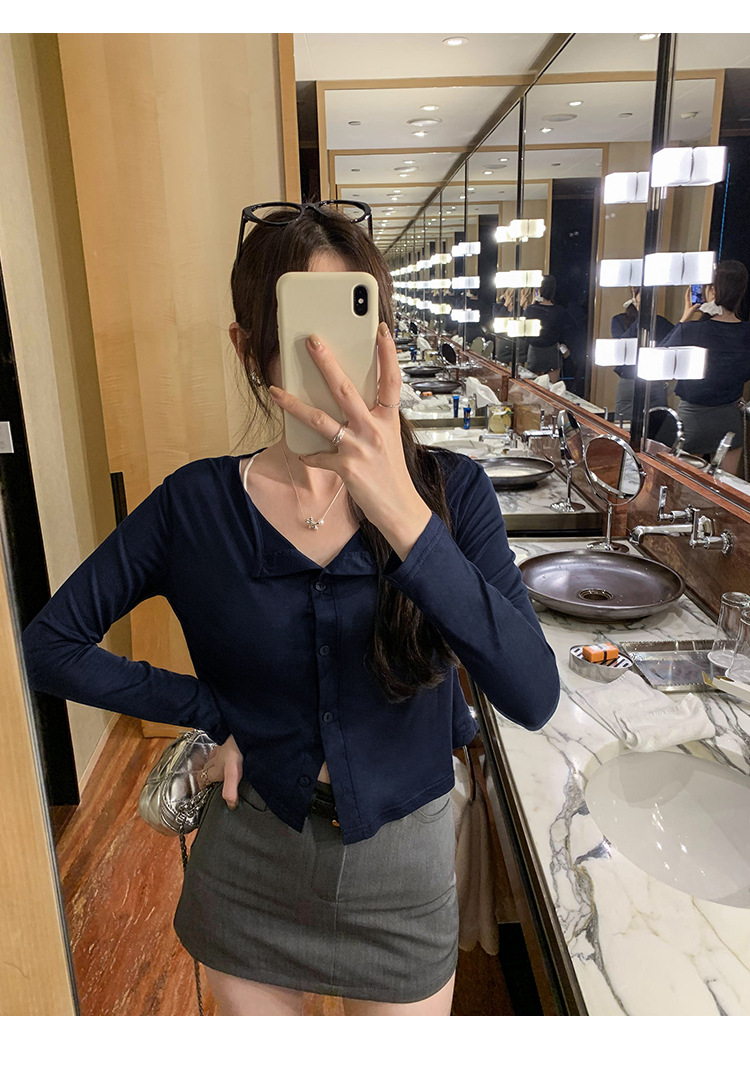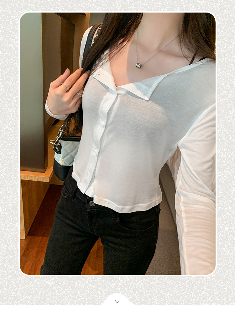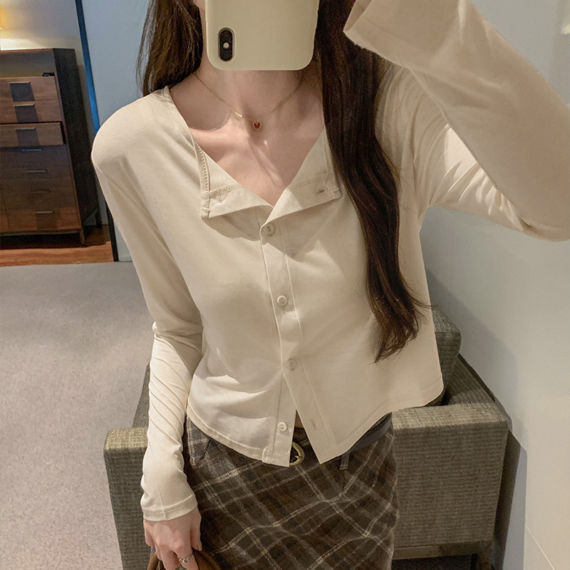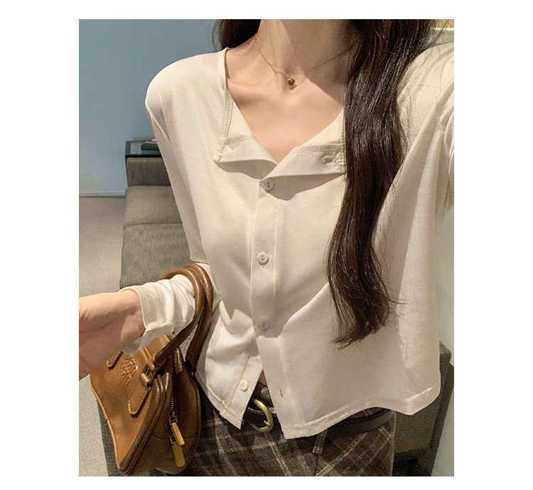 짧은 얇은 마이크로 투명 태양 보호 외부 카디건 디자인 티셔츠 여성의 2024 년 초가을 한국 여성의 작은 셔츠 탑