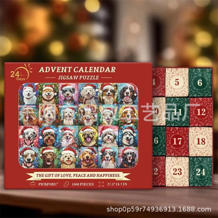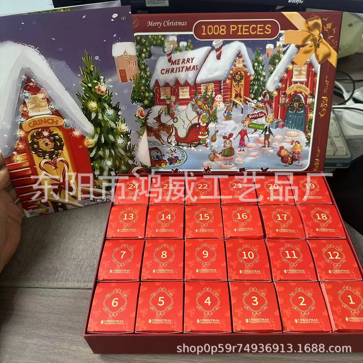 국경 새 24 상자 크리스마스 강림절 달력 퍼즐 1000pcs 크리스마스 카운트 다운 퍼즐 블라인드 박스 장난감스토어 가기