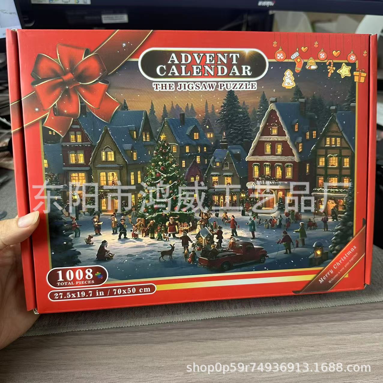 국경 새 24 상자 크리스마스 강림절 달력 퍼즐 1000pcs 크리스마스 카운트 다운 퍼즐 블라인드 박스 장난감