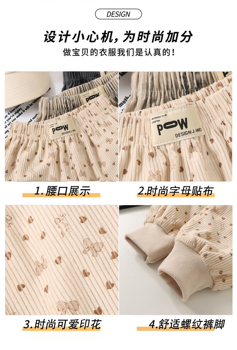 새로운 스타일의 아기 외투 바지, 어린이용 새 캐주얼 바지, 남학생과 여학생을 위한 코듀로이 바지, 루즈한 코듀로이 바지