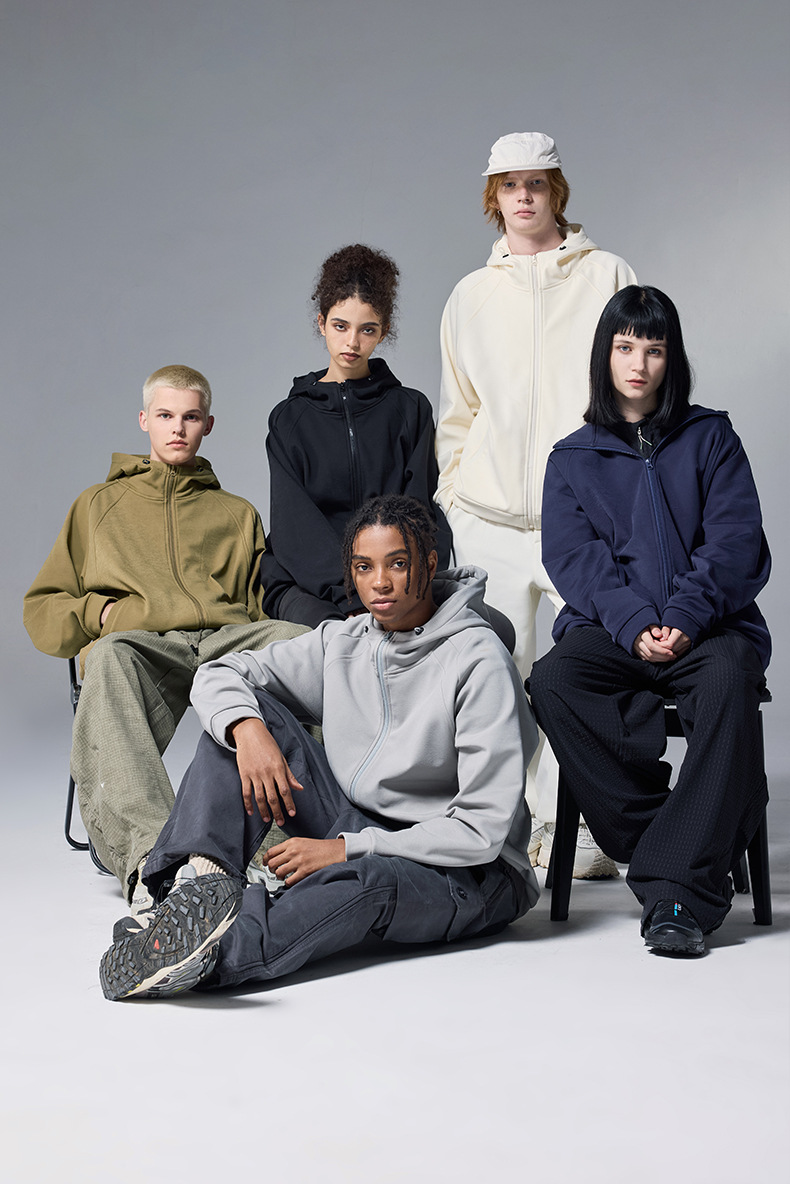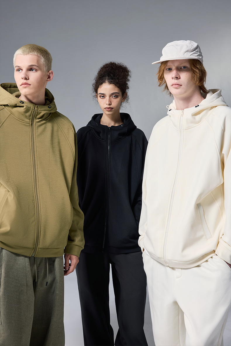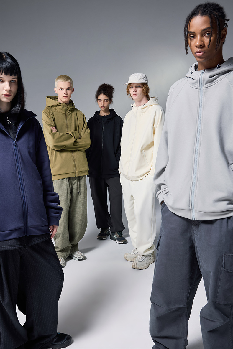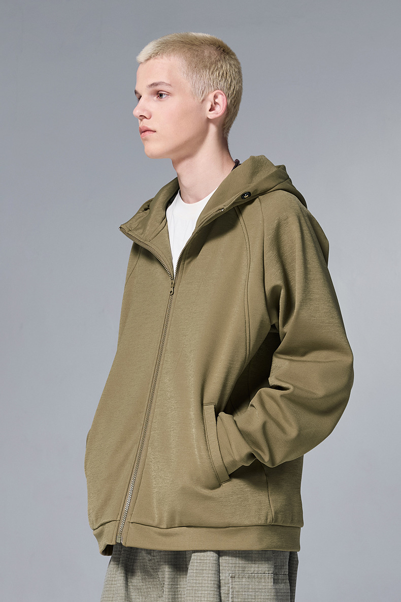 JIEZHAN 남성 의류 | 수소 4방향 스트레치 후드 재킷 2025 봄 트렌디 브랜드 솔리드 컬러 지퍼 방풍 플리스 스웨트셔츠